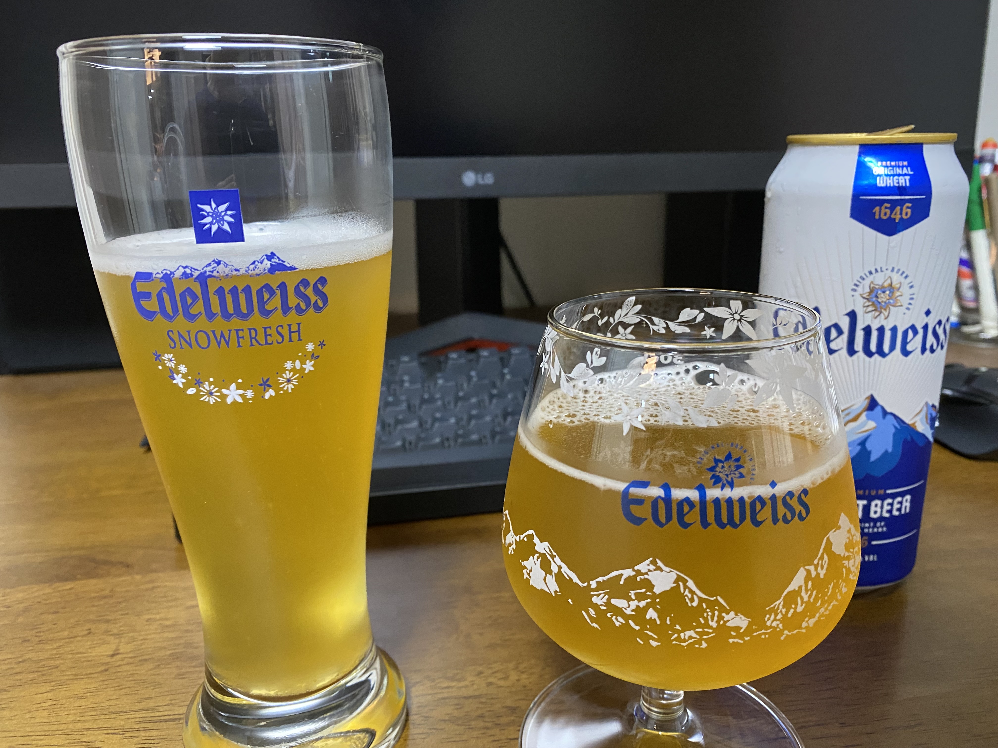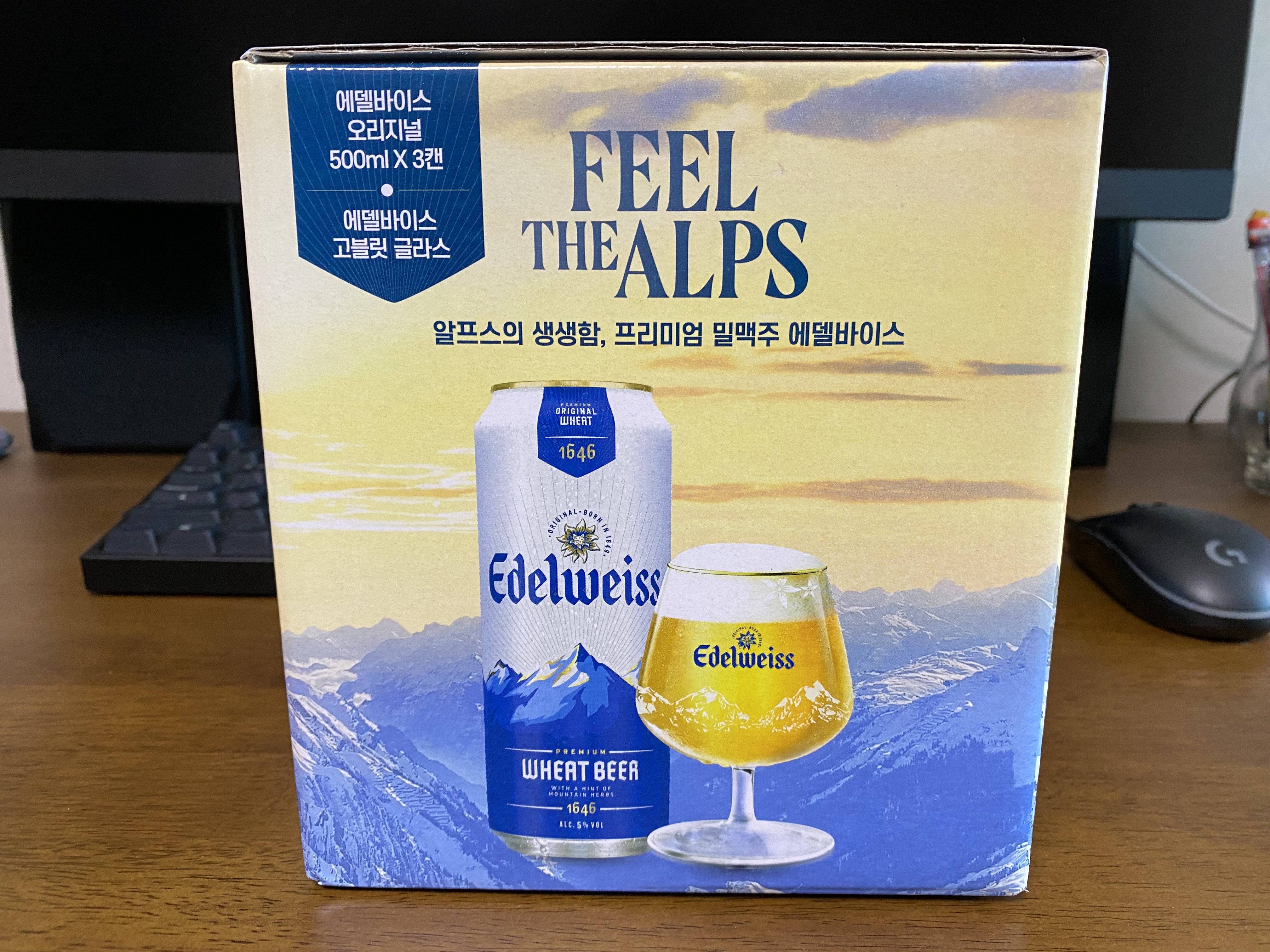 에델바이스 밀맥주. 호가든, 블랑처럼 향긋한 밀맥주를 좋아하는 분에게 추천하고 싶은 맥주입니다. 비슷하지만 다른 맛이 있습니다. 맥주를 쓴맛으로 마시는 IPA, 라거 마니아에게는 비추입니다. ㅋ