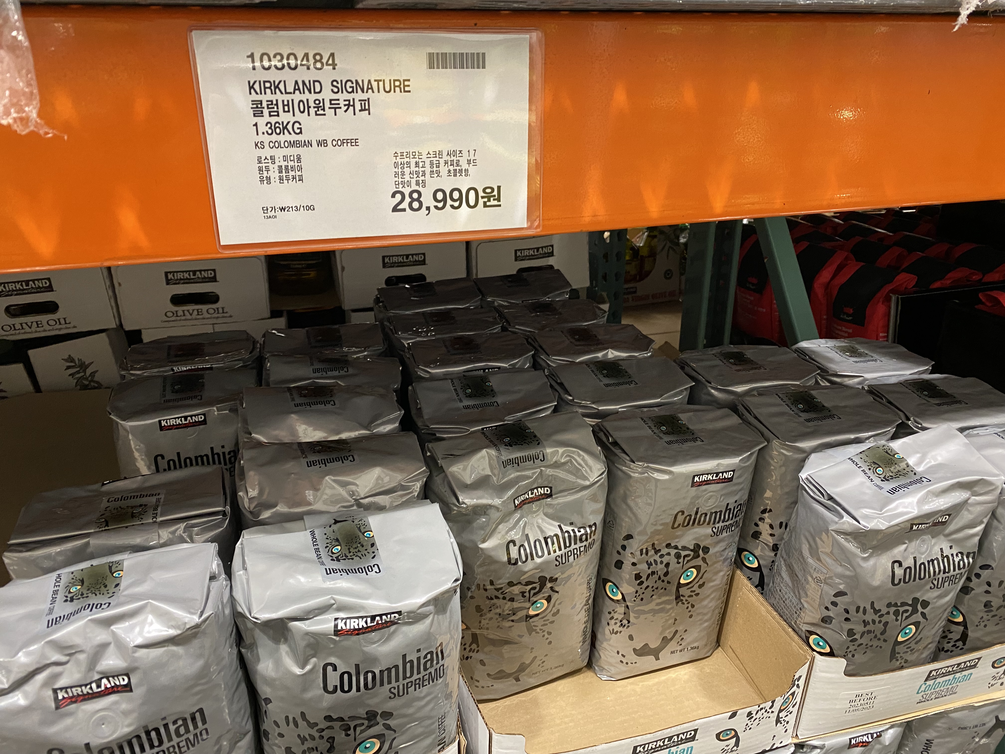 커클랜드 콜롬비아 원두커피. 가성비로 예전에 자주 마시던 커피인데 양이 너무 많아서 요즘은 잘 안 삽니다.
