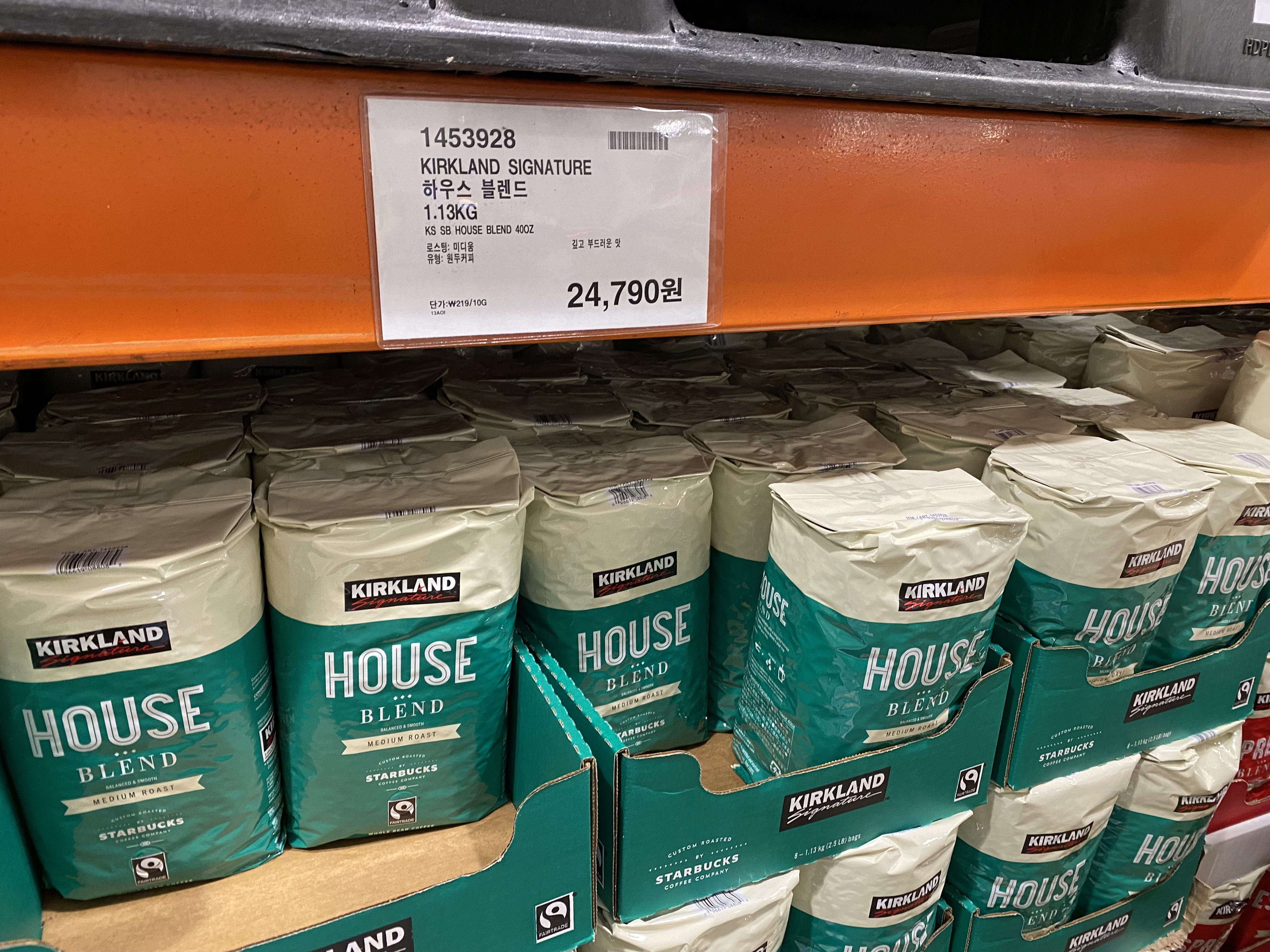 스타벅스 원두 할인 가격이 커클랜드 하우스 블랜드보다 저렴한 것을 볼 수 있습니다.