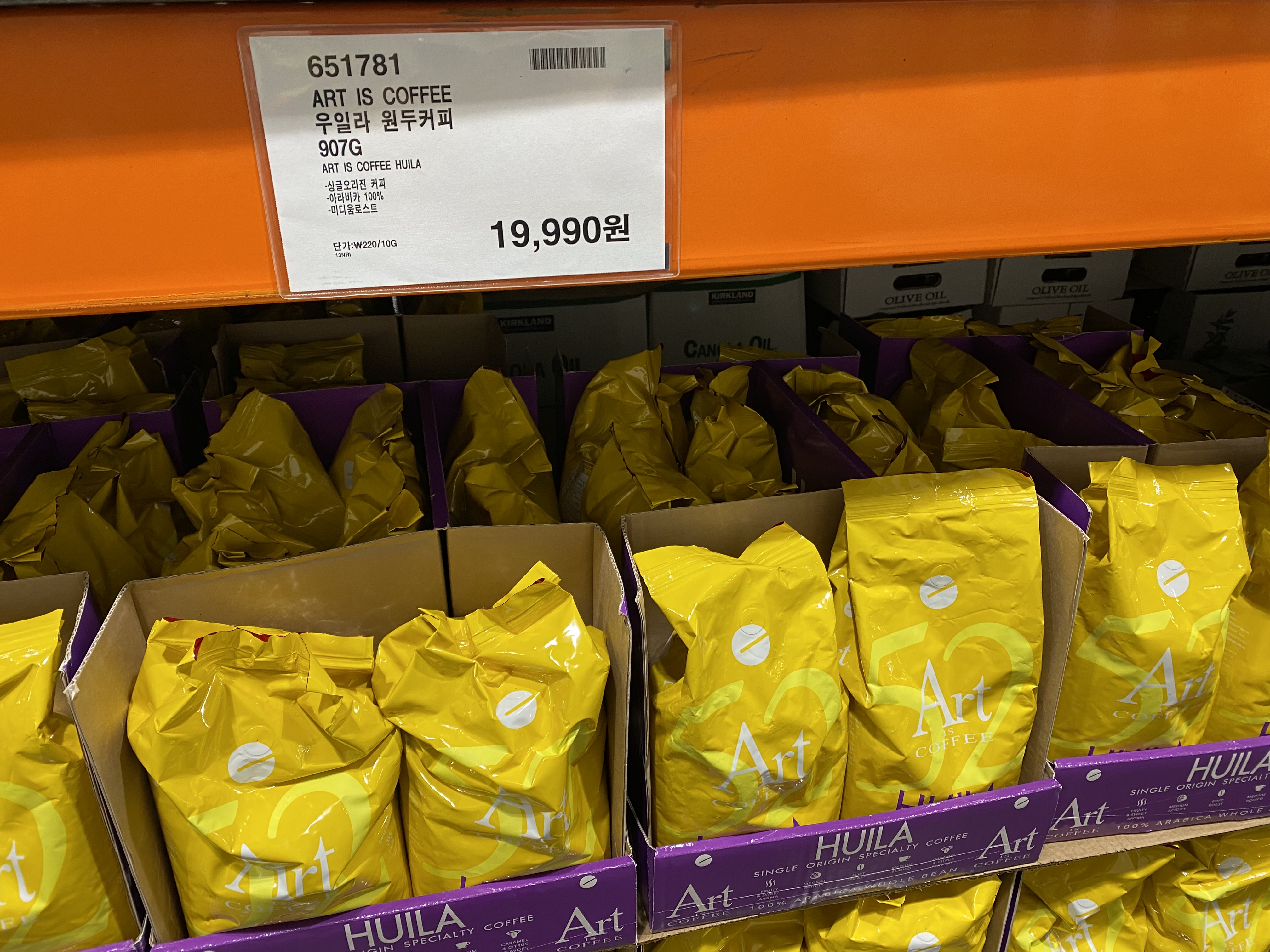 코스트코에서 새로 나온 커피 원두가 있어 한번 사봤습니다. 'ART IS COFFEE 우일라 원두커피'인데 봉지는 좀 없어 보이지만 호기심에 한번 사봤습니다. 가격은 19,990원으로 적당한 편입니다.