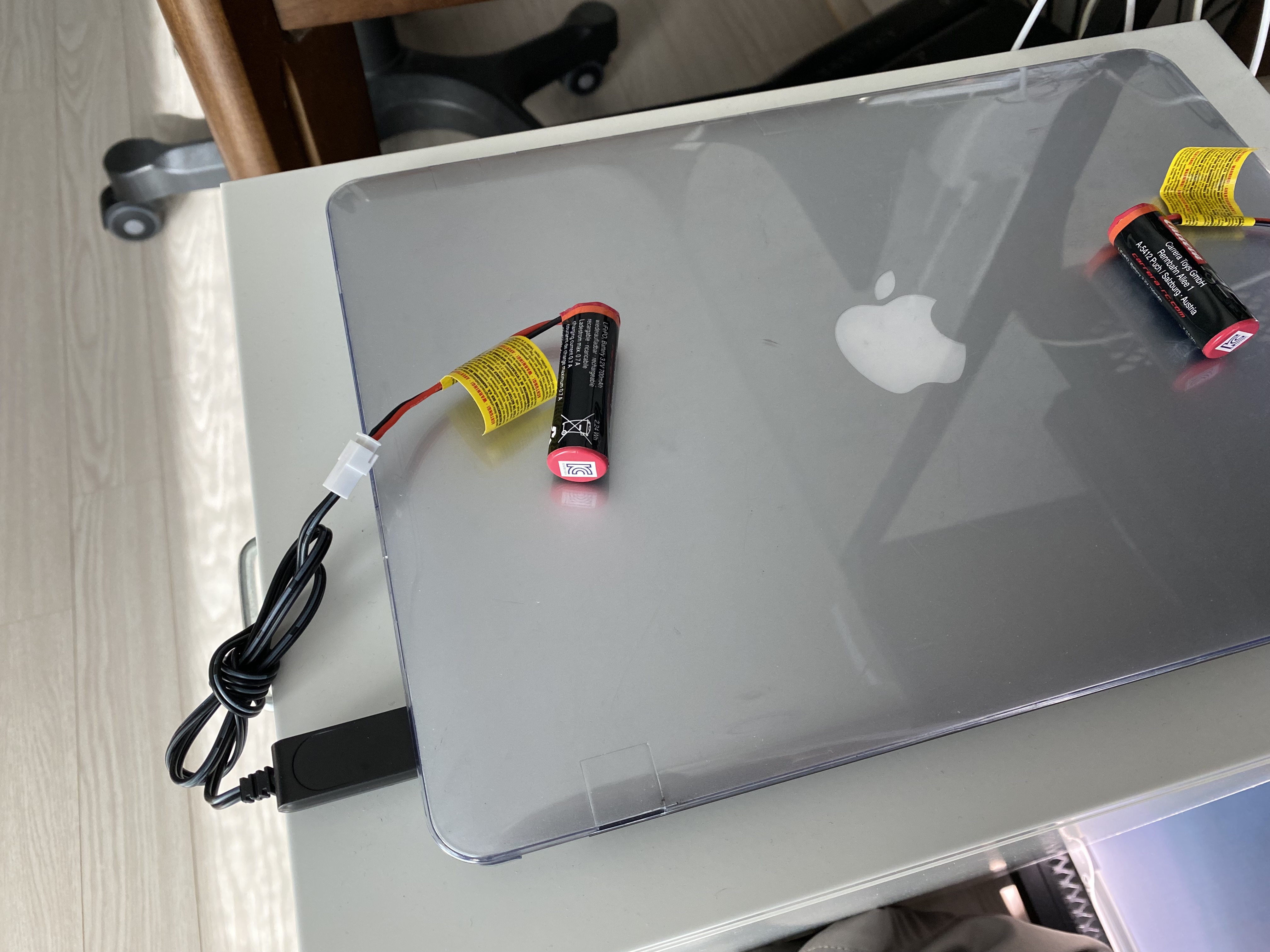 맥북 USB 단자로 배터리를 충전하는 중...