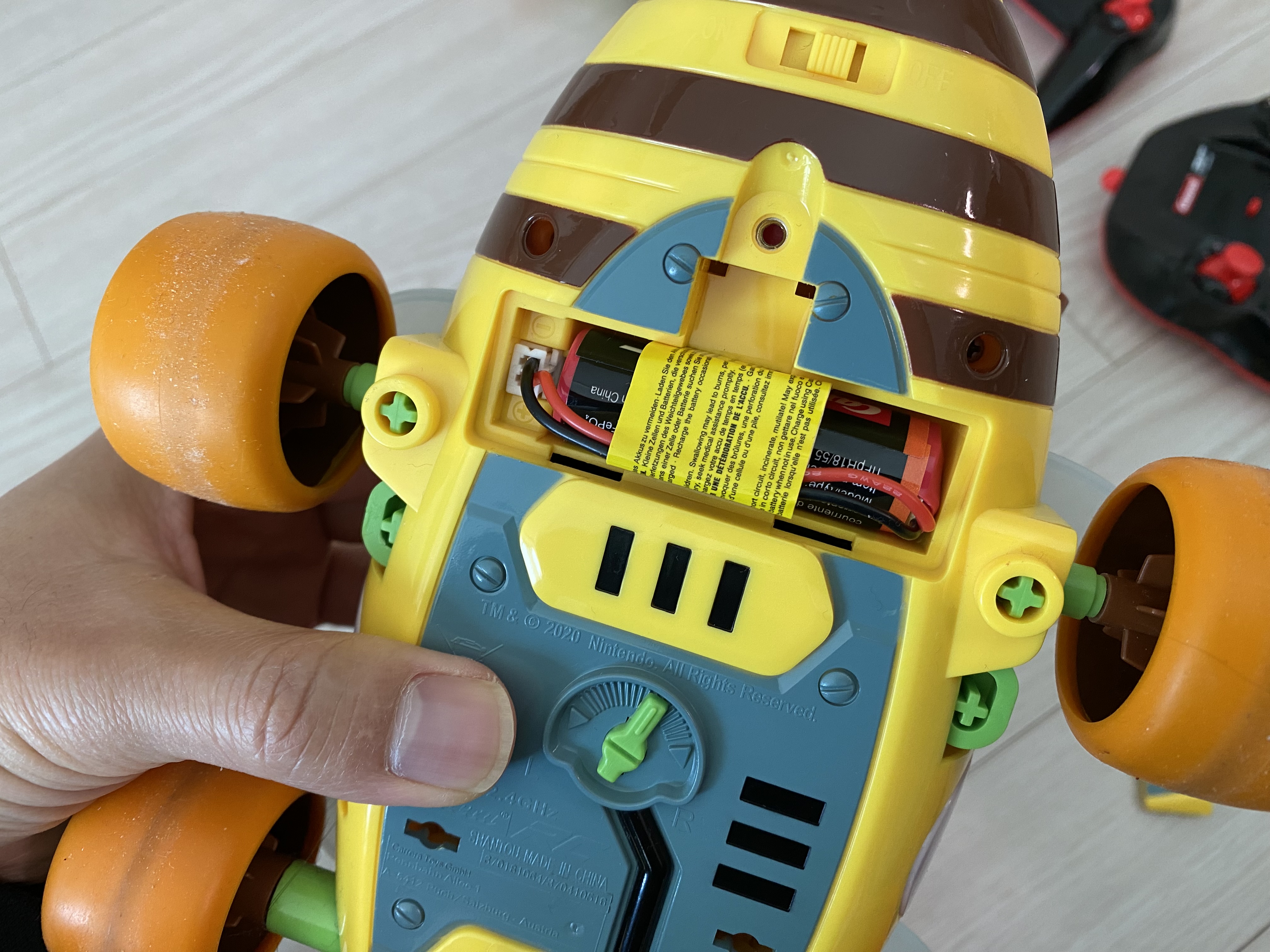 마리오 카트 RC카와 무선 조종기에 배터리를 장착한 모습입니다. RC카를 살 때마다 느끼는 거지만 정말 매번 충전하려고 볼트를 풀고 전선 케이블을 분리하는 작업이 너무 번거롭네요. 이 마리오카트도 마찬가지입니다. 보통 집에만 갖고 놀려고 볼트는 그냥 풀어놓고 배터리 뚜껑만 닫습니다. 그래도 뚜껑이 잘 떨어지지 않아서 다행입니다. 제발 간편하게 외부에서 바로 충전할 수 있는 RC카가 나왔으면 좋겠습니다. ㅠㅠ