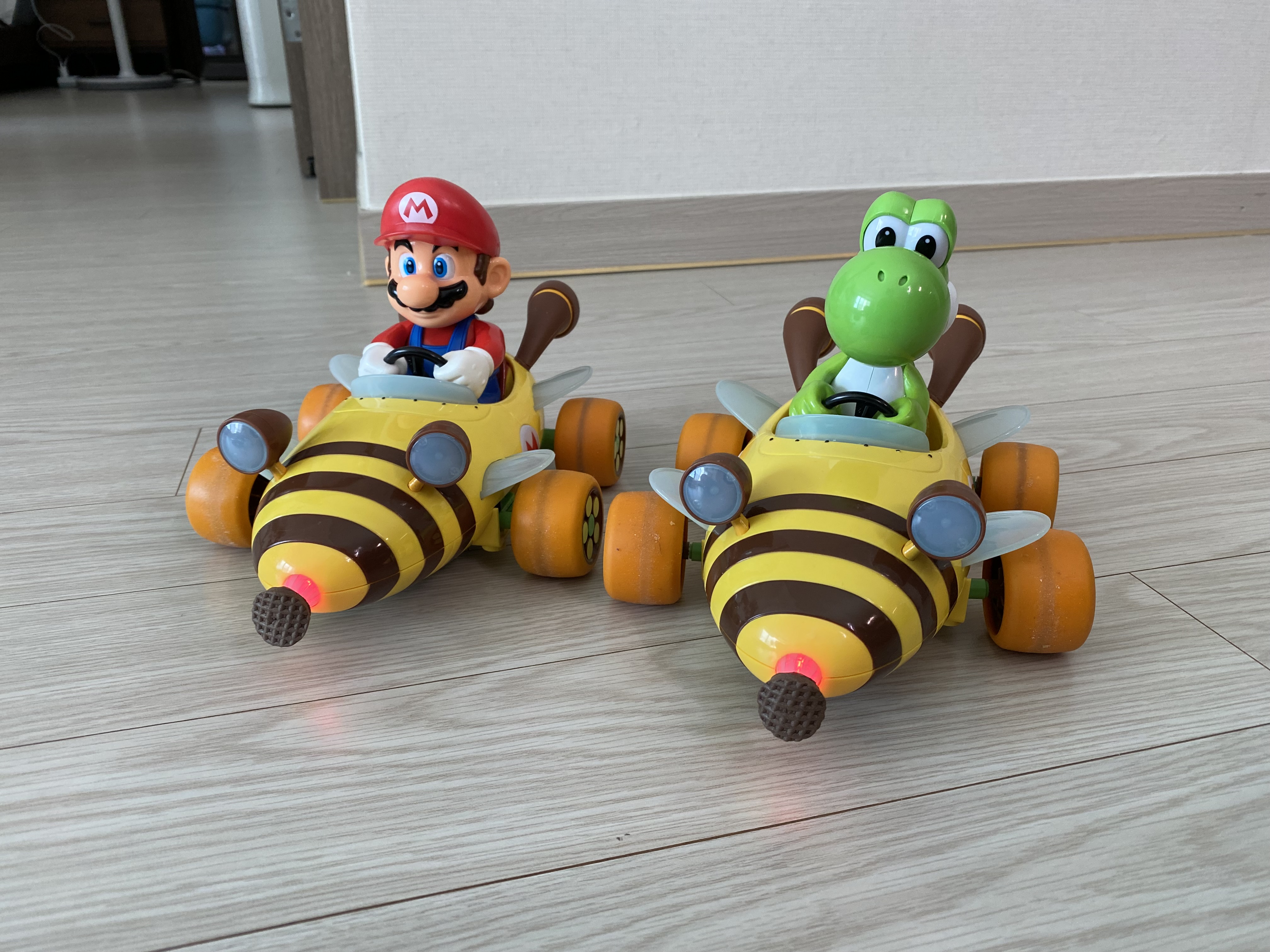마리오 카트 두대가 집안을 돌아다니니 참 귀엽네요. 마루 바닥이라 그런지 바퀴가 미끄러져 속도도 너무 빠르지 않고, 드리프트도 생각보다 잘돼서 아아들이 참 좋아합니다. 보통 다른 RC카는 너무 빨라서 집에서 갖고 놀기 참 부담스러운데 이 제품은 정말 집에서 갖고 놀기 딱입니다. 장판이나 야외에서는 잘 모르겠습니다...