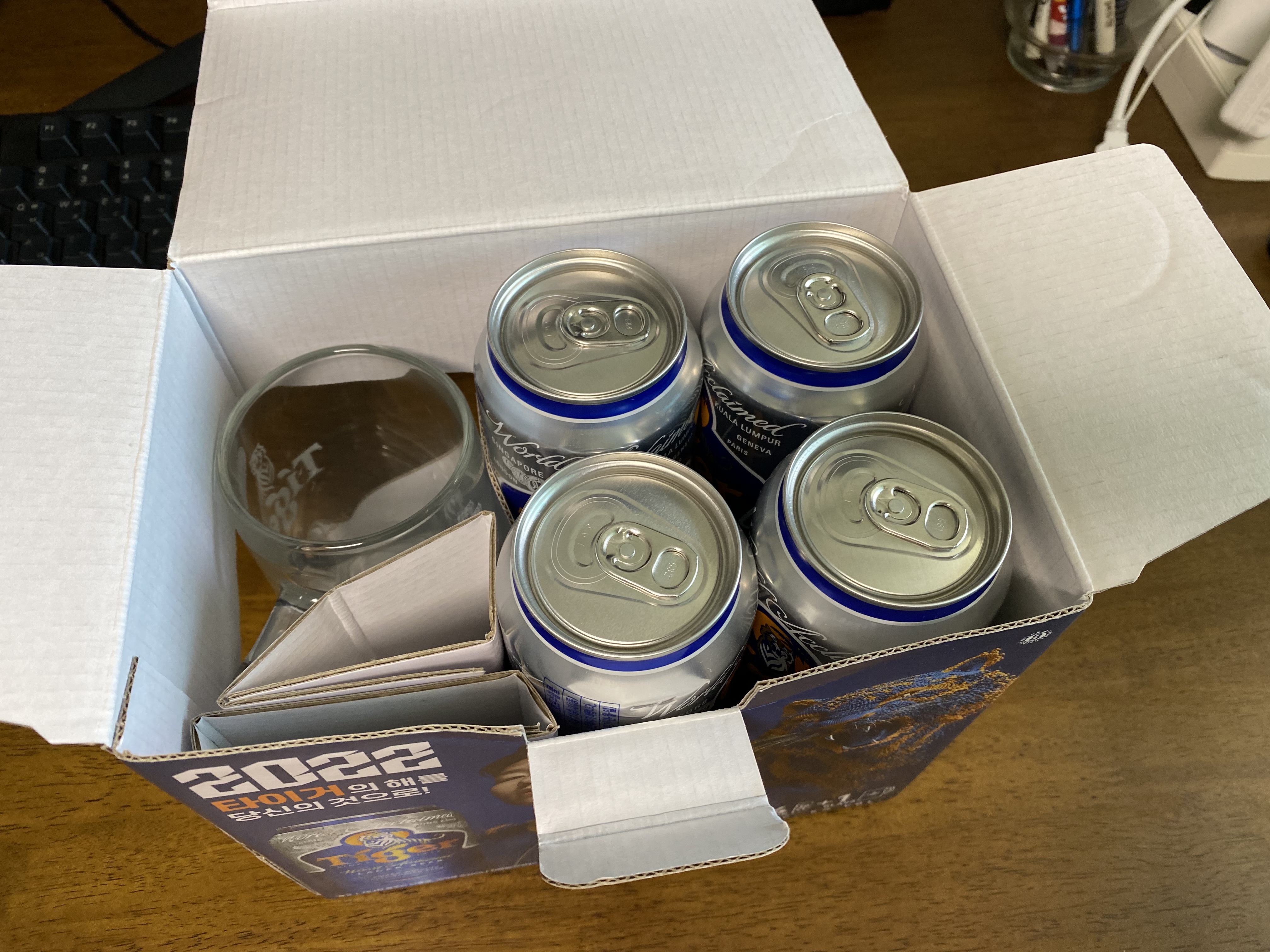 타이거 맥주 전용잔 세트 개봉