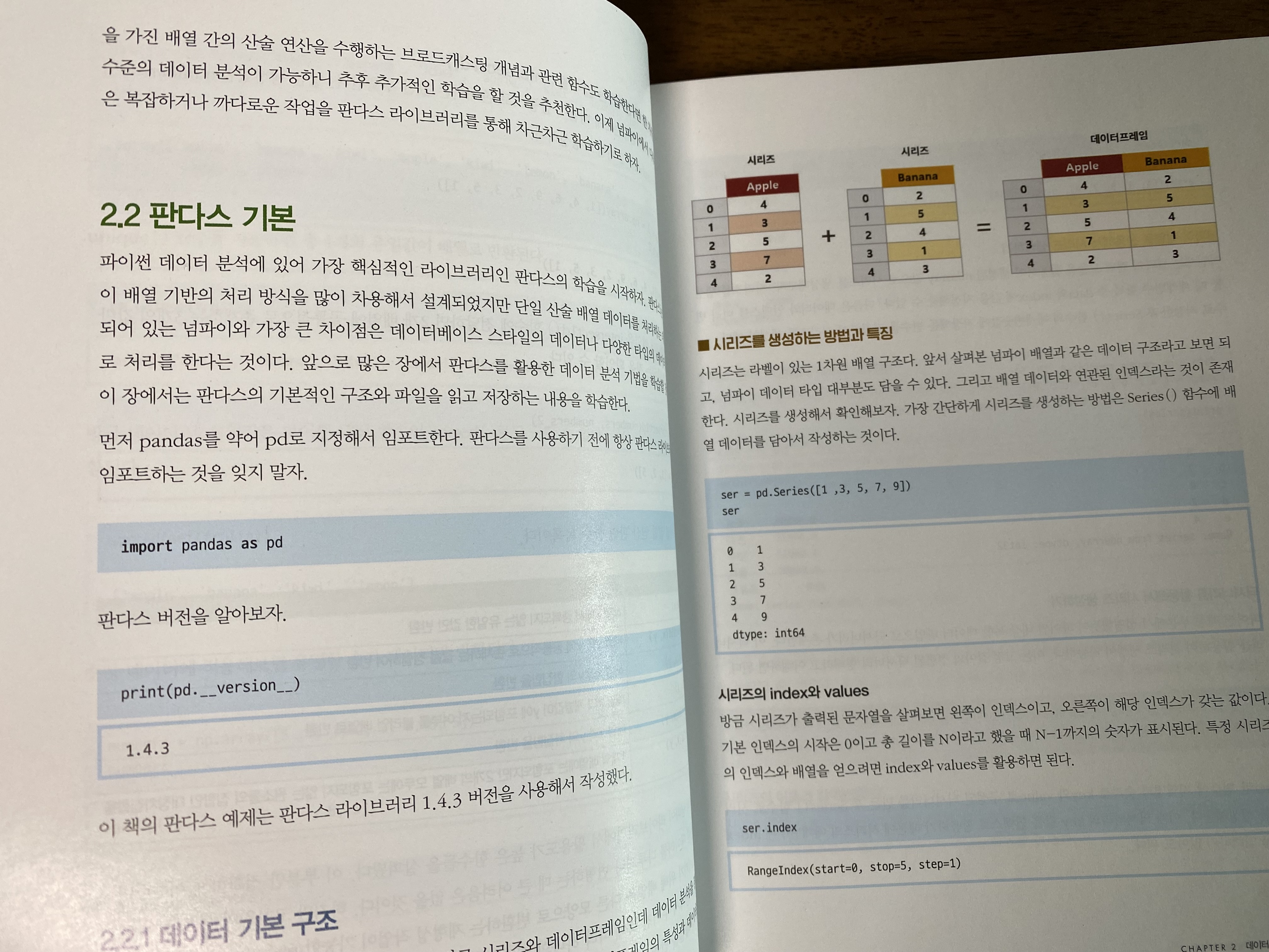 제가 이책을 처음부터 끝까지 본 결과. 처음부터 모든 걸 알려는 마음으로 꼼꼼하게 읽는 건 비효율적으로 보입니다. 챕터1~3은 데이터 분석 기초이기 때문에 순서대로 차근차근 읽어도 되지만 챕터 4~7은 무슨 내용이 있는지 대강만 알고 필요할 때 찾아보면 될 것 같습니다. 병합, 피벗, groupby와 같은 내용은 데이터 분석에 익숙해지기 전에 배우기보단 쓰면서 필요성을 느끼고 적용하면 될 것 같습니다. 엑셀이나 데이터베이스, SQL에 익숙한 사람이라면 모를까 아무것도 모르고 이런 걸 공부하면 가슴만 답답해질 뿐.