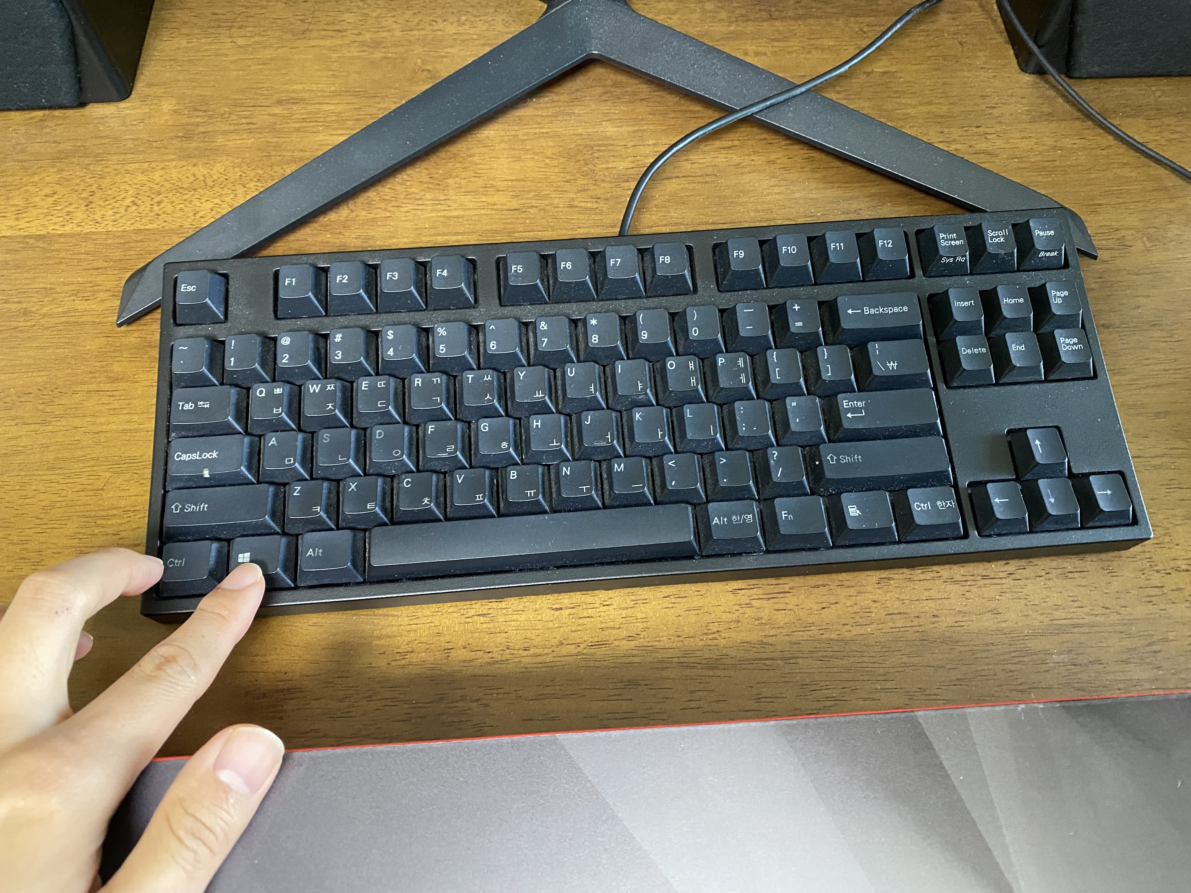 레오폴드 FC750R 기계식 키보드입니다. 왼쪽 컨트롤(Ctrl) 키와 윈도우 키가 고장 났습니다.