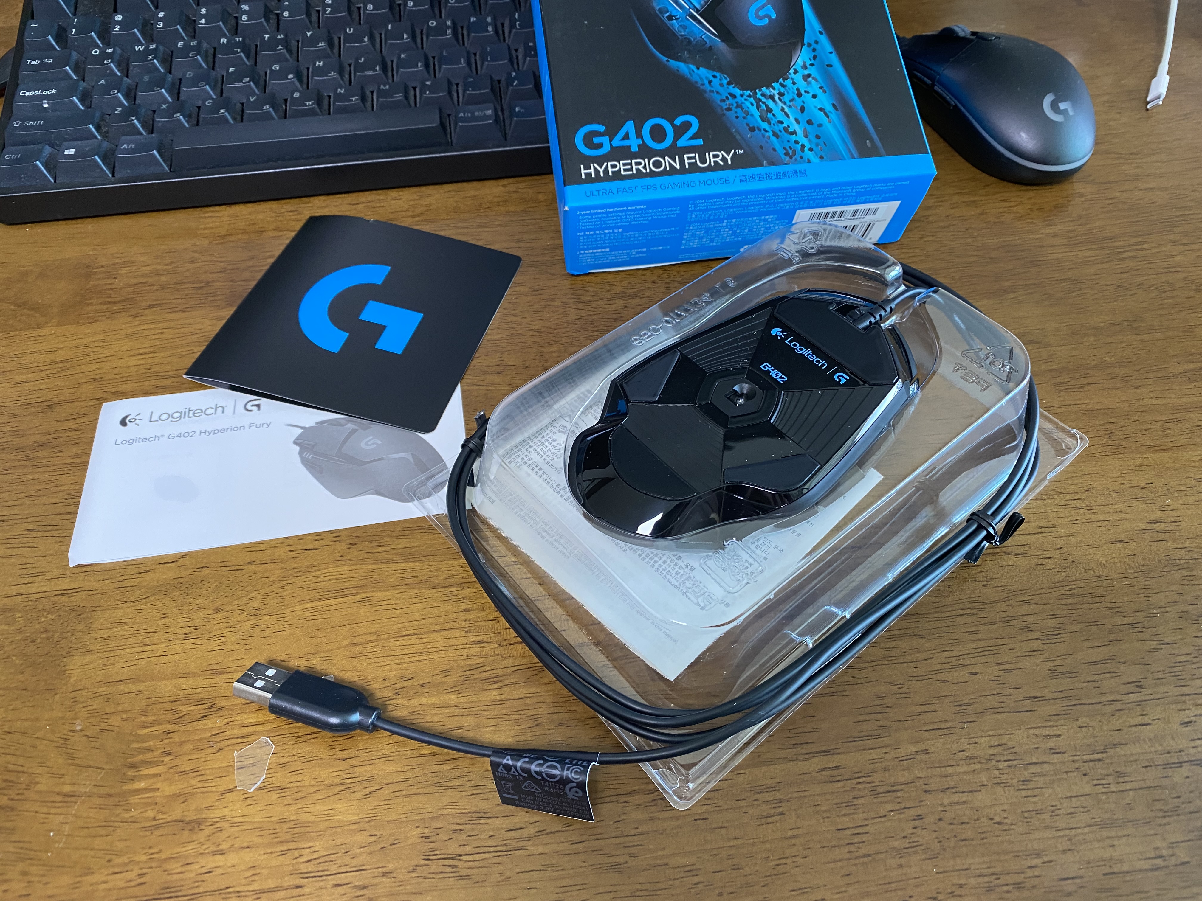 로지텍 G402 Hyperion Fury 게이밍 마우스를 개봉한 모습