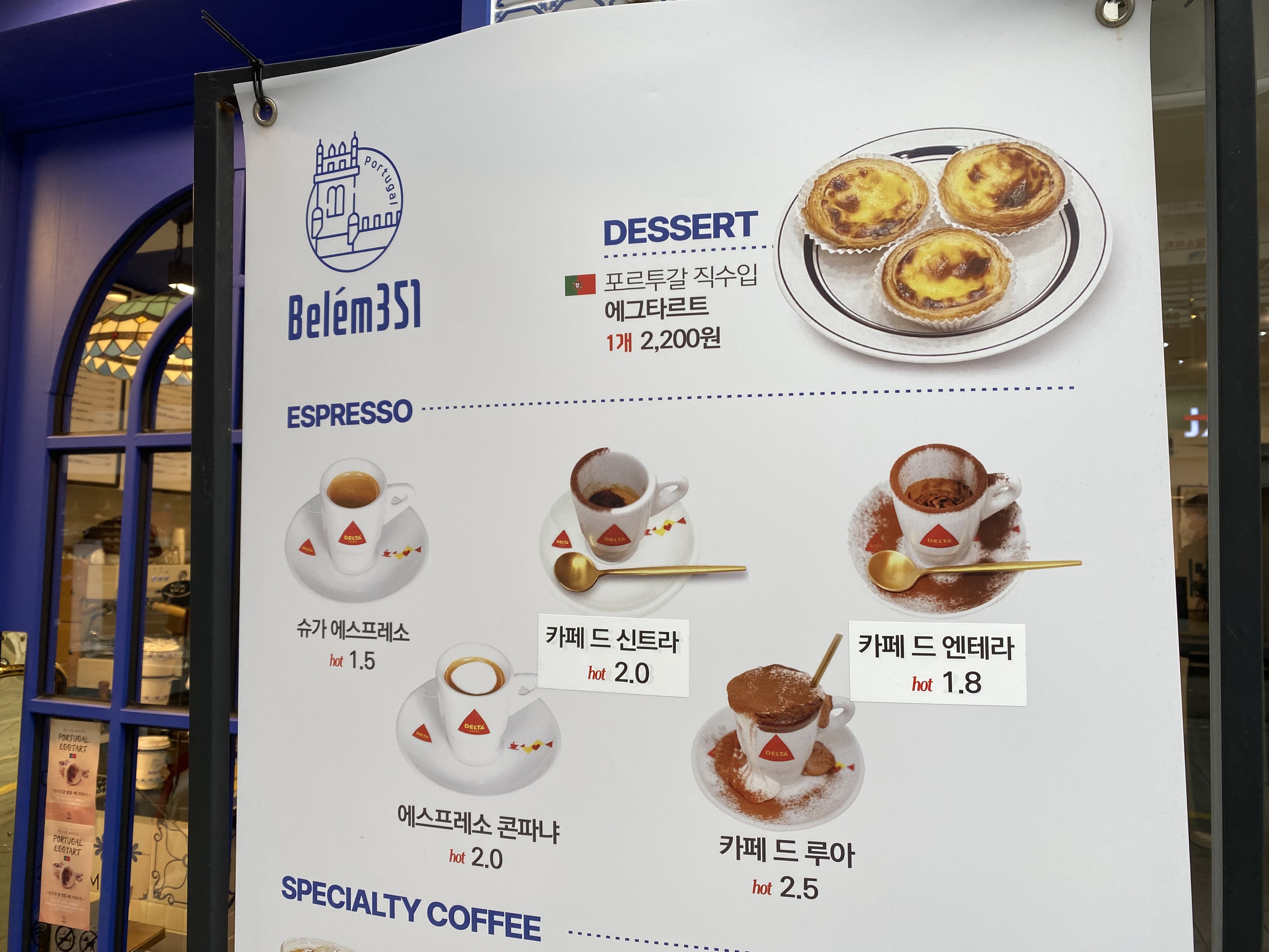 요즘 서면에 있는 벨렘351(Belem351)이라는 포르투갈 정통 에그타르트 집을 자주 갑니다. 사진을 찍을 때는 오픈 1주년으로 전 메뉴 반값을 하고 있었는데 지금은 월드컵 행사로 음료만 반값을 하고 있네요.