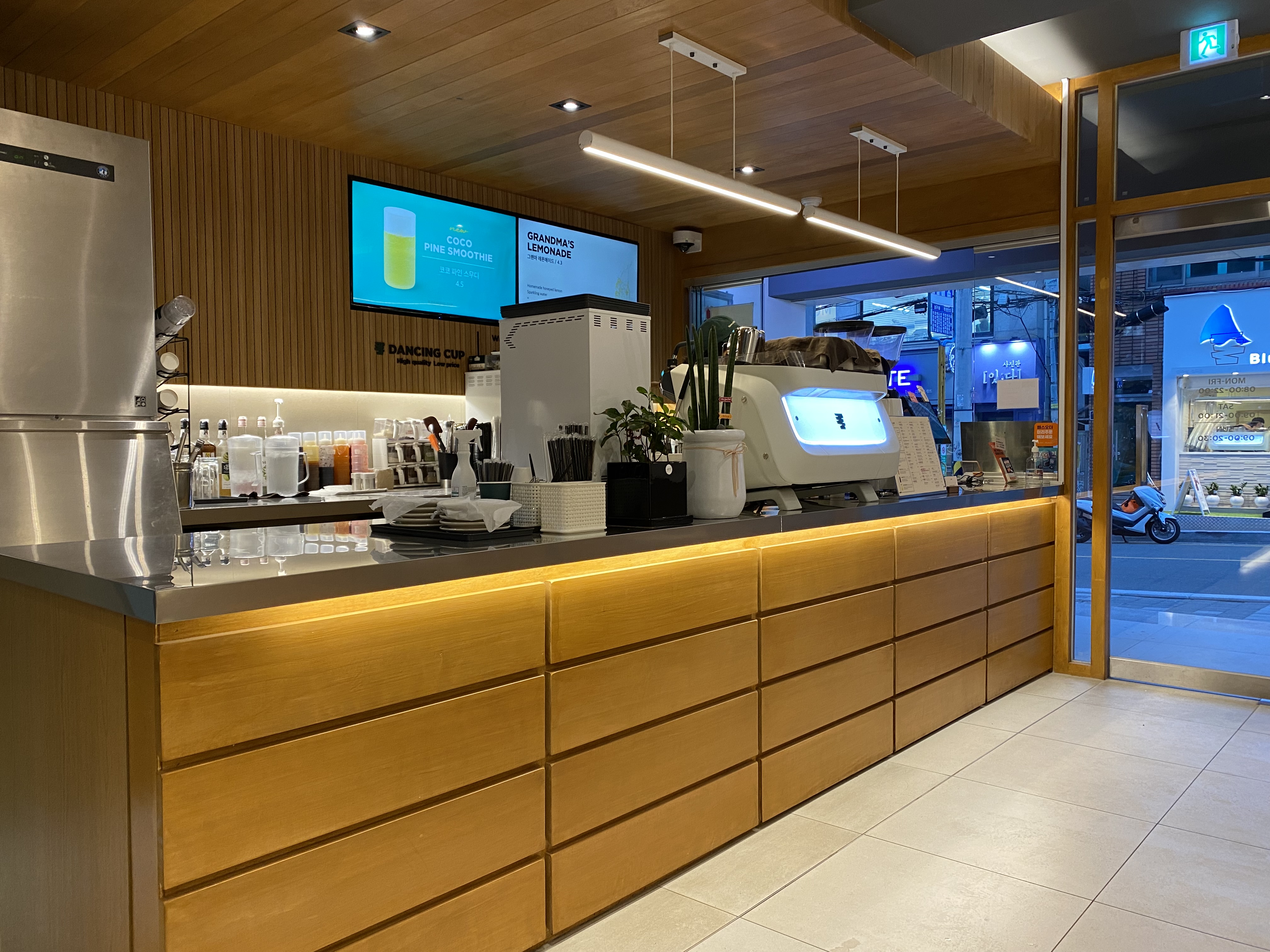 댄싱컵 DANCING CUP 전포점은 매장이 작아서 오래 앉아 있기는 조금 눈치가 보입니다. 직원이 눈치를 주는 건 아닌데 그냥 제가 불편하네요. 여기는 잠깐 앉아서 짧게는 20분 길게는 1시간 정도 머물러 가는 공간이라 생각합니다. 가격이 저렴해서 온전하게 커피만 즐기고 가면 될 것 같습니다. 매장이 작고 가격이 저렴해 테이크 아웃하는 분들이 많네요.