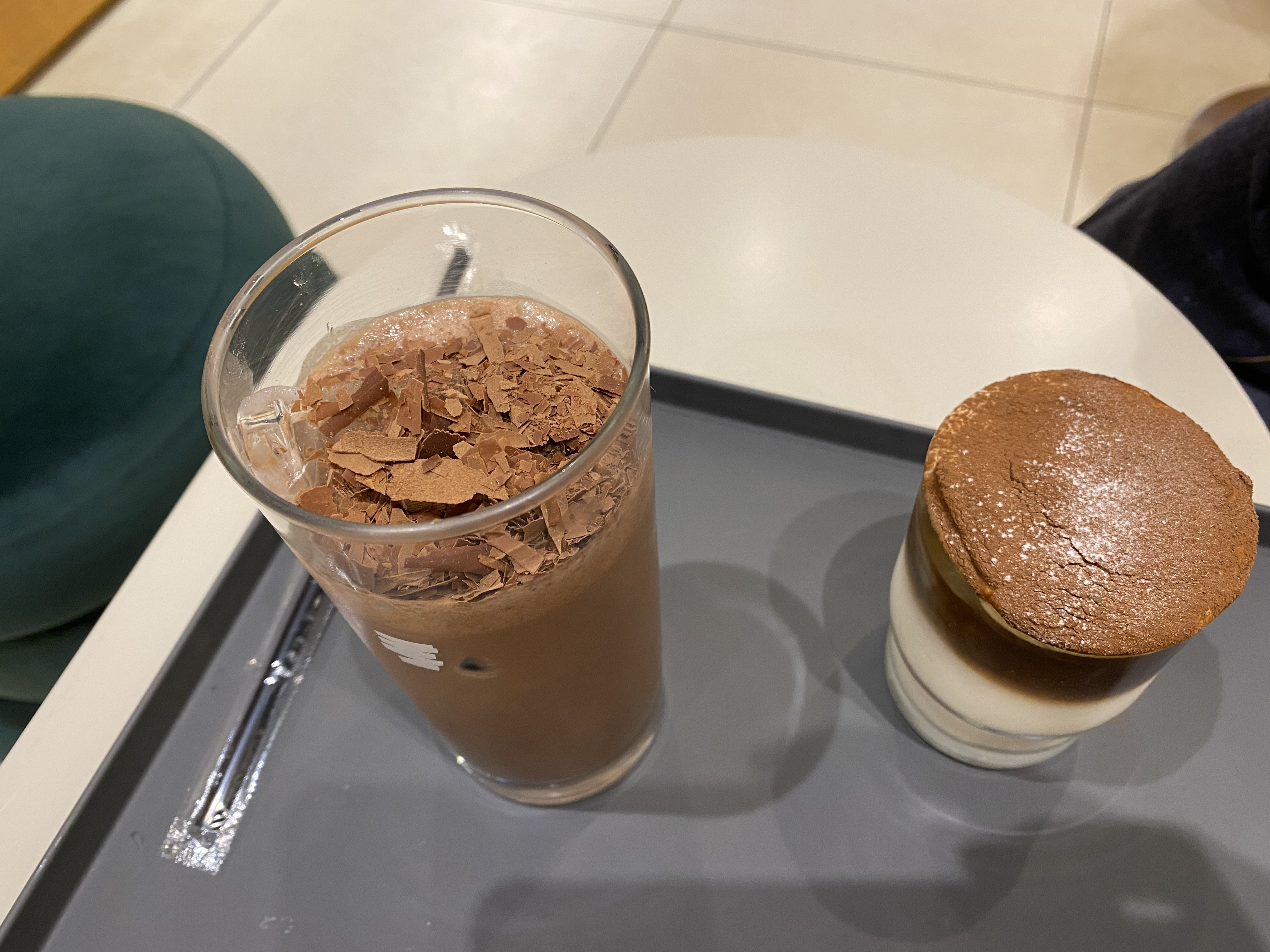 초콜릿을 너무 좋아해서 딥 초콜릿 라떼를 주문했는데 정말 딥해서 그런지 목넘김이 시원한 건 아니네요. 아무리 단 걸 좋아해도 이건 너무 죄책감이 드는 선택이었습니다. 댄싱커피와 조합을 생각하면 아메리카노가 좋을 것 같습니다. 그렇다고 맛이 없다는 소리는 아닙니다. ㅎㅎ