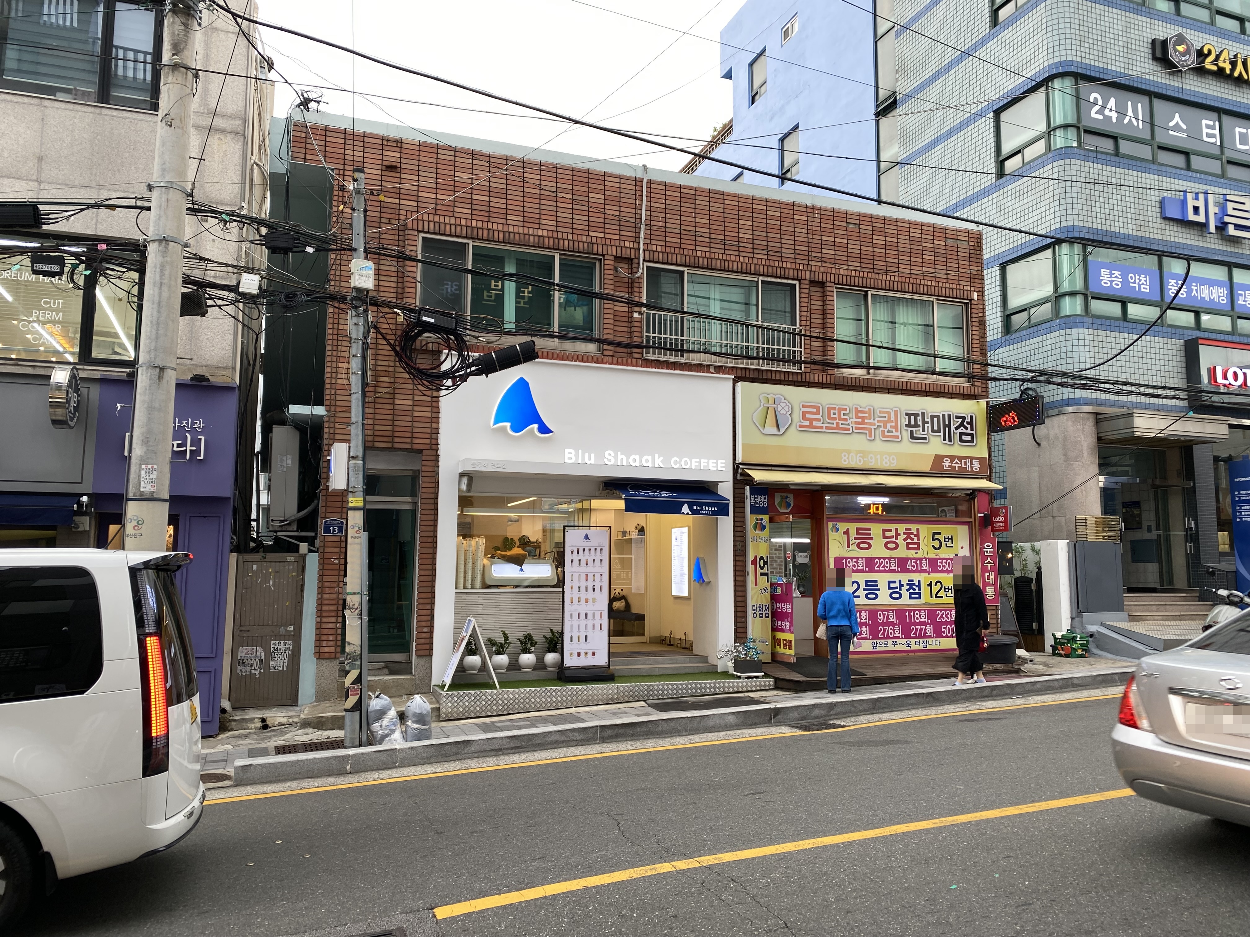 댄싱 컵 맞은편에는 블루샥이라는 나름 가격 포지션이 비슷한 커피숍이 있습니다. 블루샥 샥라떼도 나름 맛이 좋은데 저는 댄싱커피가 좀 더 마음에 듭니다. 블루샥 옆에는 로또복권의 성지가 있습니다.