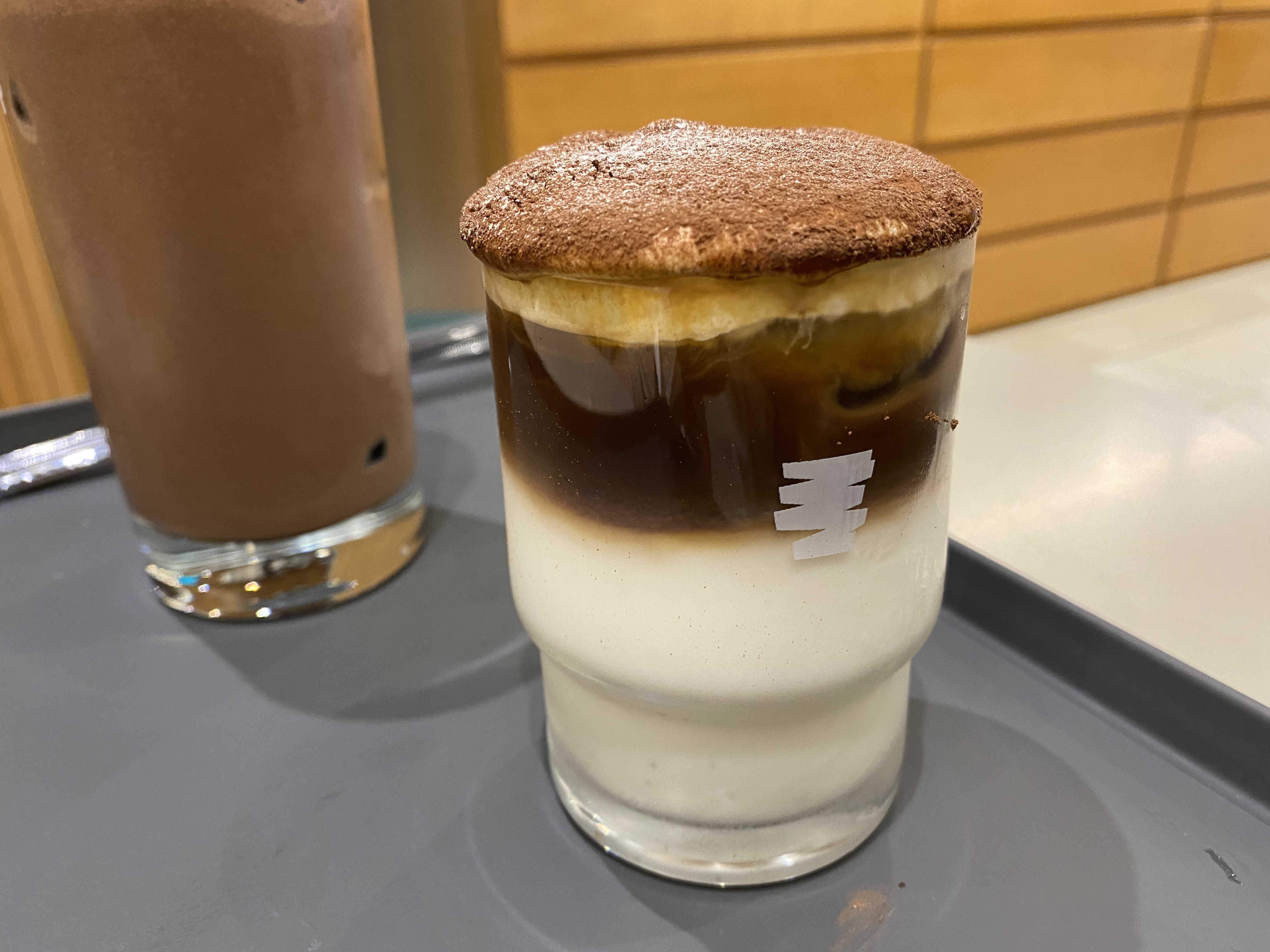 댄싱커피는 보고만 있어도 좋네요. 직원분에 따라 위에 올라오는 크림의 양과 파우더의 양이 다르지만 이날은 정말 듬뿍 뿌려주셨네요. 위에는 파우더, 크림 중간에 에스프레소, 밑에는 달콤한 우유가 층을 이루고 있는 모양입니다. 처음에는 댄싱커피를 층이 난 상태에서 따로 즐기다가 나중에는 섞어서 먹습니다. 댄싱커피는 다 좋은데 양이 좀... 그래서 더 간절하게 즐기는지도 모릅니다. 아무튼 갈 때마다 마시는 커피입니다.