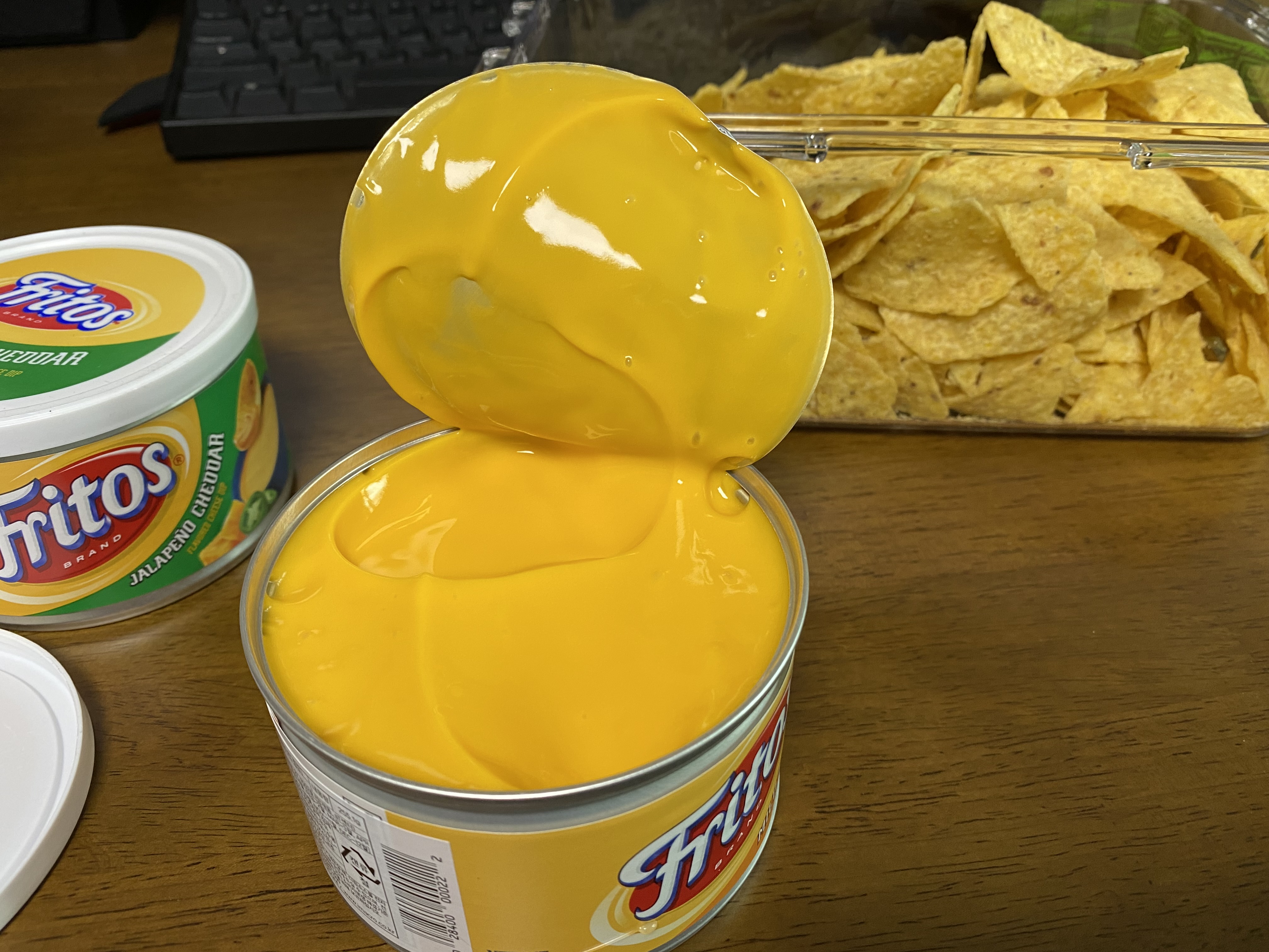 프리토스 Fritos 체다치즈 디핑소스 뚜껑을 연 모습입니다.