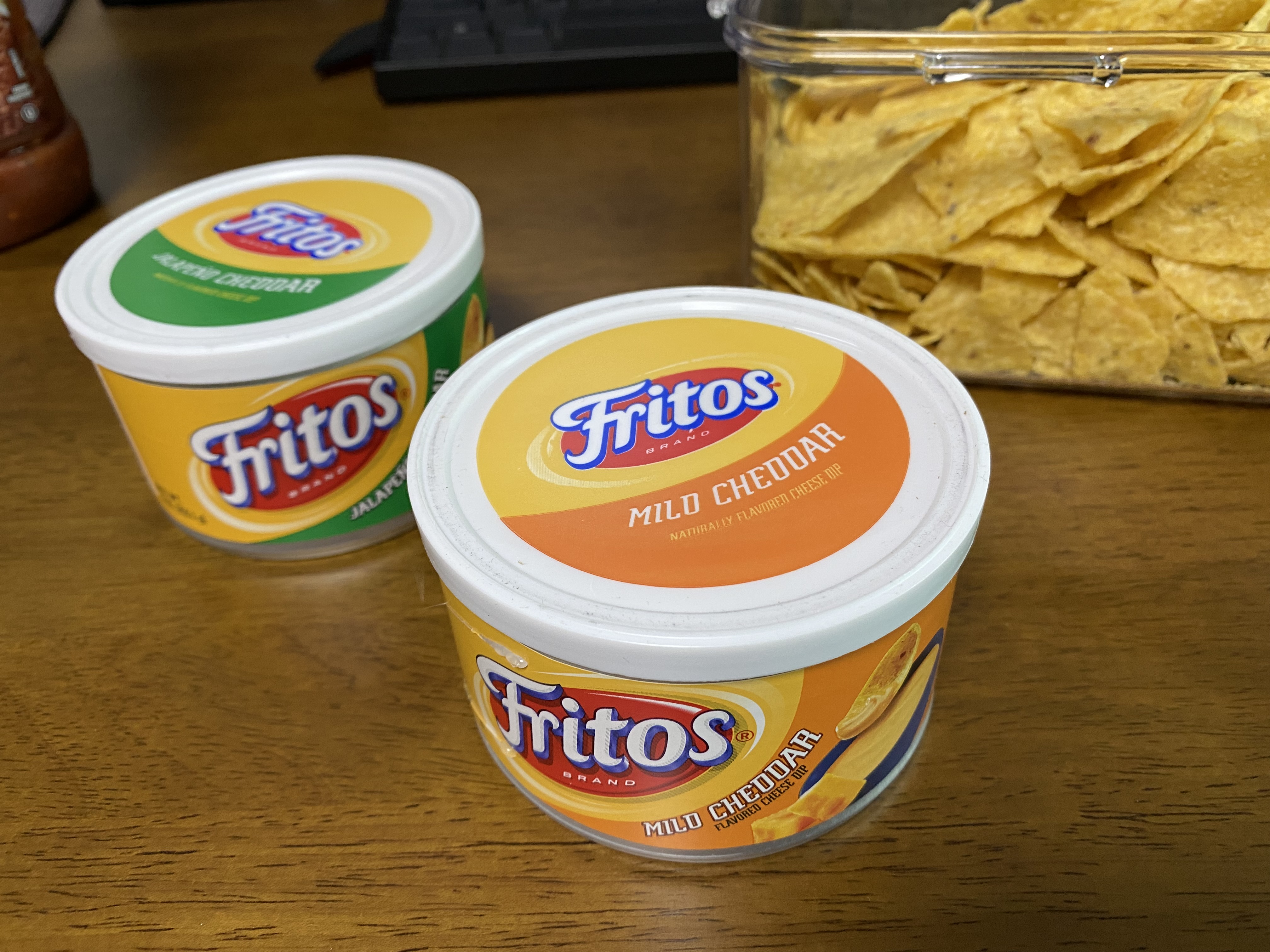 Fritos 체다치즈 딥소스 세트에는 2가지 맛이 포함되어 있습니다. 마일드 체다와 할라피뇨 체다가 그것인데 큰 맛의 차이는 없고 맵고 안 맵고의 차이라고 보면 됩니다. 할라피뇨의 유무.