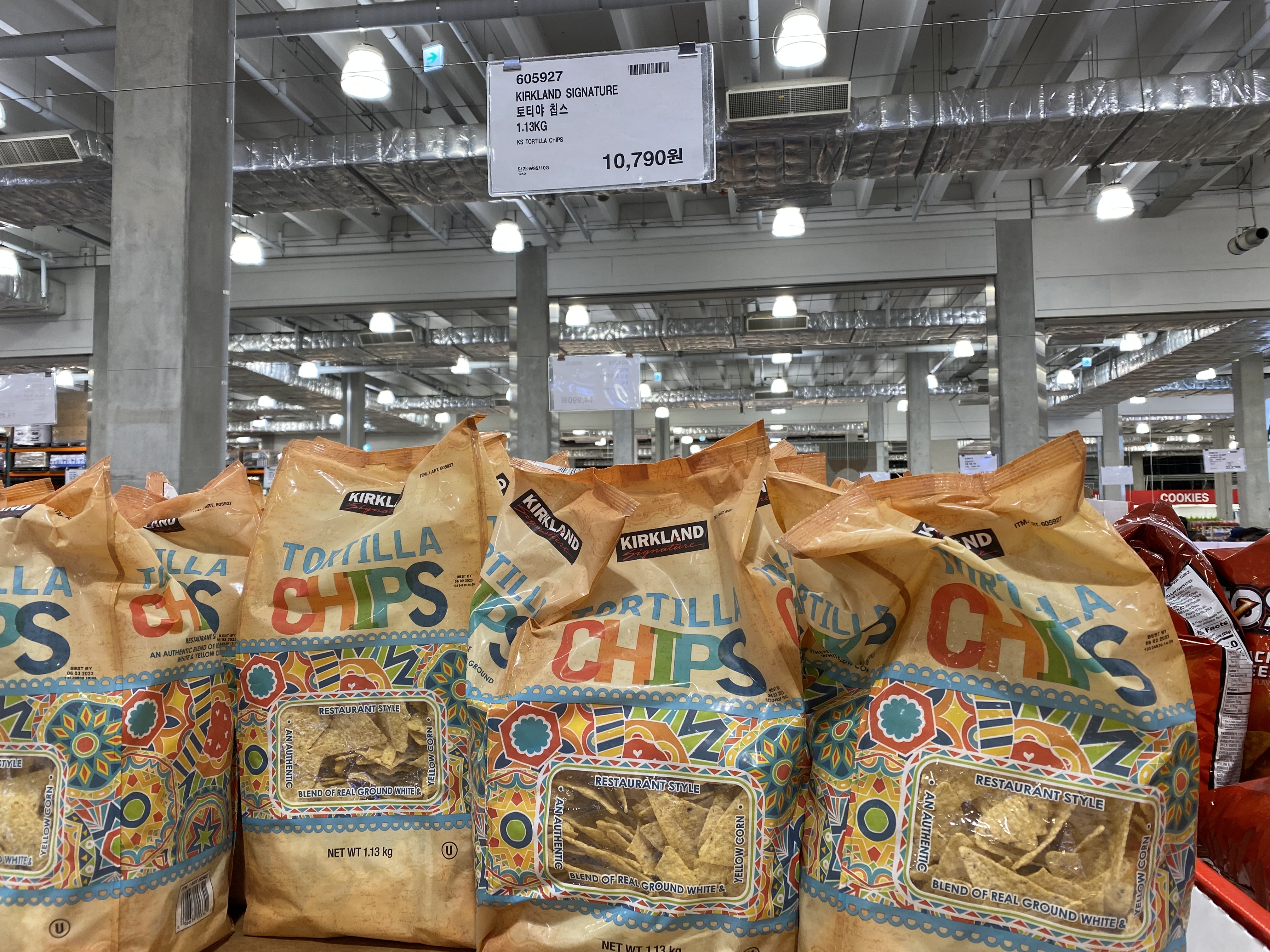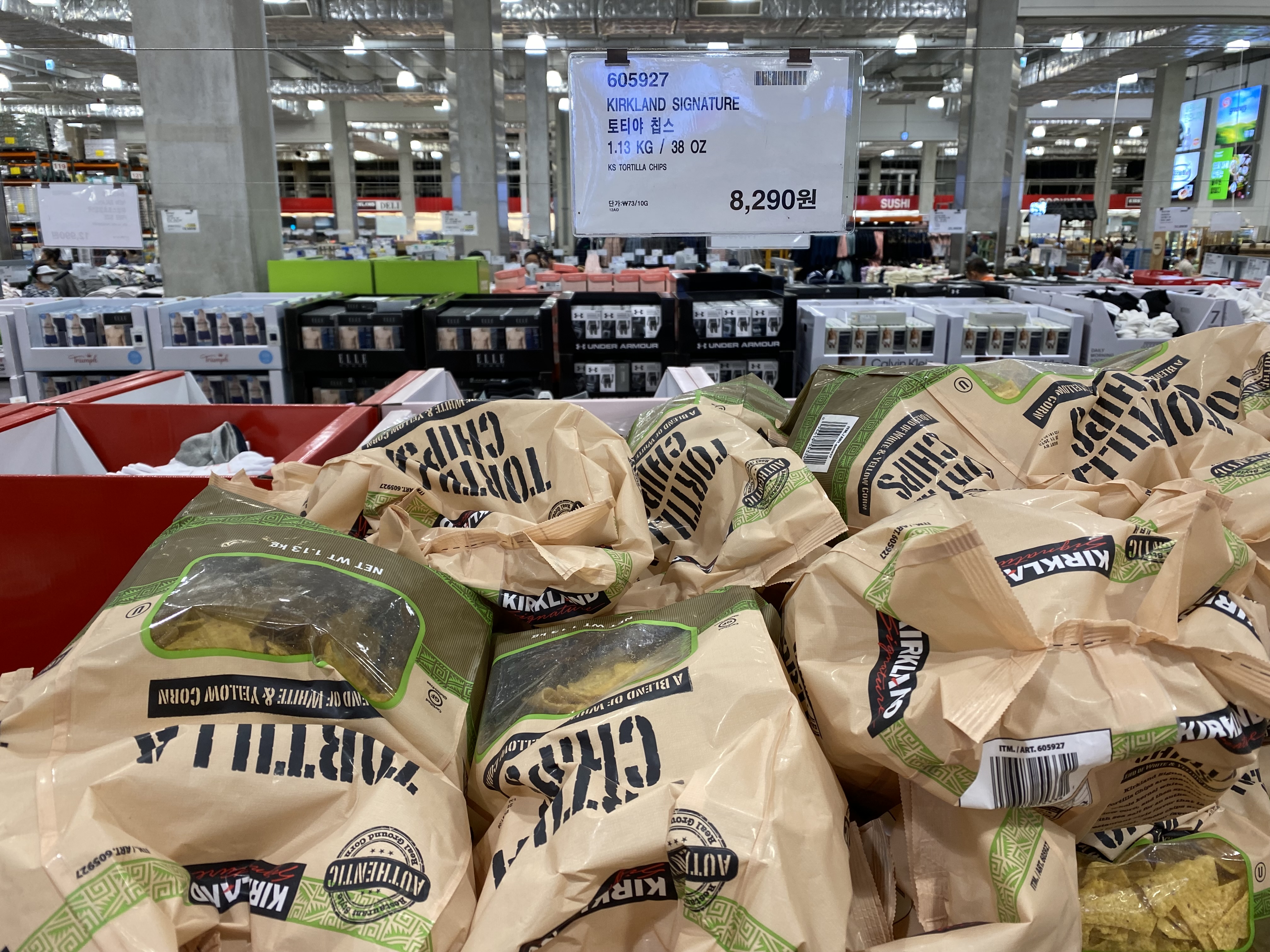 최근에 찍은 코스트코 커클랜드 시그니처 토티야 칩스 가격. 2000원 정도 올랐습니다. 인플레이션이란...