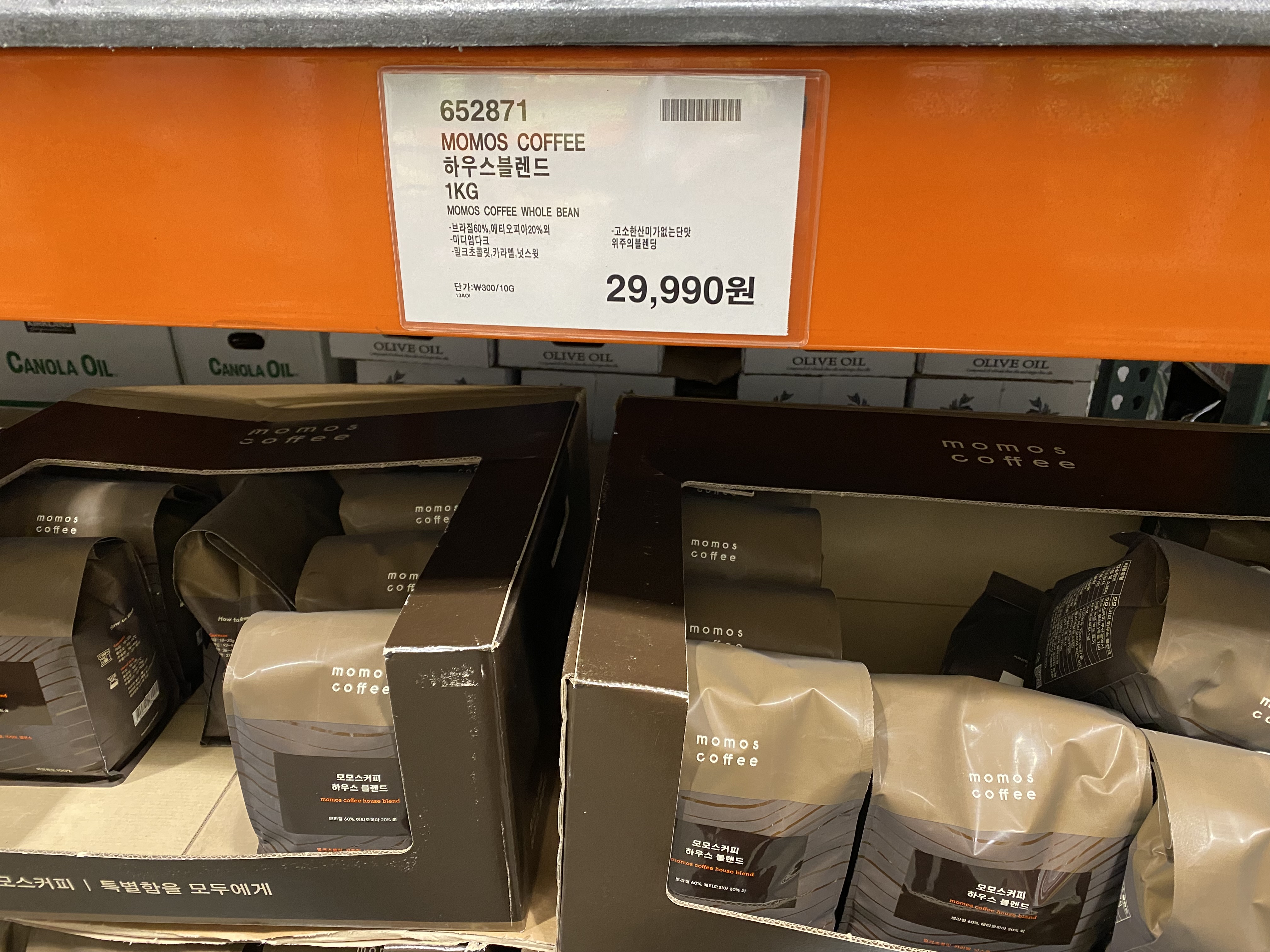 코스트코에서 원두를 자주 사는데 요즘 못 보던 원두가 보이네요. 우일라 원두에 이어 이번에는 momos coffee 모모스커피 하우스 블렌드 원두입니다.