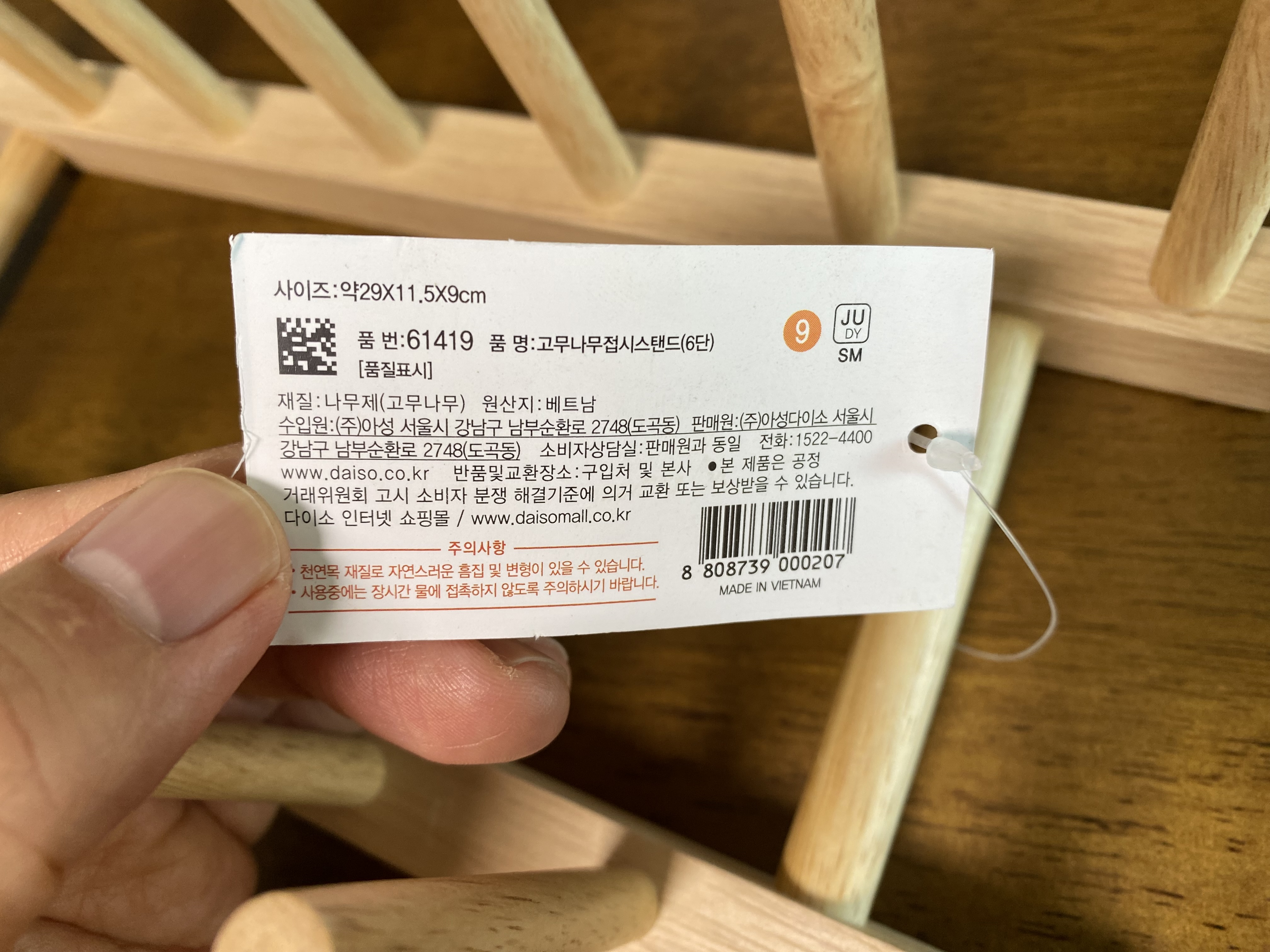 다이소에서 고무나무 접시 스탠드 6단을 구매했습니다. 가격은 2000원으로 매우 저렴한 접시 스탠드입니다. 접시를 보관하기 위해 산 것은 아니고 집에 있는 스마트폰, 태블릿 PC, 전자책(이북)을 보관하기 위해 샀습니다. 다이소에 이거 말고 3단으로 된 접시 스탠드도 있으며 가격은 1000원으로 기억하고 있습니다.