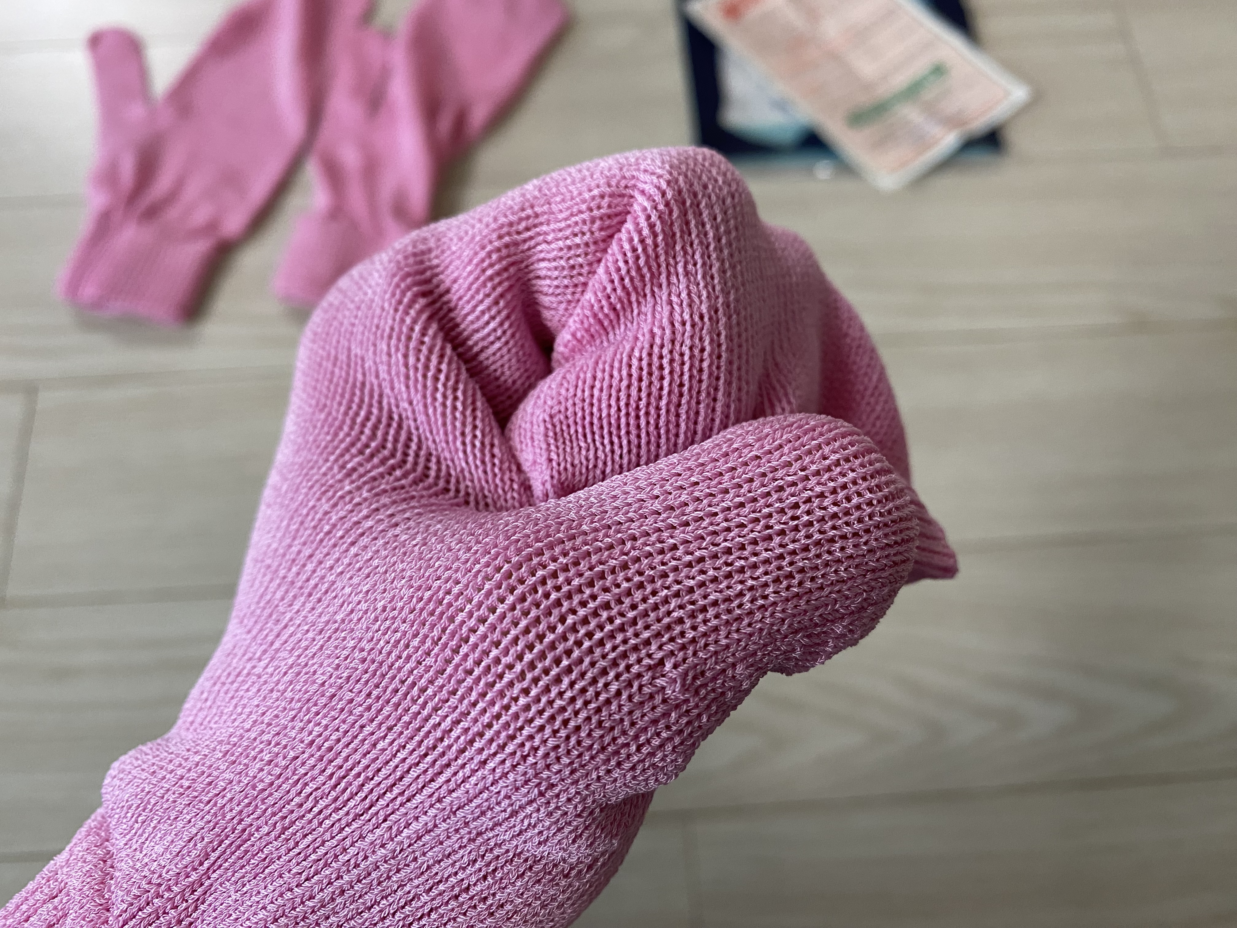 정준산업 요술 손모아 때장갑을 착용한 모습. 남자가 사용하기에도 괜찮은 사이즈입니다. 적당한 크기의 남자 손인데 넉넉하게 큰 것은 아니지만 작지도 않습니다.