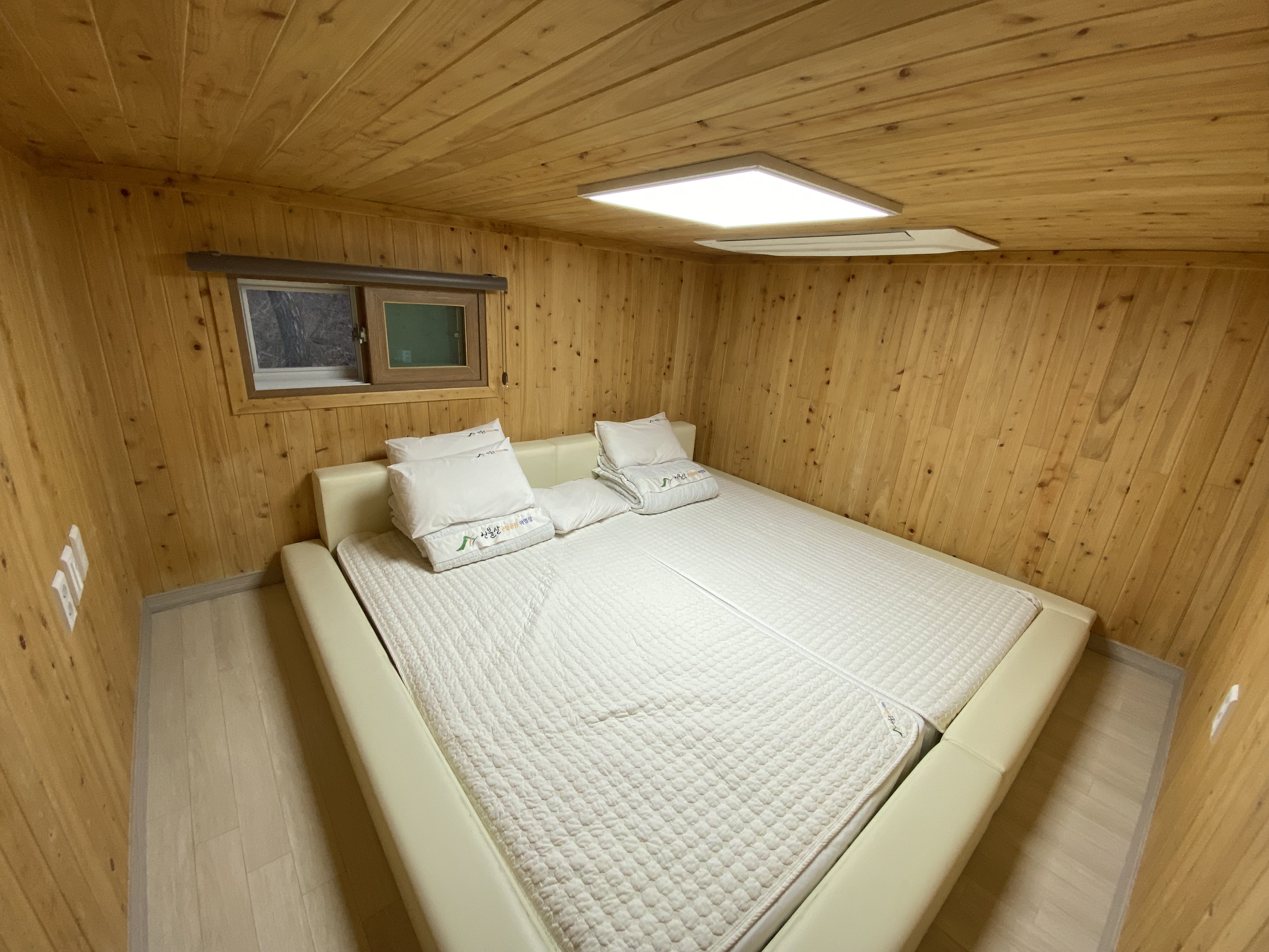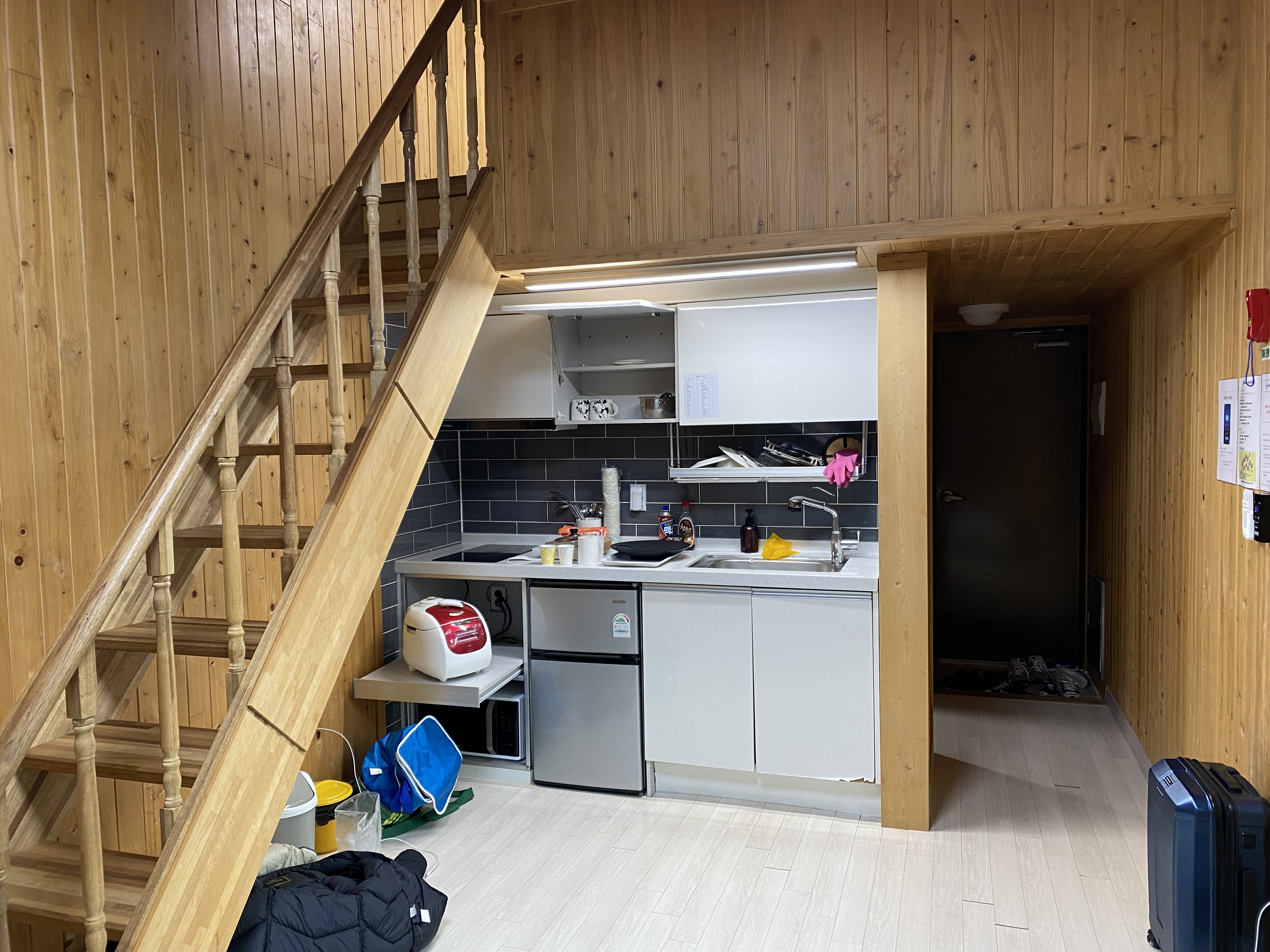 생각보다 넓은 2층 다락방. 불을 켜면 너무 밝고 끄면 암흑입니다. 작은 수면등 설치가 시급합니다. 침대가 있지만 매트리스 퀄리티는 사실 별로입니다. 요즘도 이런 매트리스가 있다니 신기하네요. 그래도 땅바닥보다는 좋다고 생각하고 나름 잘 잤습니다.