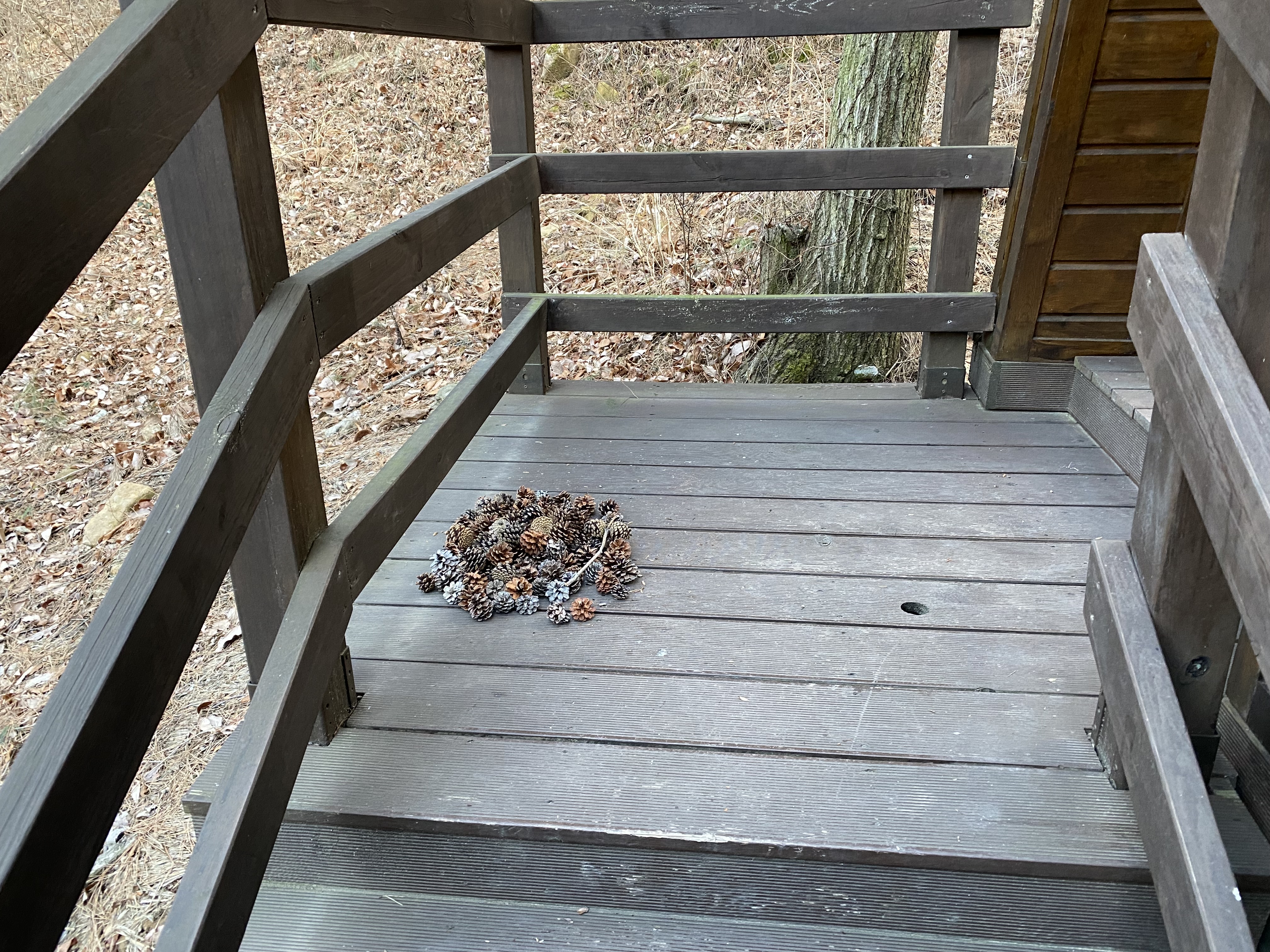 아이들이 솔방울을 가지고 논 흔적들...