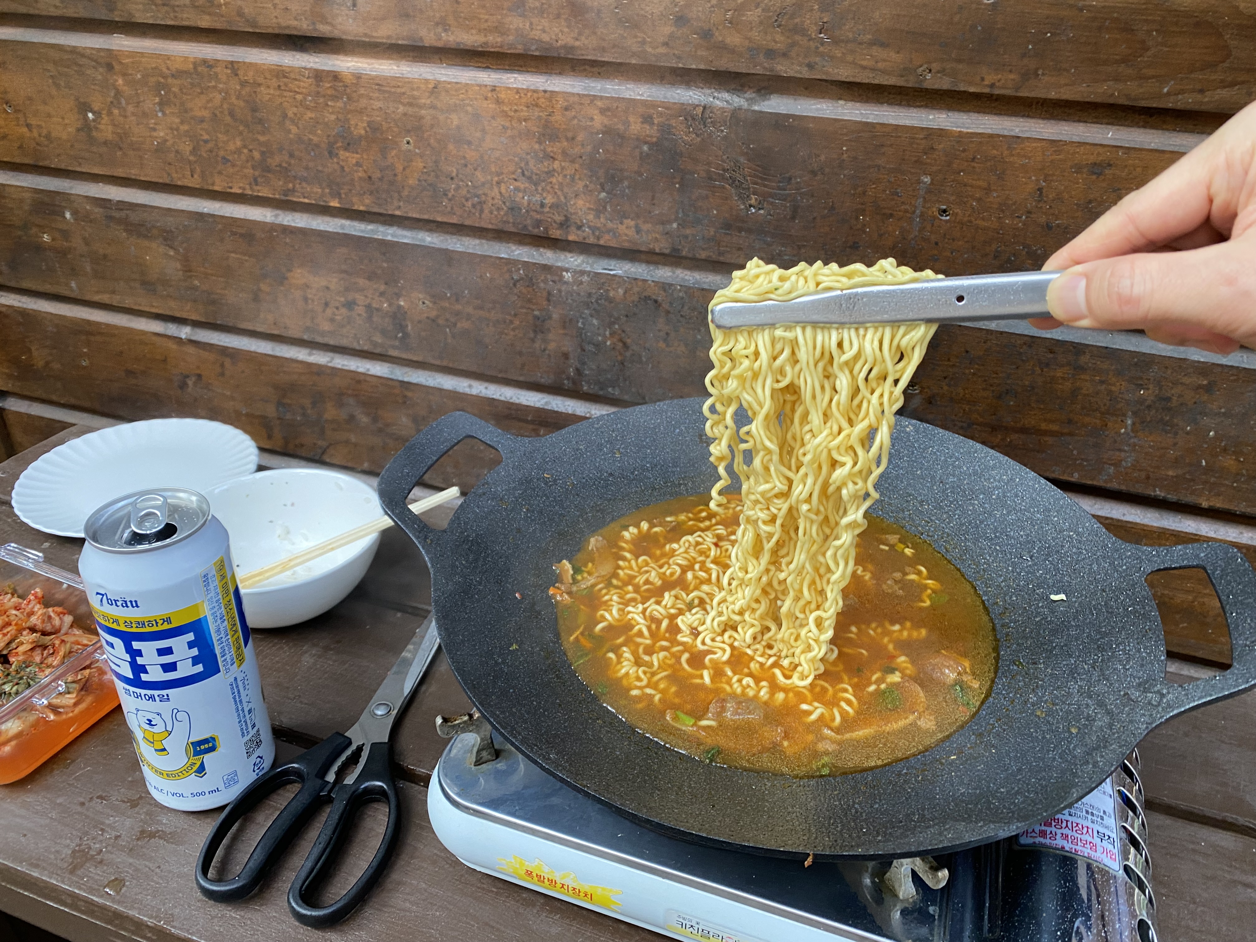 마지막 불판은 라면으로 장식했습니다. 역시나 야외에서 먹으니 더 맛있네요.