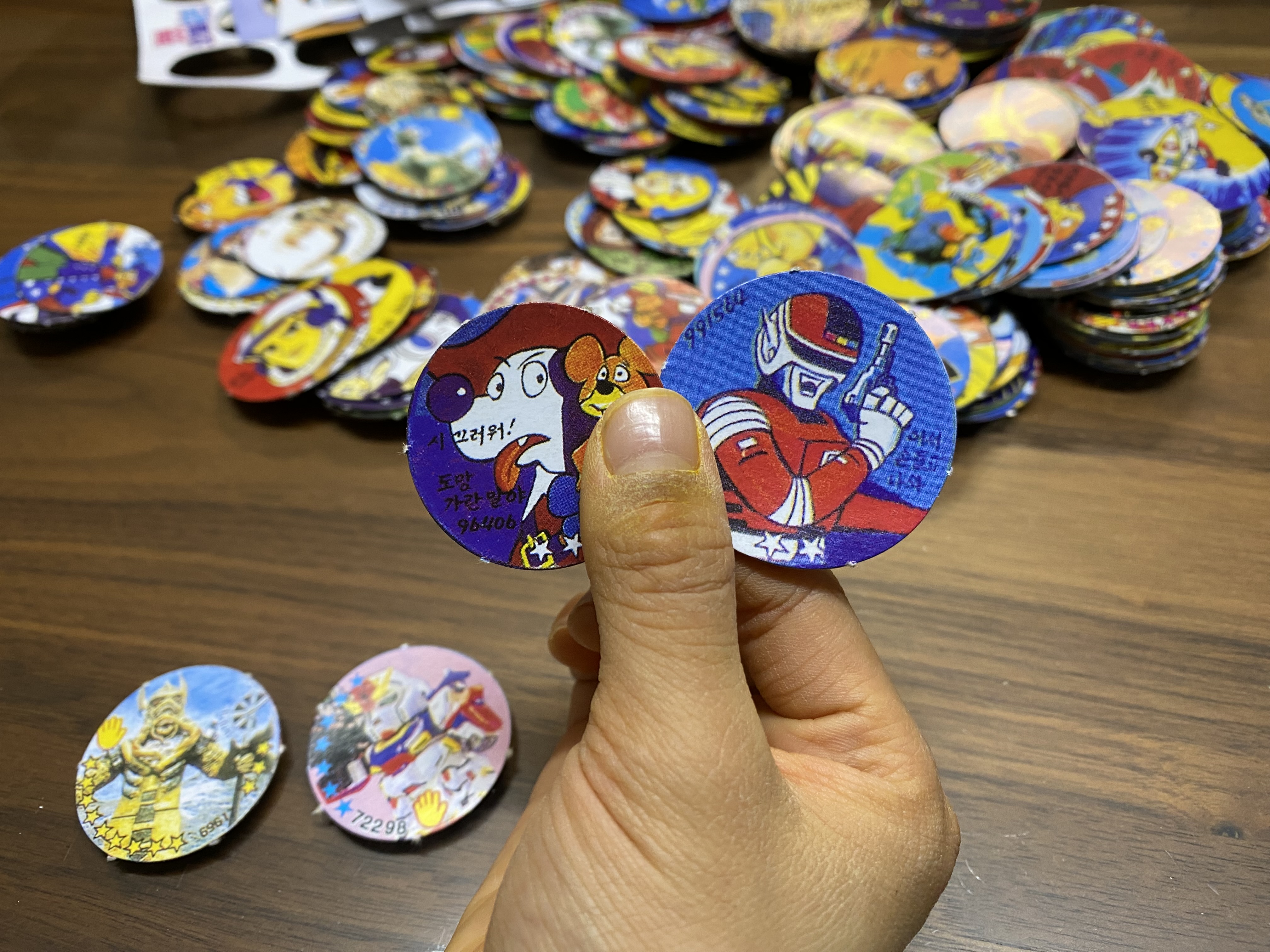 옛날 종이 딱지를 다 뜯은 모습. 예전에 부산에서는 이걸 '동딱지'라고도 불렀는데 다른 곳에서는 어떻게 불렀는지 모르겠네요. 아무튼 아이들과 갖고 놀기 충분한 동딱지입니다. 이 종이 딱지로 할 수 있는 놀이에 뭐가 있는지 한번 나열해 보면 이렇습니다. 제가 모르는 놀이가 있으면 댓글을...