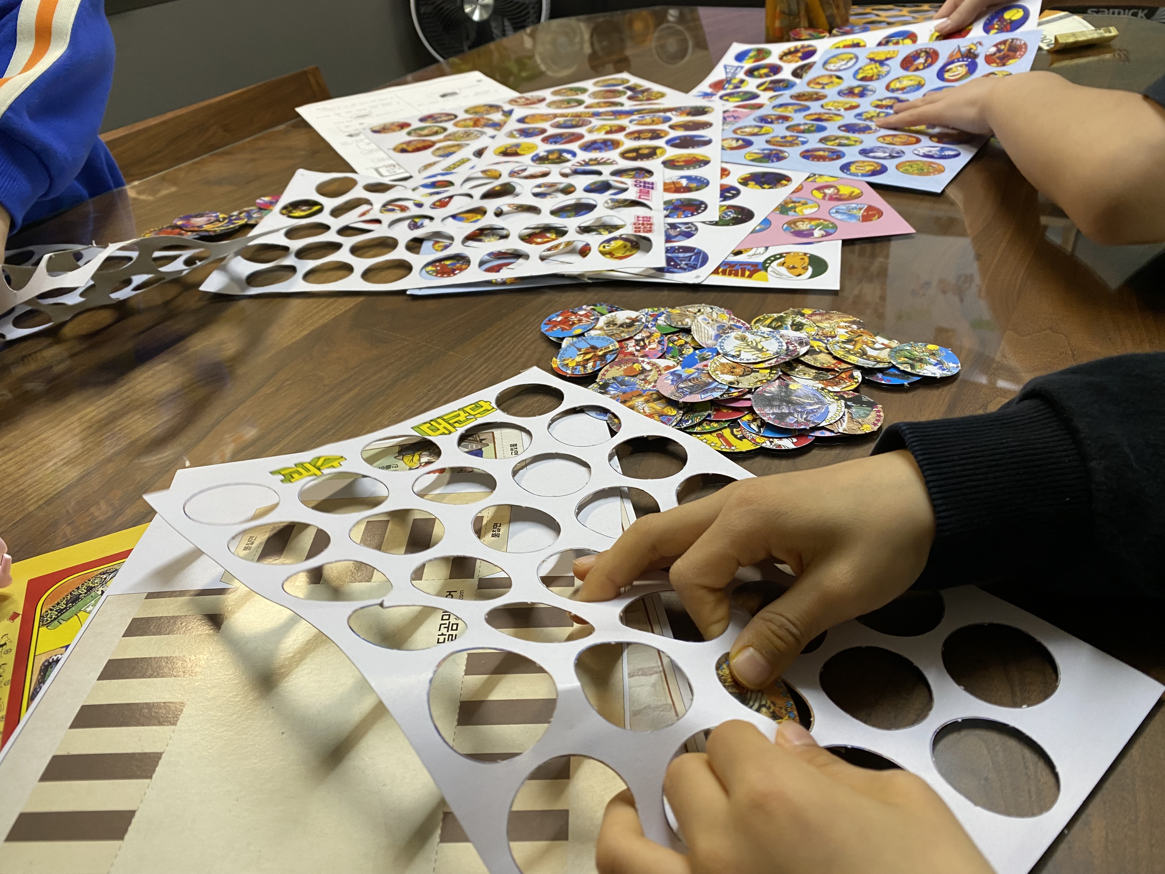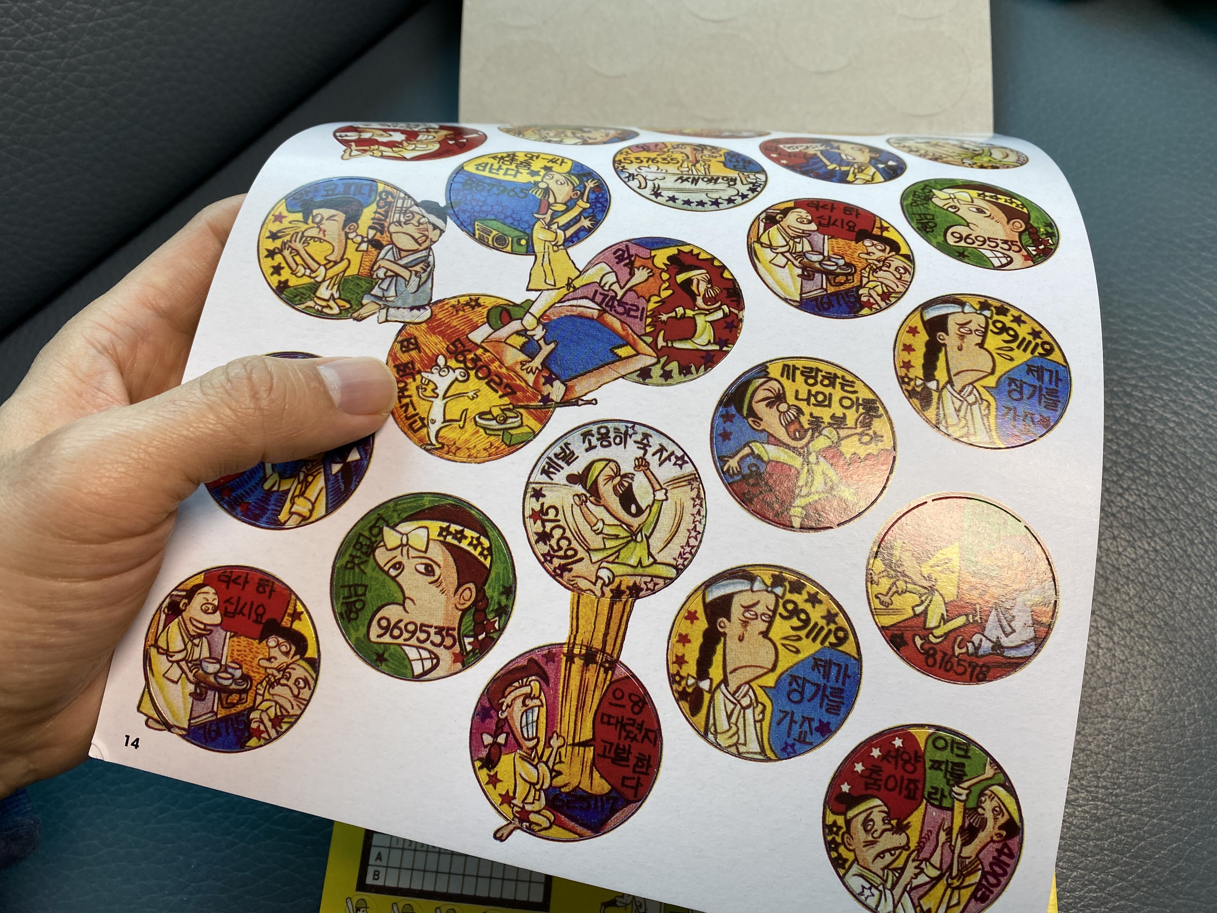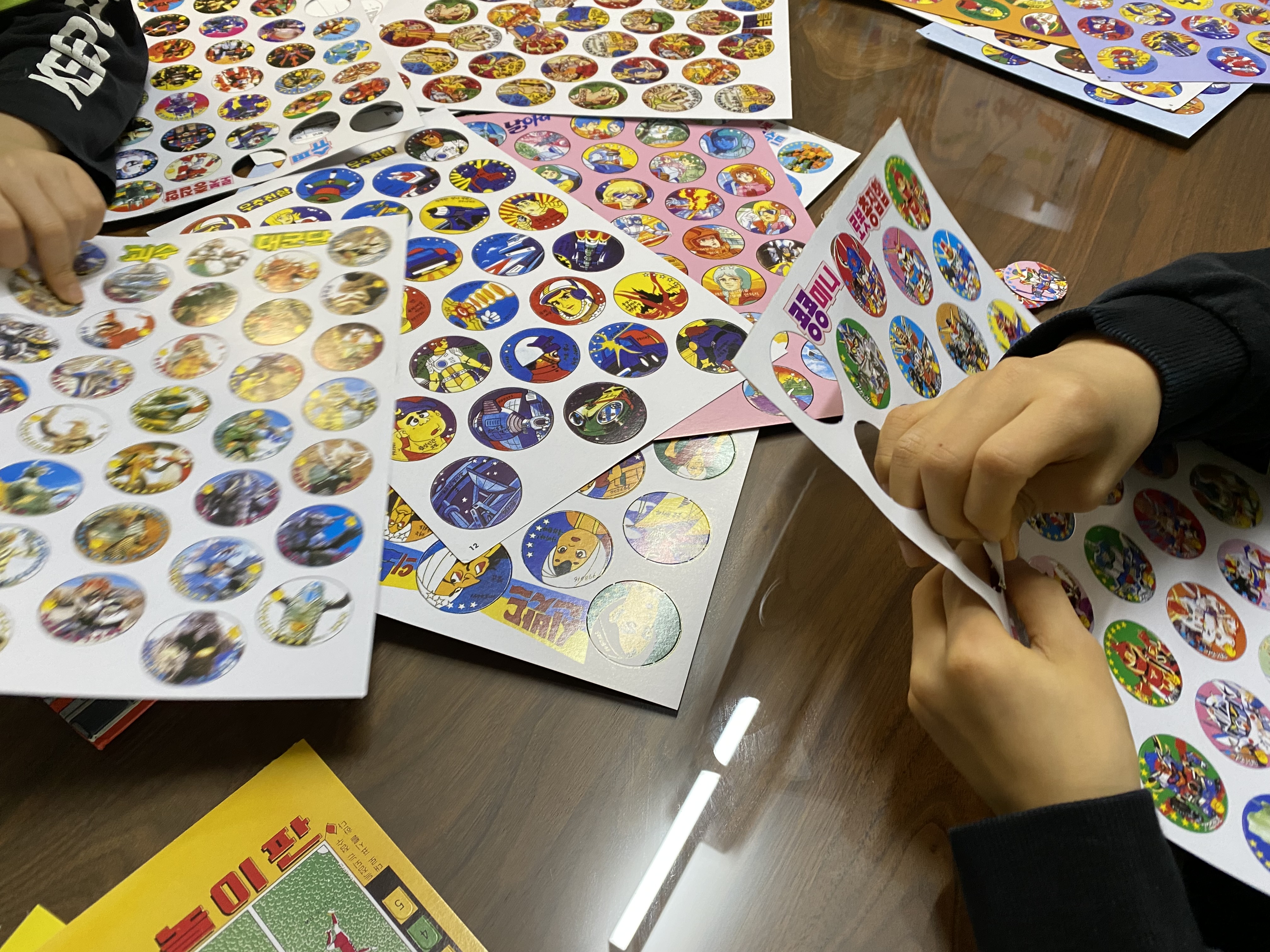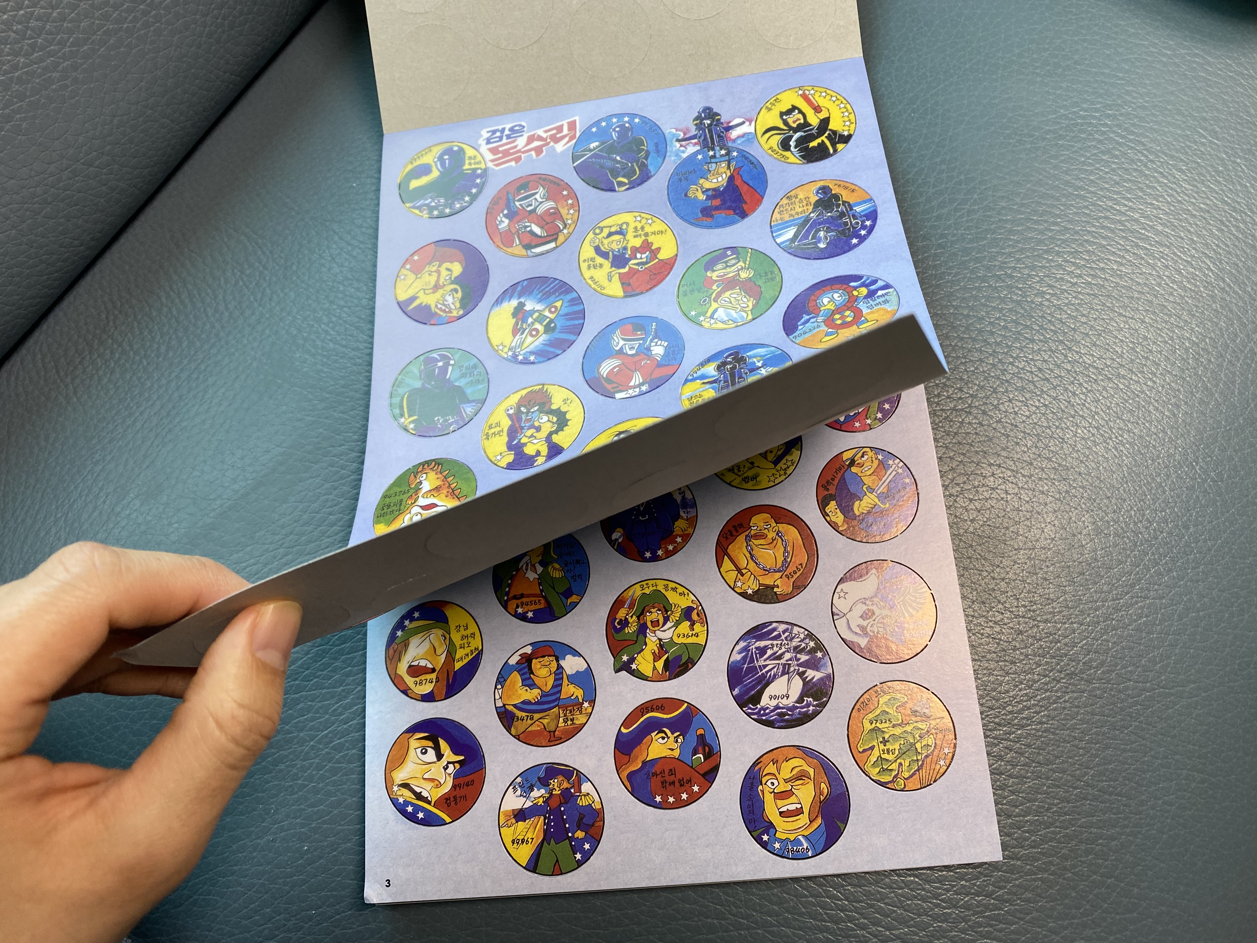 아이들과 함께 열심히 종이 딱지를 뜯었습니다. 생각보다 많아서 시간이 좀 걸려요. 옛날 감성을 잘 살려서 그런지 마감처리 또한 예전과 비슷합니다. ㅎㅎ 뜯을 때 잘못하면 딱지 종이까지 뜯어지니 조심하세요.