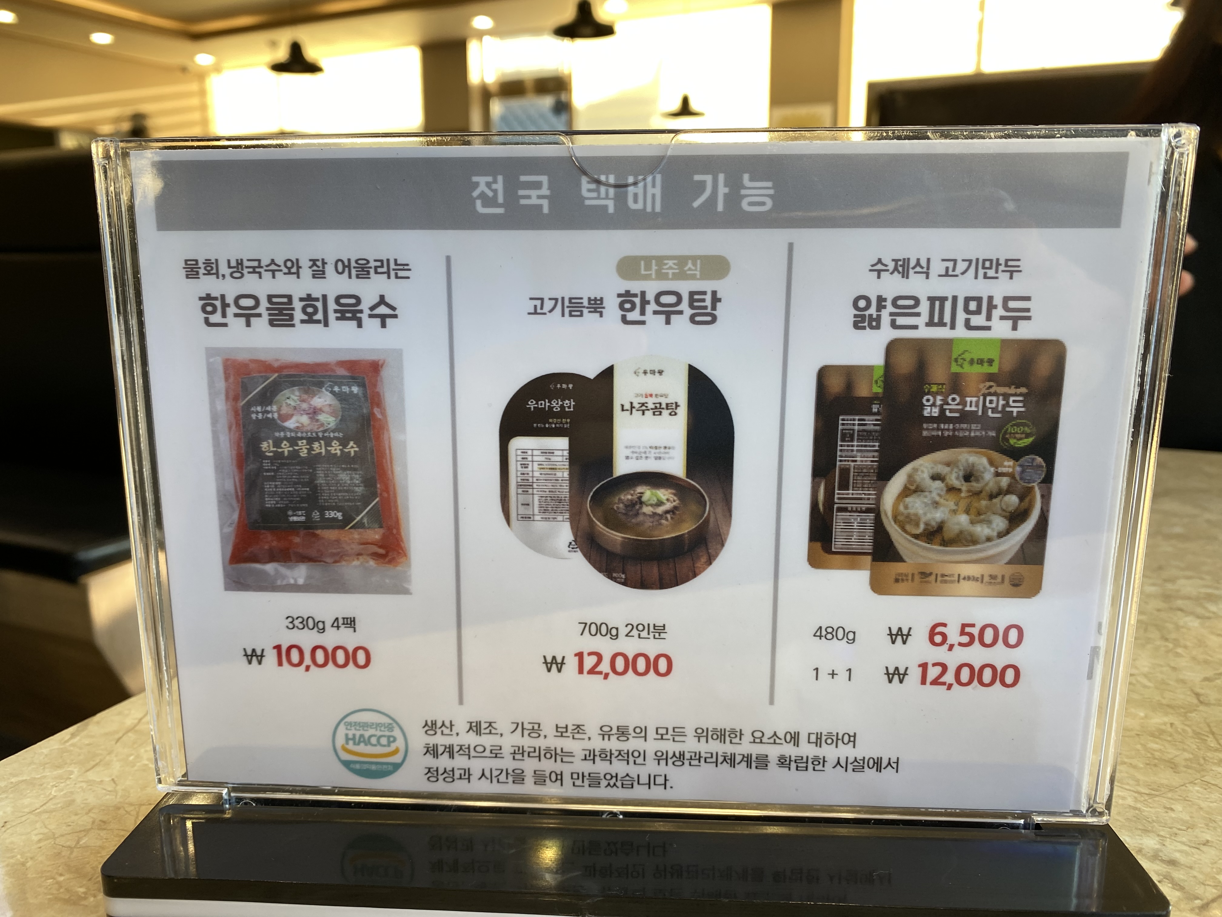 한우물회육수, 한우탕, 얇은피만두. 식당에서 먹어도 되지만 이렇게 포장을 해서 파는 것도 있었습니다.