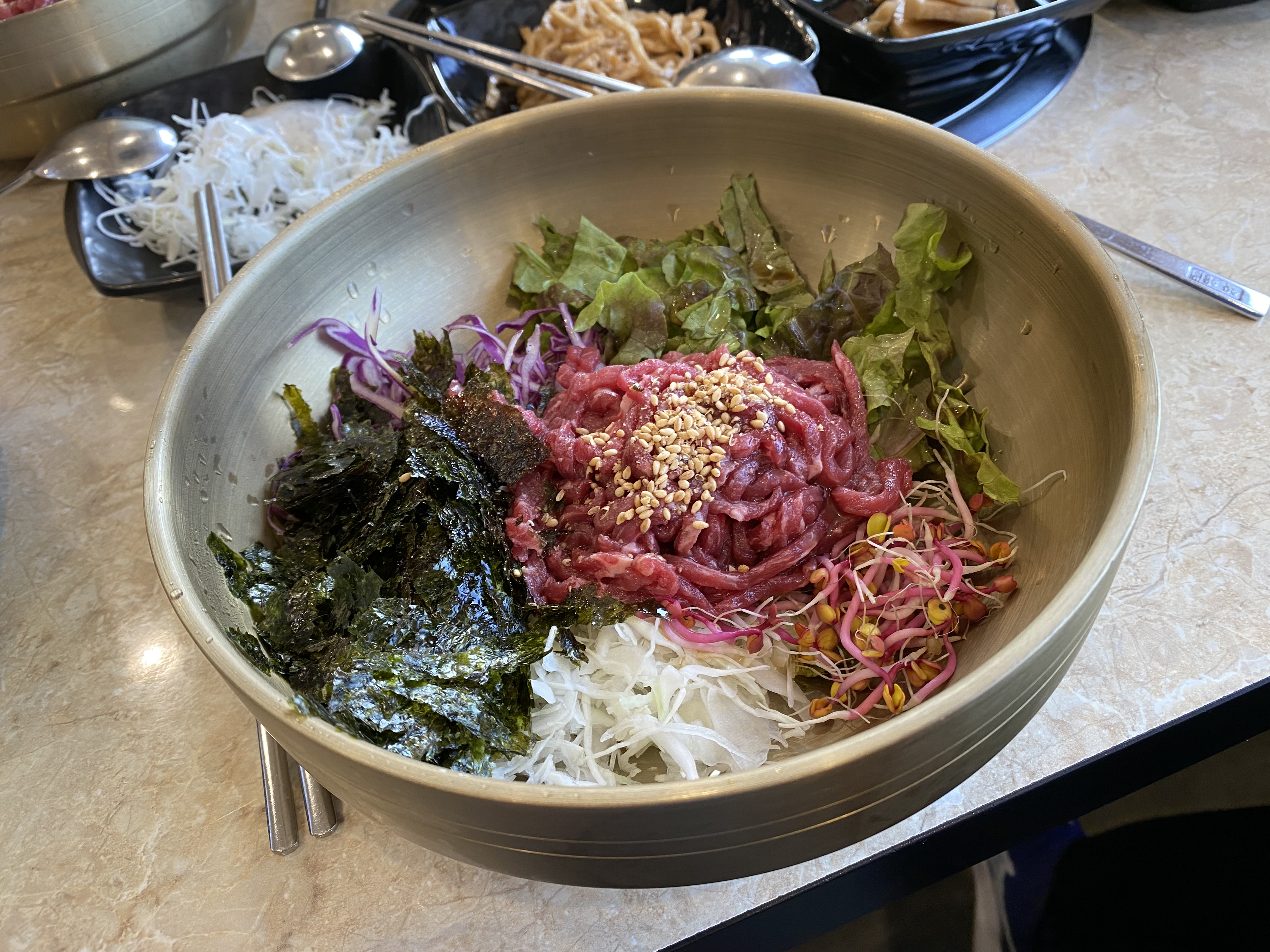 정갈한 육회 비빔밥의 모습