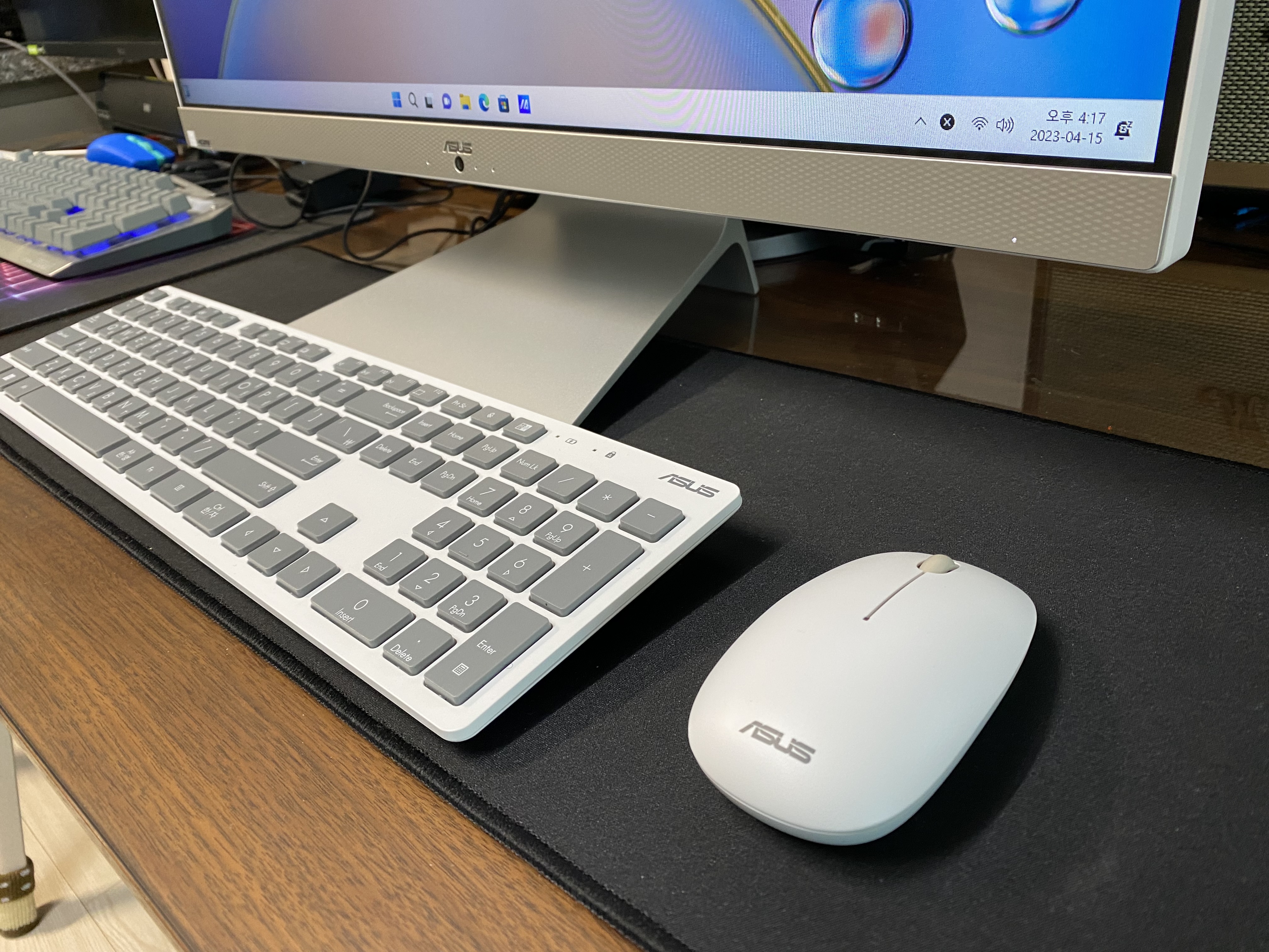 이 ASUS 올인원 PC M3700WY의 가장 큰 단점을 찾아본다면 이 키보드 마우스가 아닐까 싶네요. 마우스는 그냥 참는다고 해도 키보드는 정말 타격감이 별로입니다. 다른 키보드, 마우스를 구매할 생각입니다. 모니터 달린 본체는 깔끔하고 괜찮은데 그에 비해 키보드, 마우스는 퀄리티가 너무 떨어지네요.
