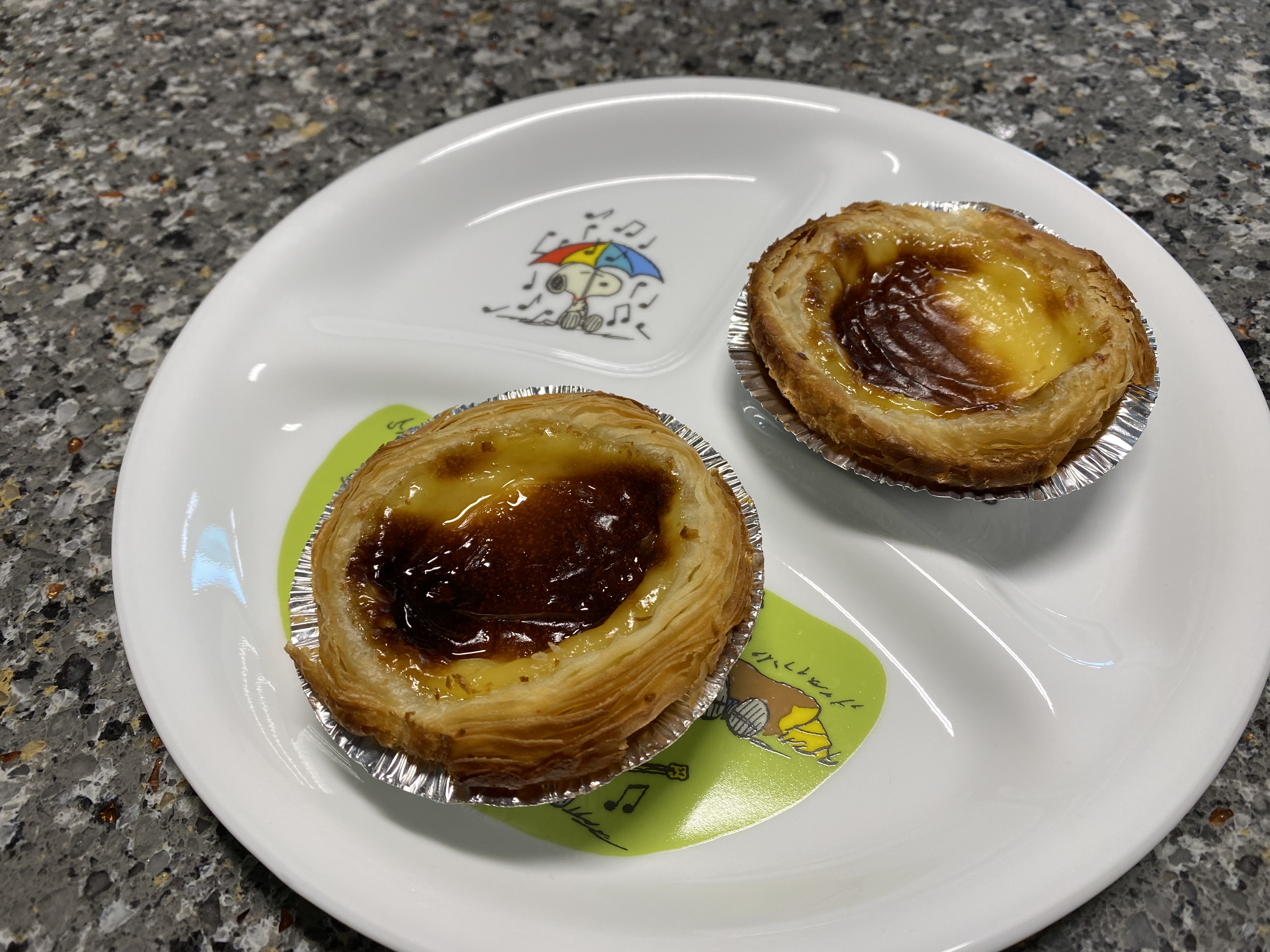 코스트코 포르투갈 타르트 비주얼. 커스터드 크림 위에 있는 검은 부분은 탄게 아니라 잼입니다.