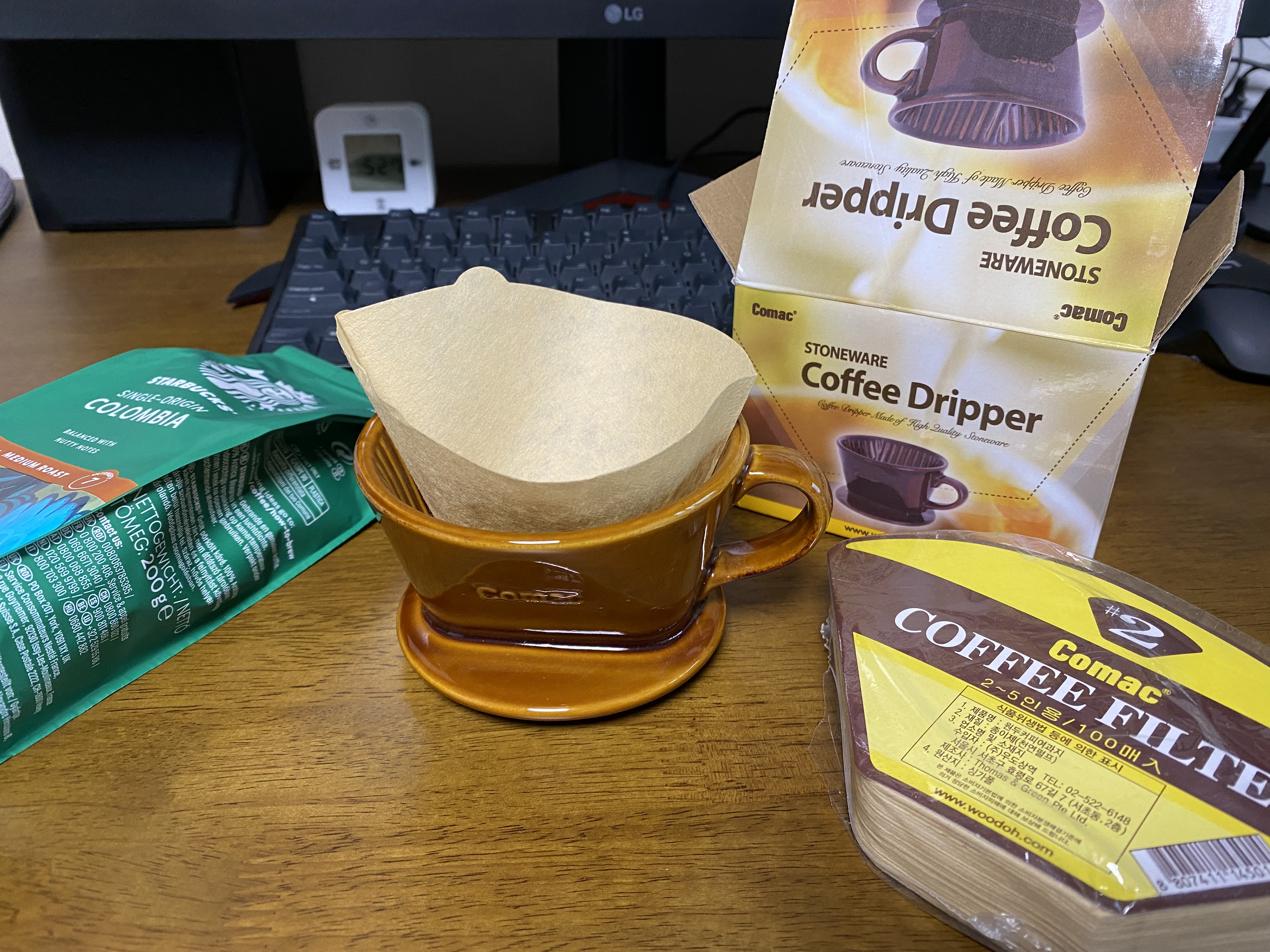 집에 분쇄 커피 가루가 있어서 이번 기회에 커피 드리퍼를 하나 구매했습니다. 커피 전문가도 아니고 커피맛에 아주 까다롭지 않아서 그냥 인터넷으로 저렴한 걸로 하나 샀습니다. 코맥 커피 드리퍼인데 택배비 포함 1만 원도 안 하는 아주 저렴한 제품입니다.