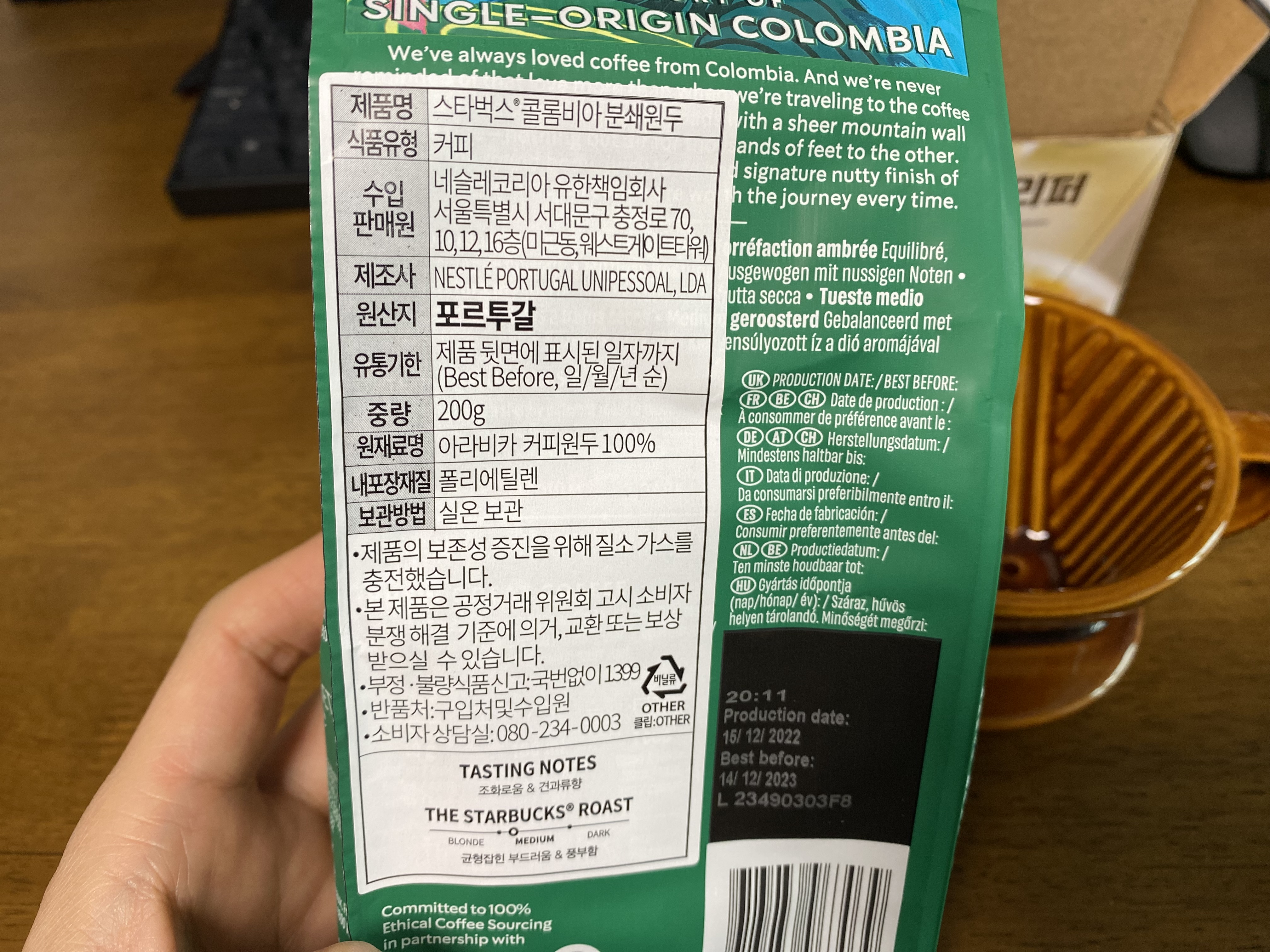 스타벅스 콜롬비아 분쇄원두. 그냥 먹을만합니다.