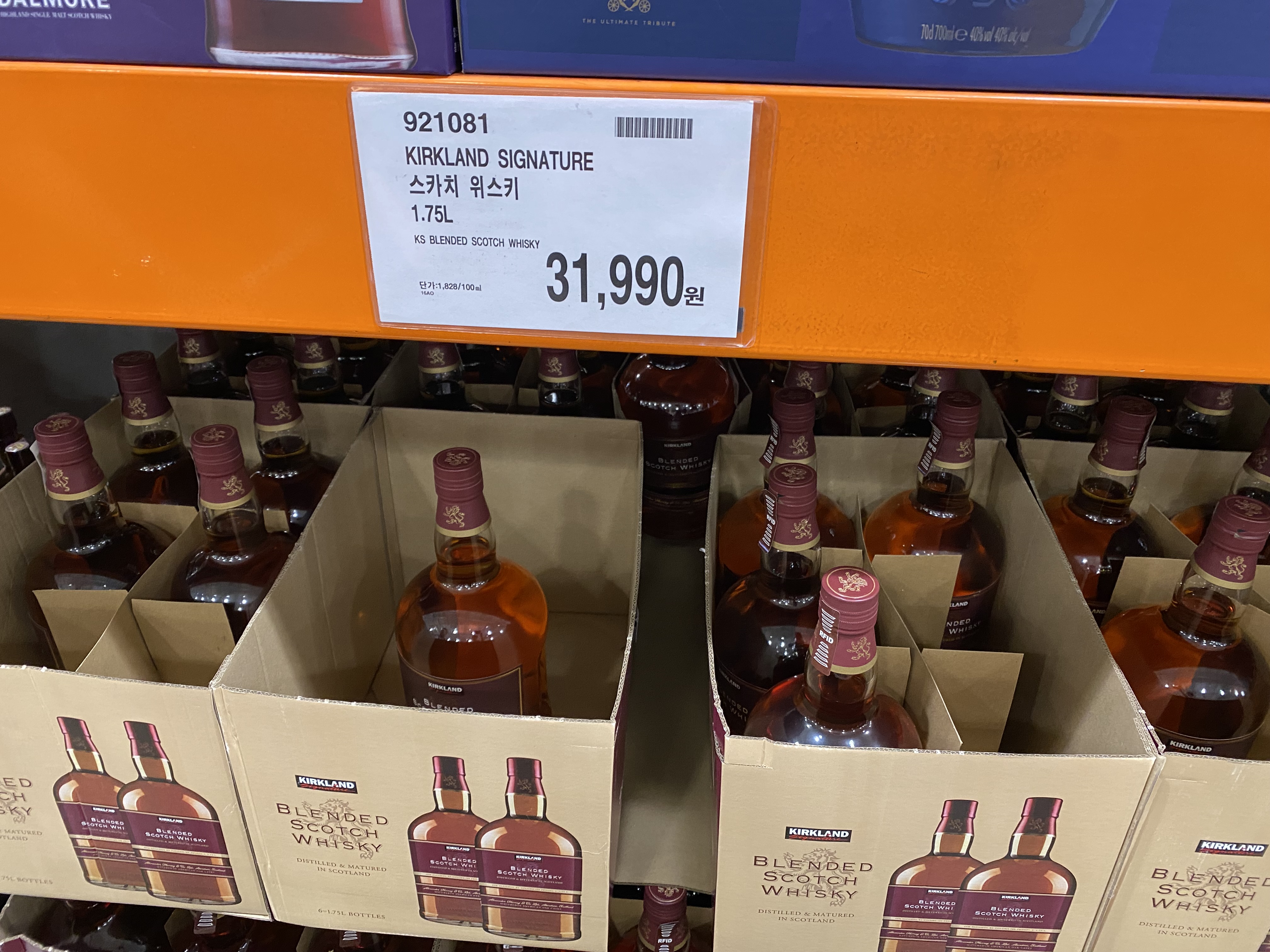 벨즈 위스키보다 더 저렴한 커클랜드 시그니처 KIRKLAND SIGNATURE 스카치 위스키 1.75L. 역시 가성비 갑 커클랜드 시그니처. 가격은 31,990원 (단위가격 1,828원) 입니다. 근데 제가 맛을 본 적이 없어서 평가는 불가합니다. 지금까지 커클랜드 시그니처 다른 제품을 구매한 경험상 기본을 할거라 예상합니다. 1.75리터이기 때문에 병 크기가 어마어마합니다. 각오를 하고 구매하세요. ㅎㅎ