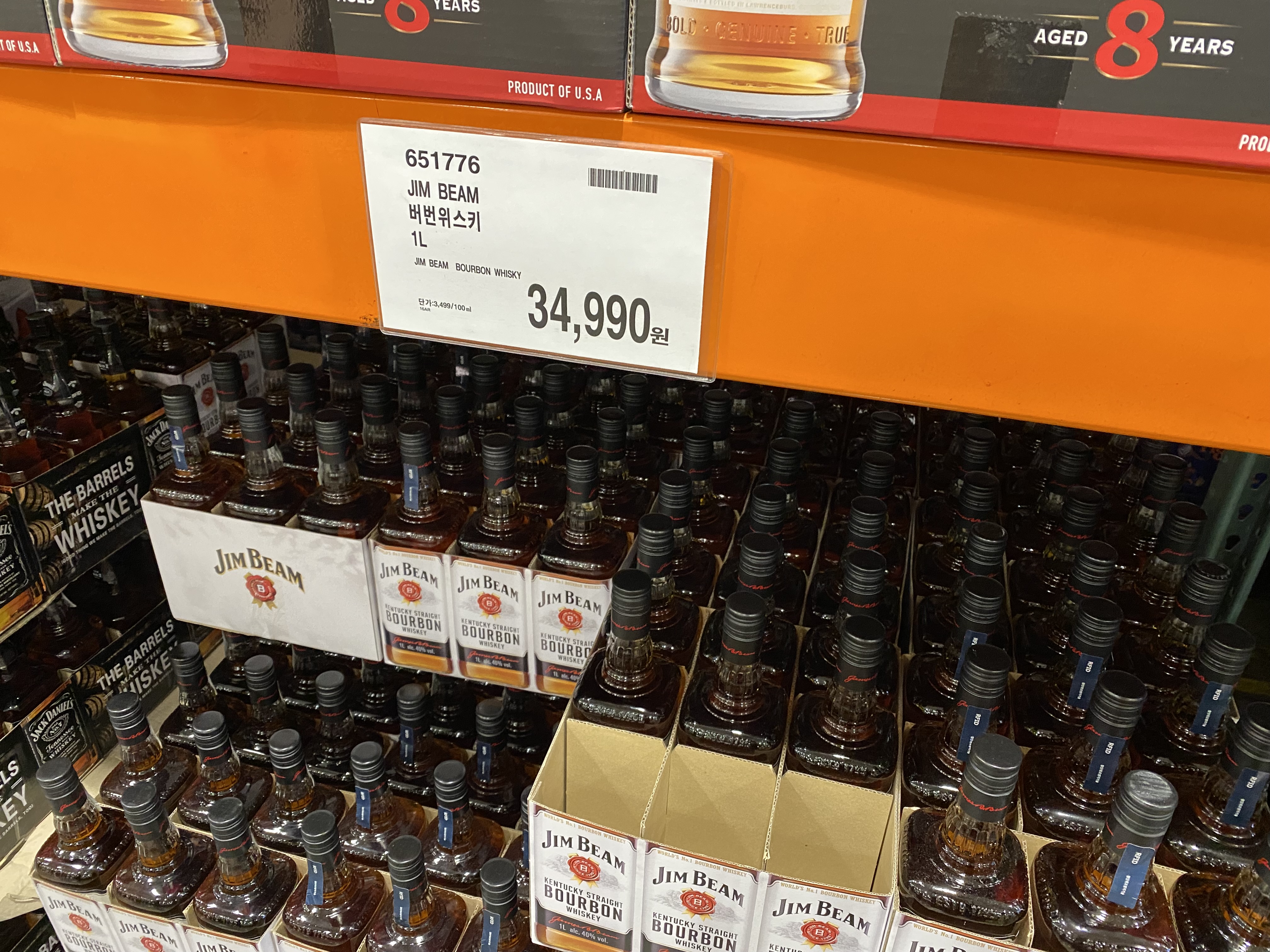 JIM BEAM 짐빔 버번 위스키 1L 가격은 34,990원 (100ml 단위 가격은 3,499원. 단위가격으로 위스키 가격을 비교하면 편합니다.)입니다. 요즘 하이볼을 많이 쓰는 위스키입니다. 가격이 다소 저렴한 축에 속합니다.