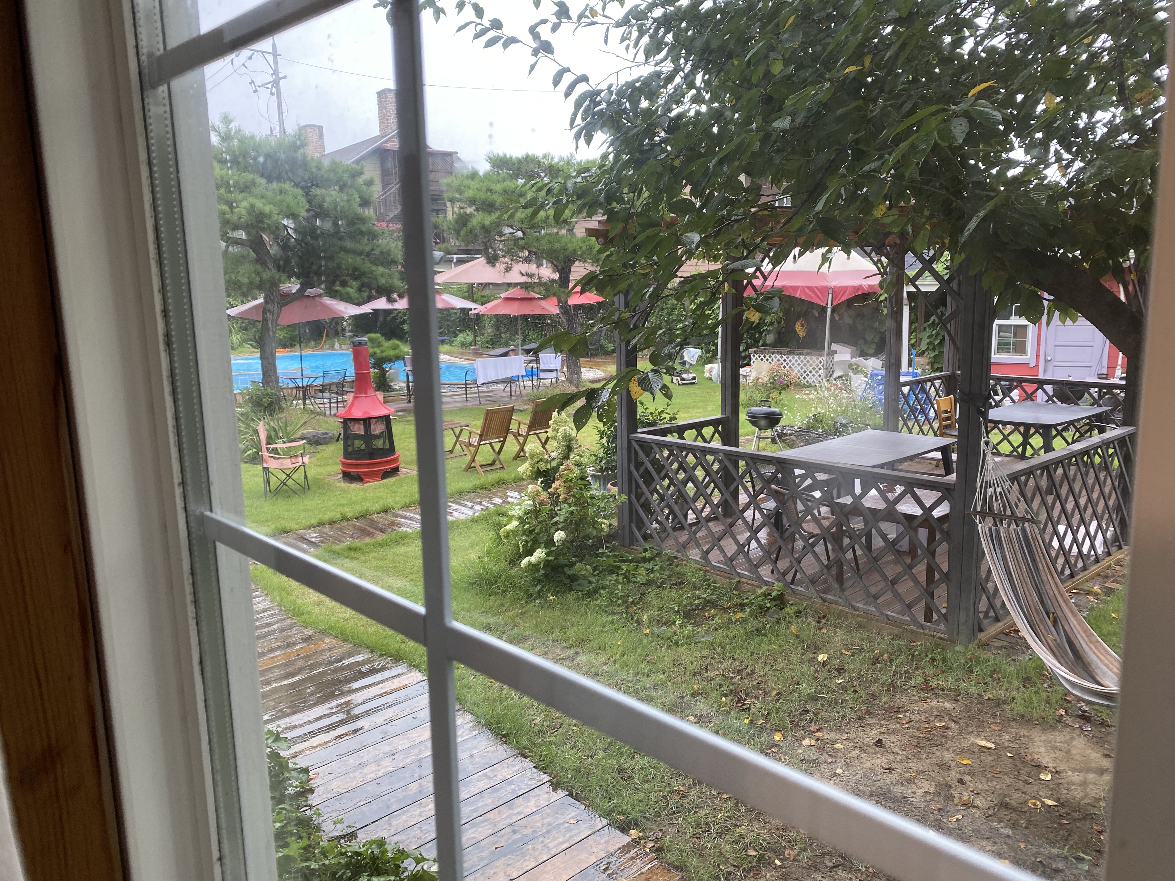 다음 날 아침 비가 추적추적 내렸습니다. 창밖으로 보이는 비 오는 풍경 또한 아름답네요.