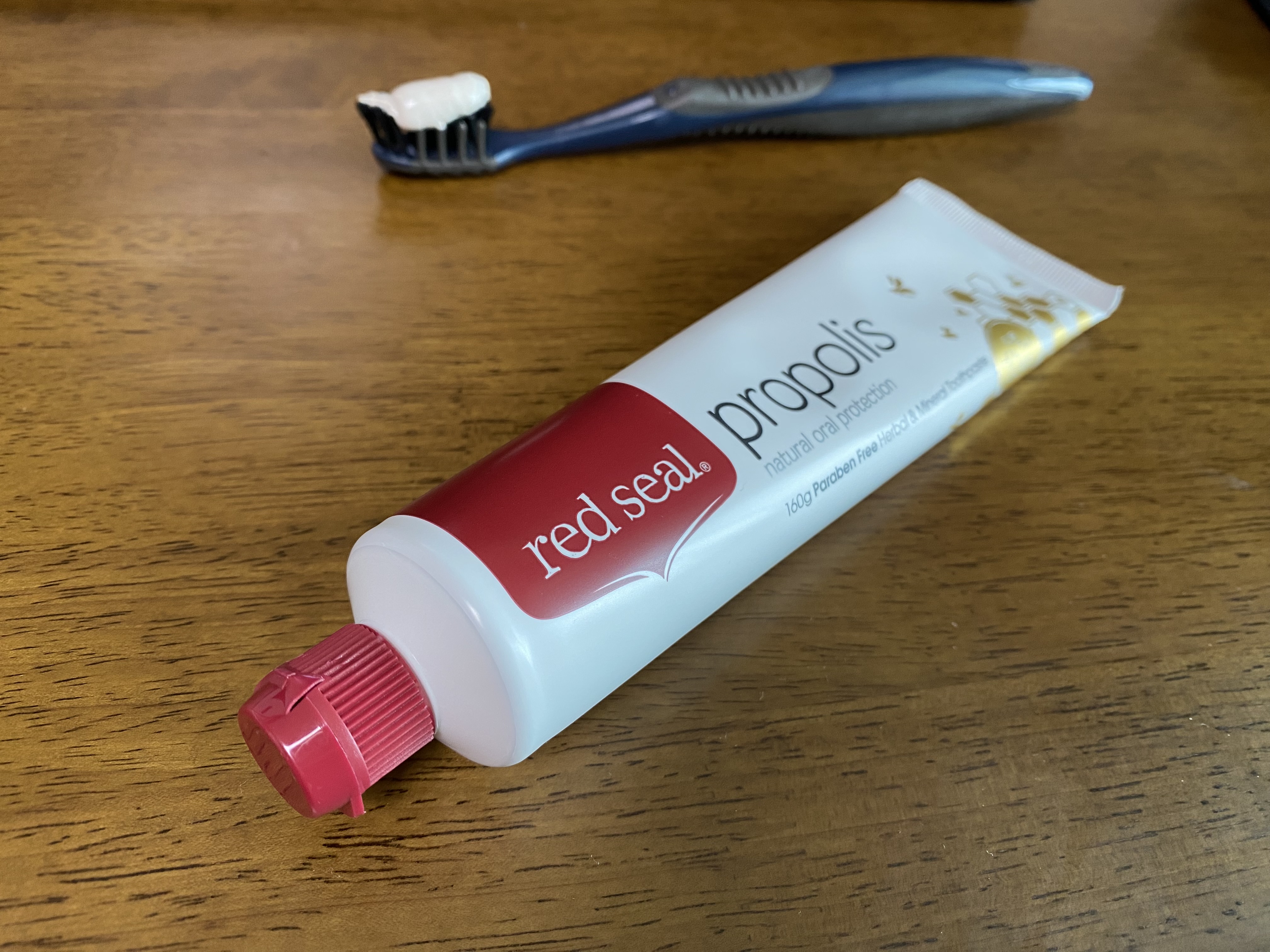 레드씰 프로폴리스 치약을 개봉한 모습