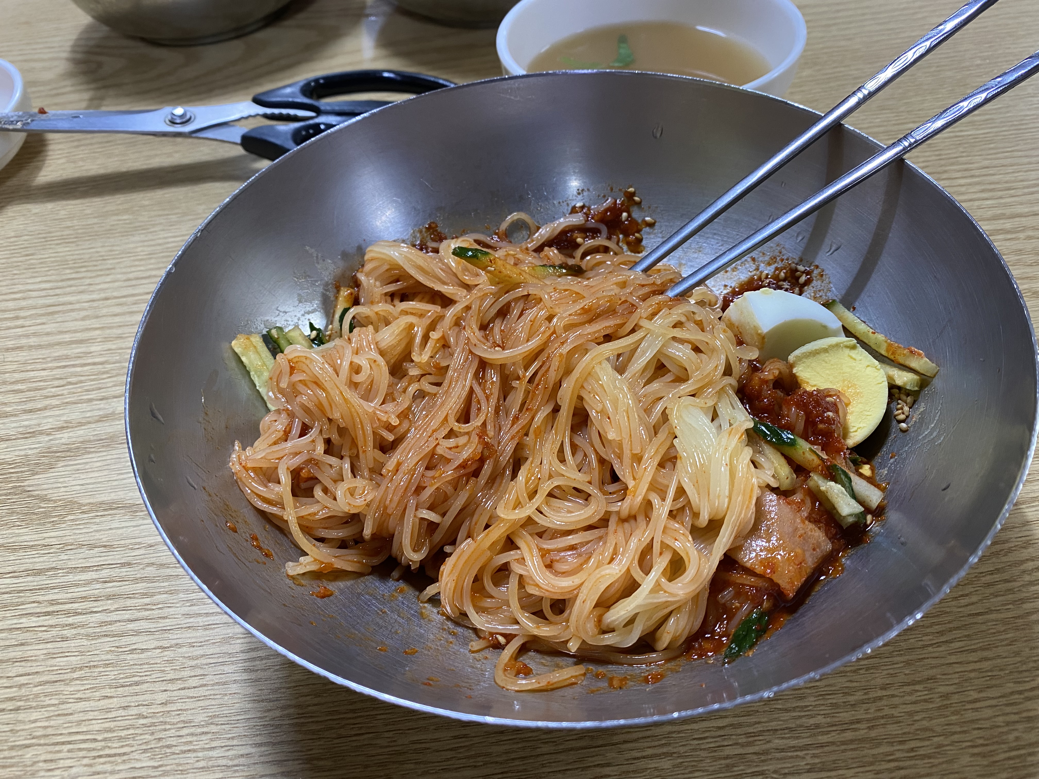영자면옥 비빔밀면. 세트 메뉴라 그런지 양이 많지는 않았습니다. 맛은 제육덮밥처럼 자극적이지 않는 맛입니다. 아주 맛있는 밀면집 맛은 아닌데 이 정도면 먹을만했습니다.