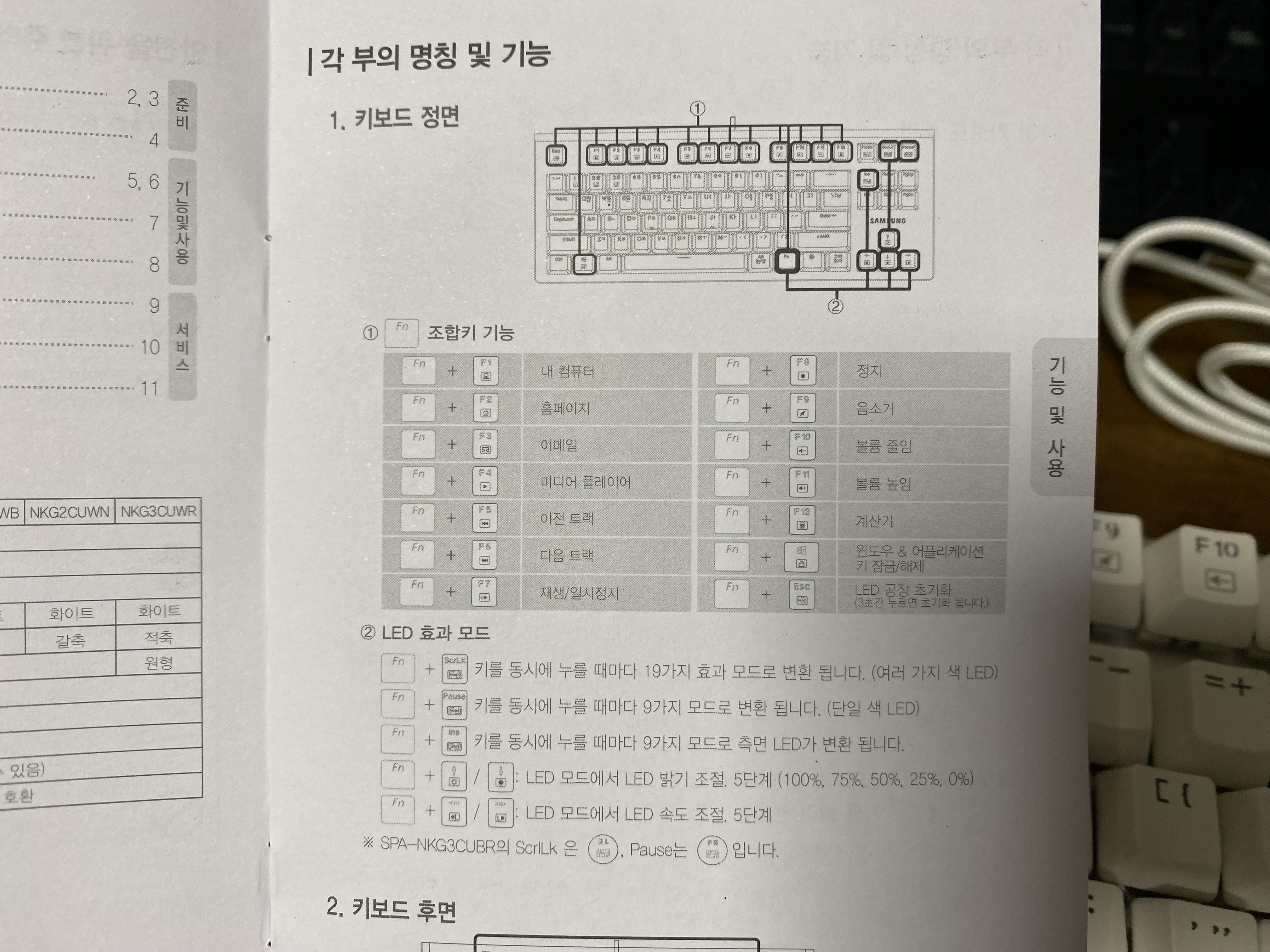 기능키(Fn키)를 사용하면 키보드에 다양한 효과를 줄 수 있습니다. 위 사진을 참고하세요.