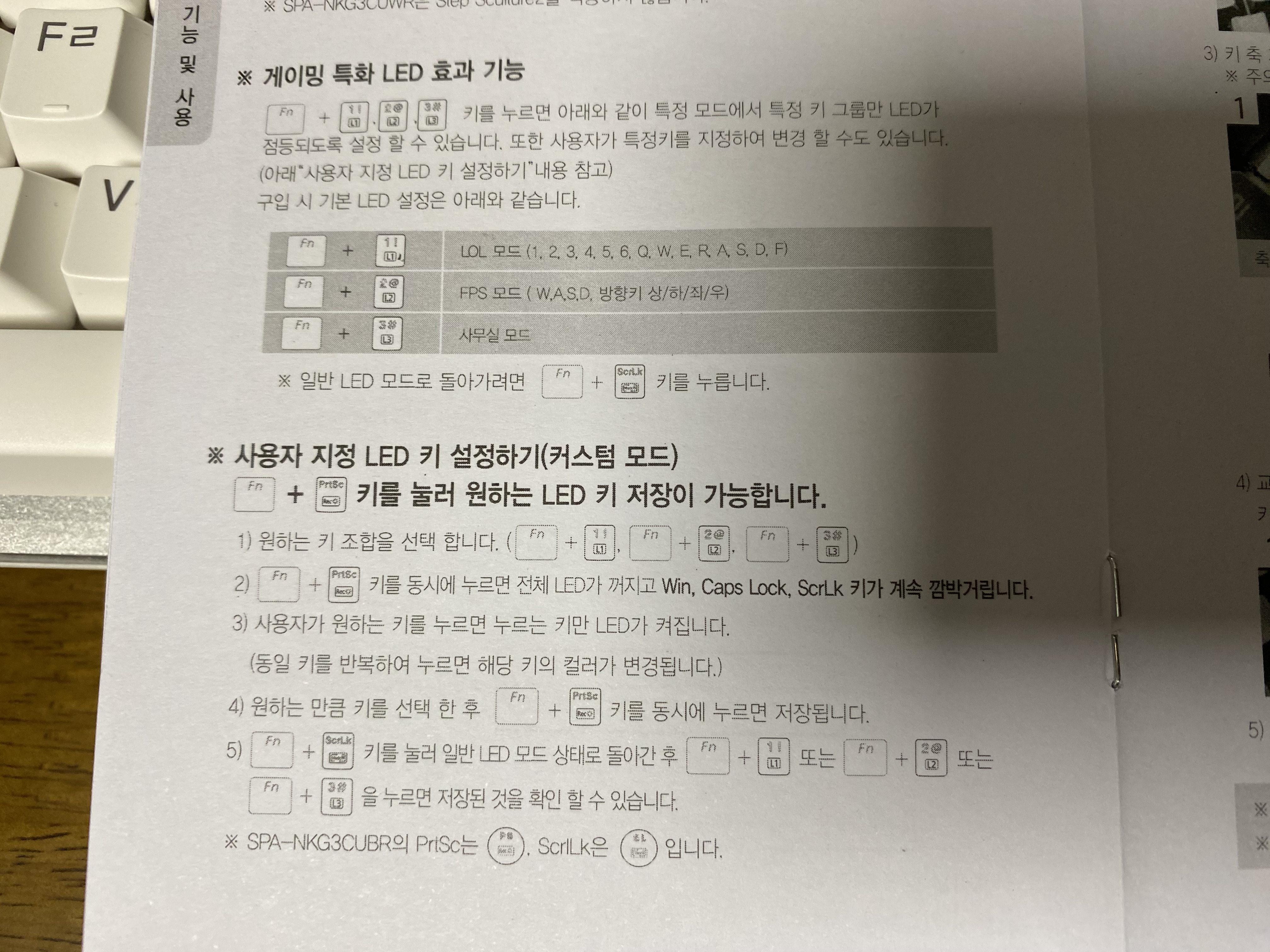 Fn키 + Scroll Lock키를 눌러 키보드 LED를 변경하는 모습입니다.