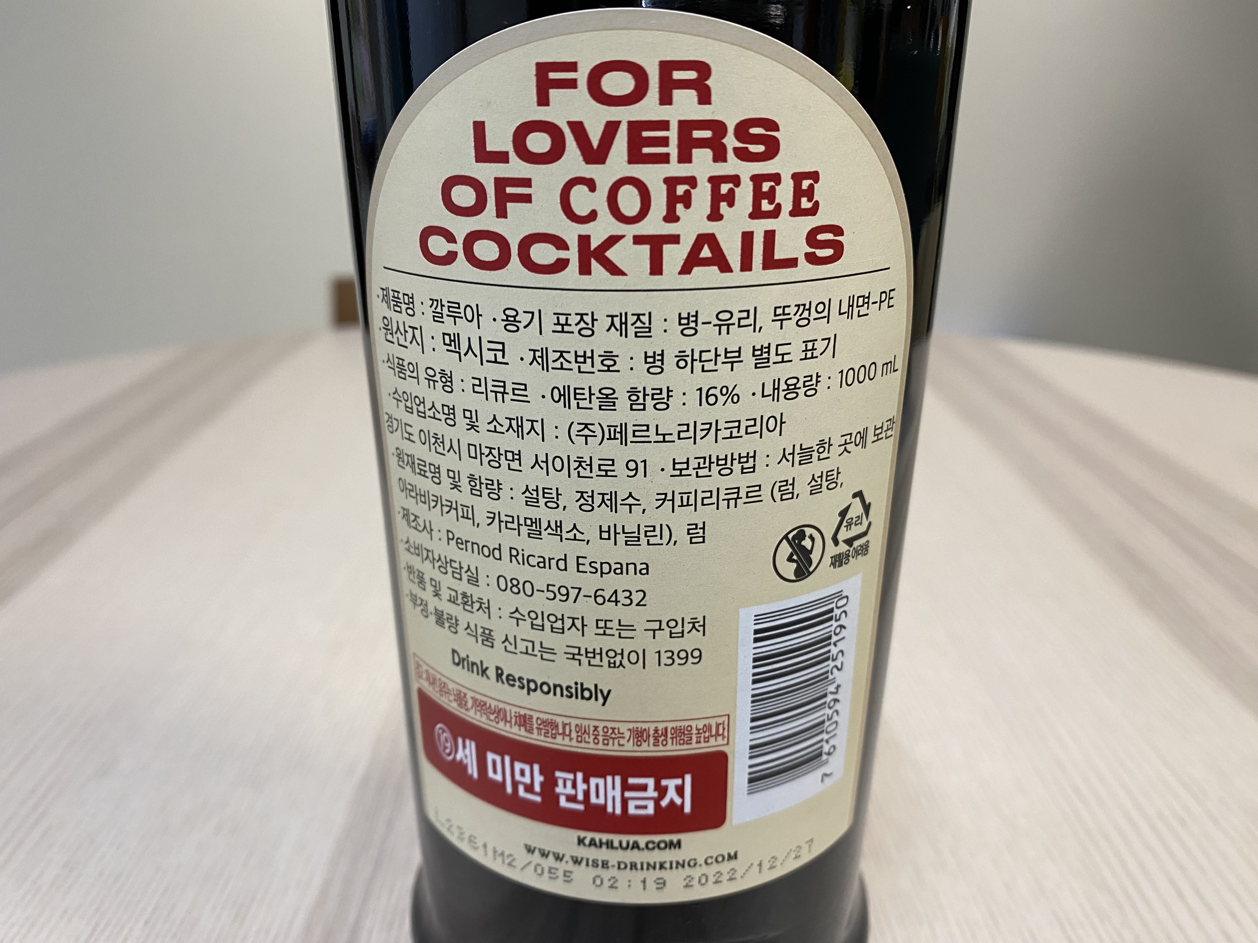 알콜도수가 16% 정도로 생각보다 독한데 보통은 칵테일에 만들어 먹어서 이 도수는 무의미하다고 생각합니다. 술에 타면 독해지고 우유 같은 음료에 타면 약해지니까요.