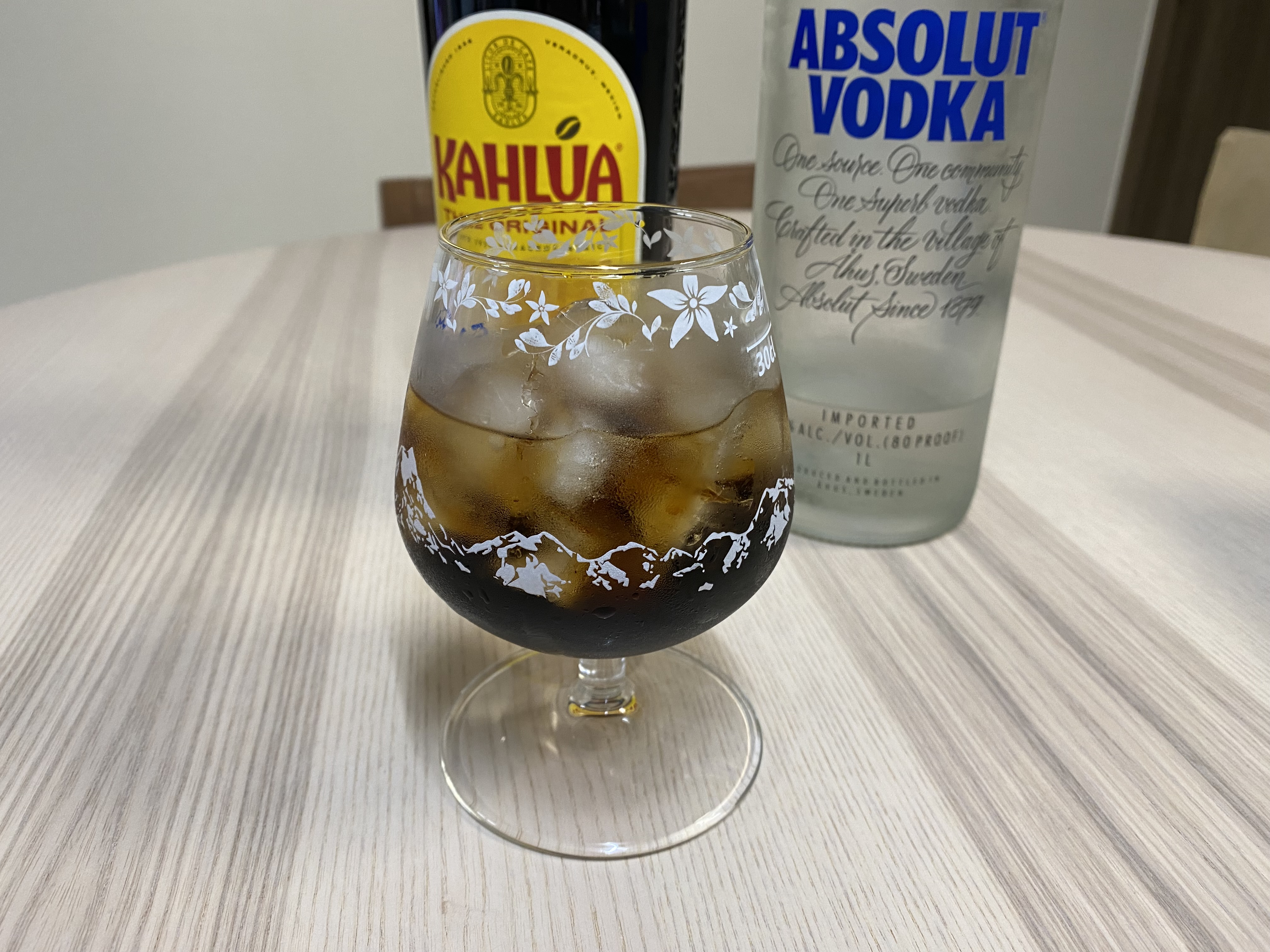 이번에는 집에 굴러다니는 보드카를 넣어서 마셔봤습니다. 원액을 마시는 것보다는 훨씬 낫네요. 칵테일이라는 게 별게 없습니다. 그냥 비율을 조절하며 취향을 찾아가는 과정이 아닐까 싶네요. 술과 깔루아 비율을 적당히 섞어가며 자신만의 황금비율을 찾아보세요. 에스프레소 마티니에도 깔루아가 들어가니 한번 도전해 보세요.