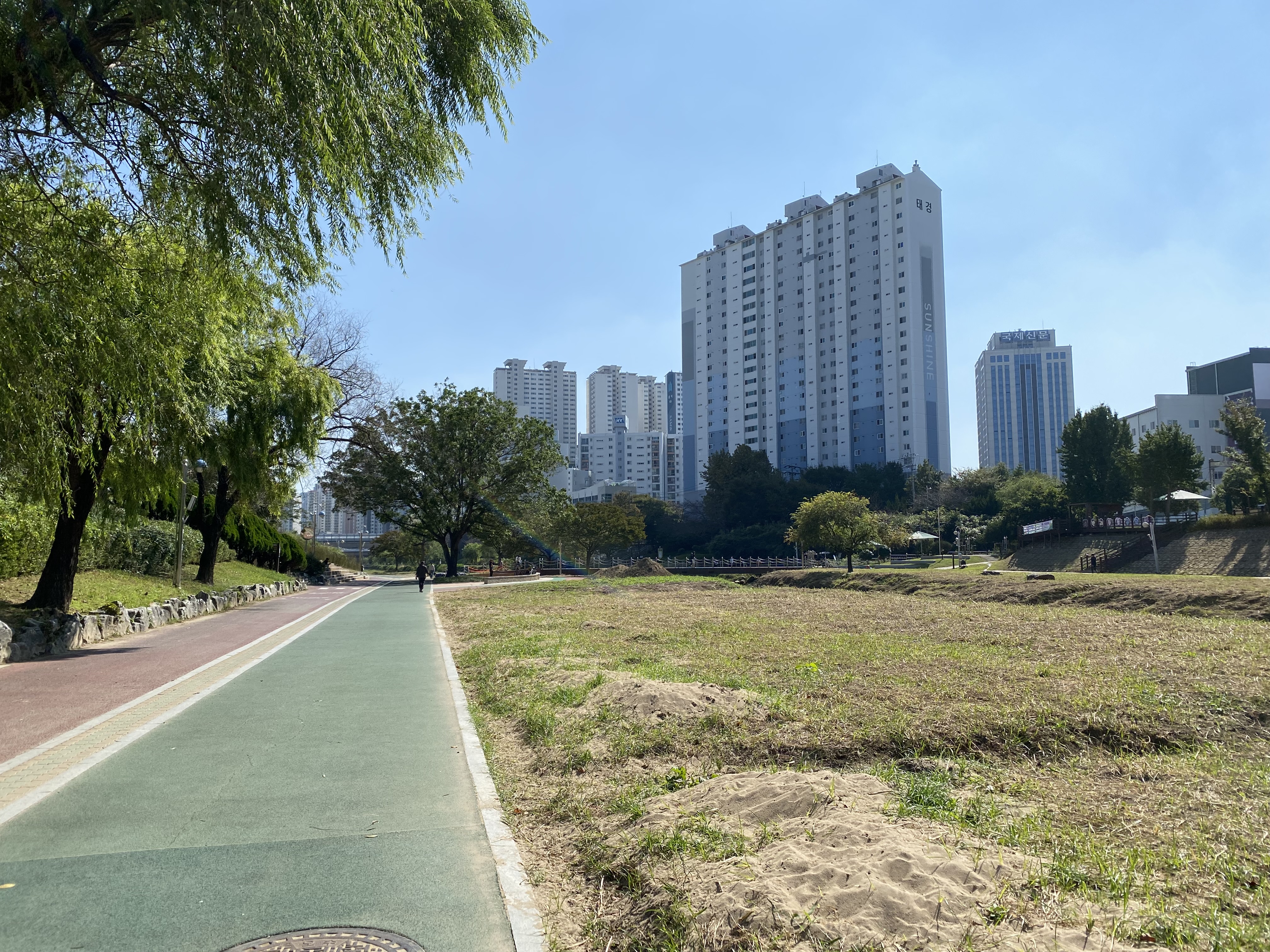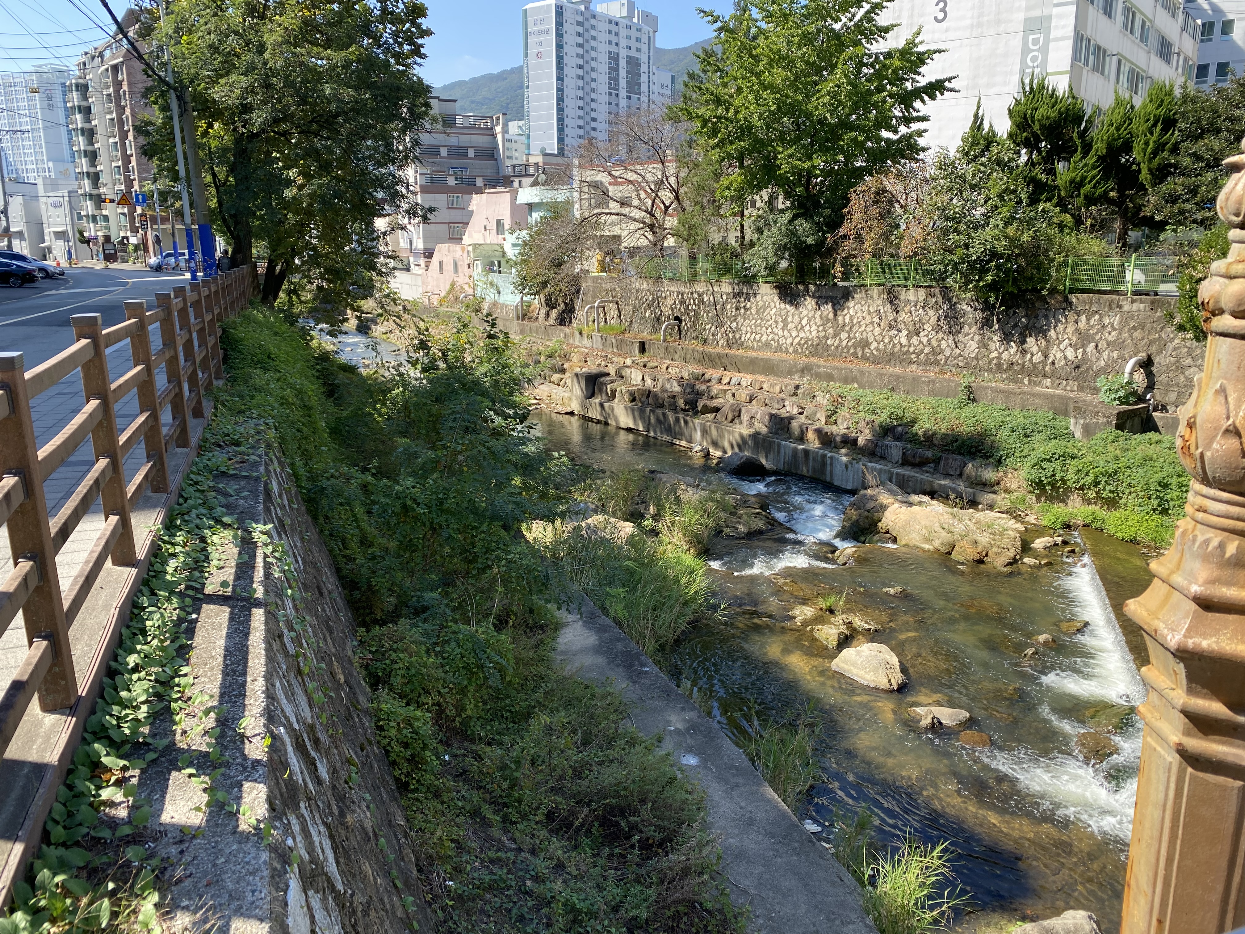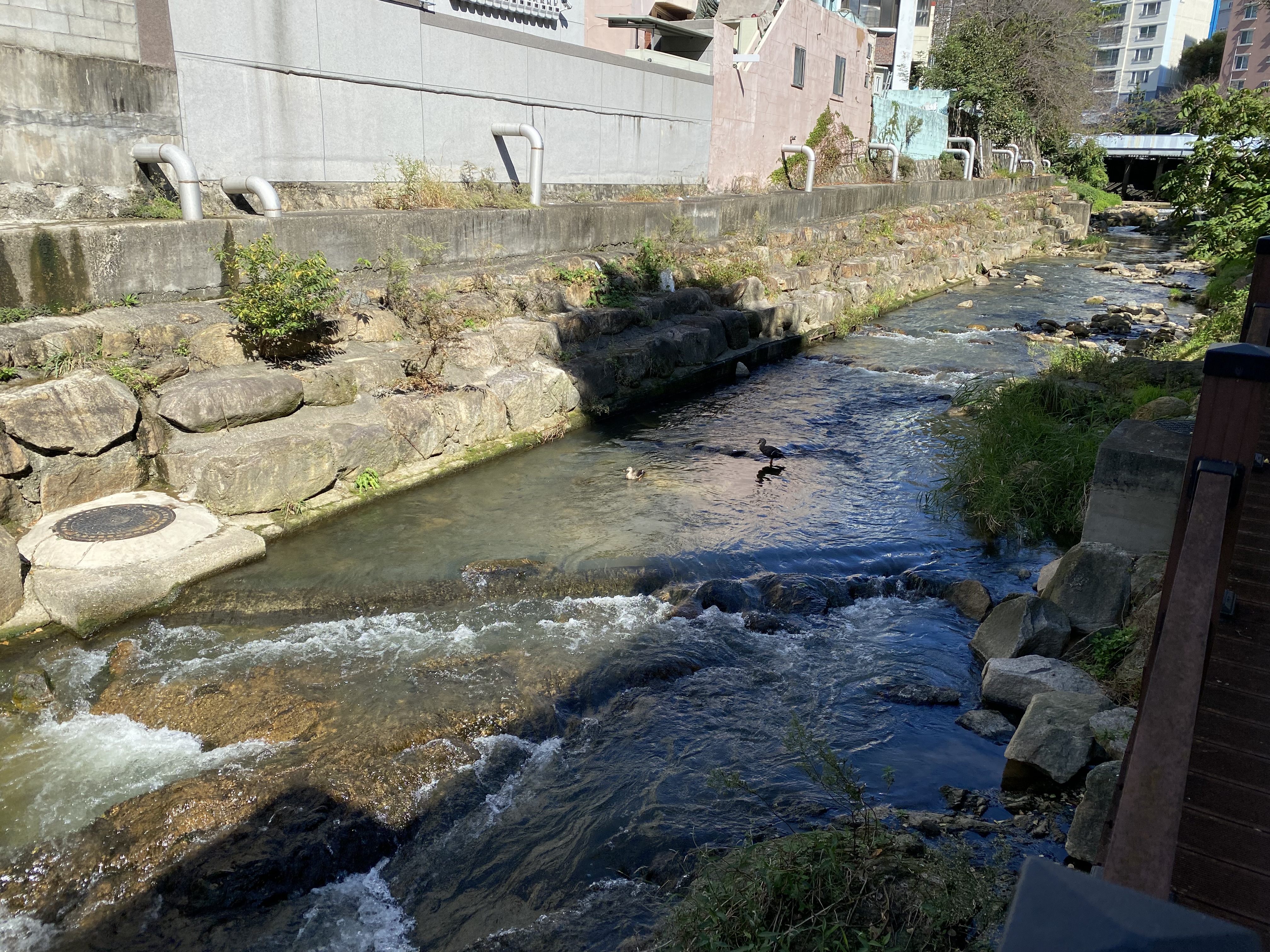 하천 수질이 안 좋은 것 같은데 물고기가 있는 것을 보니 신기하네요. 동천보다는 깨끗하지만 온천천도 좀 더 수질이 좋아져야 할 것 같습니다.