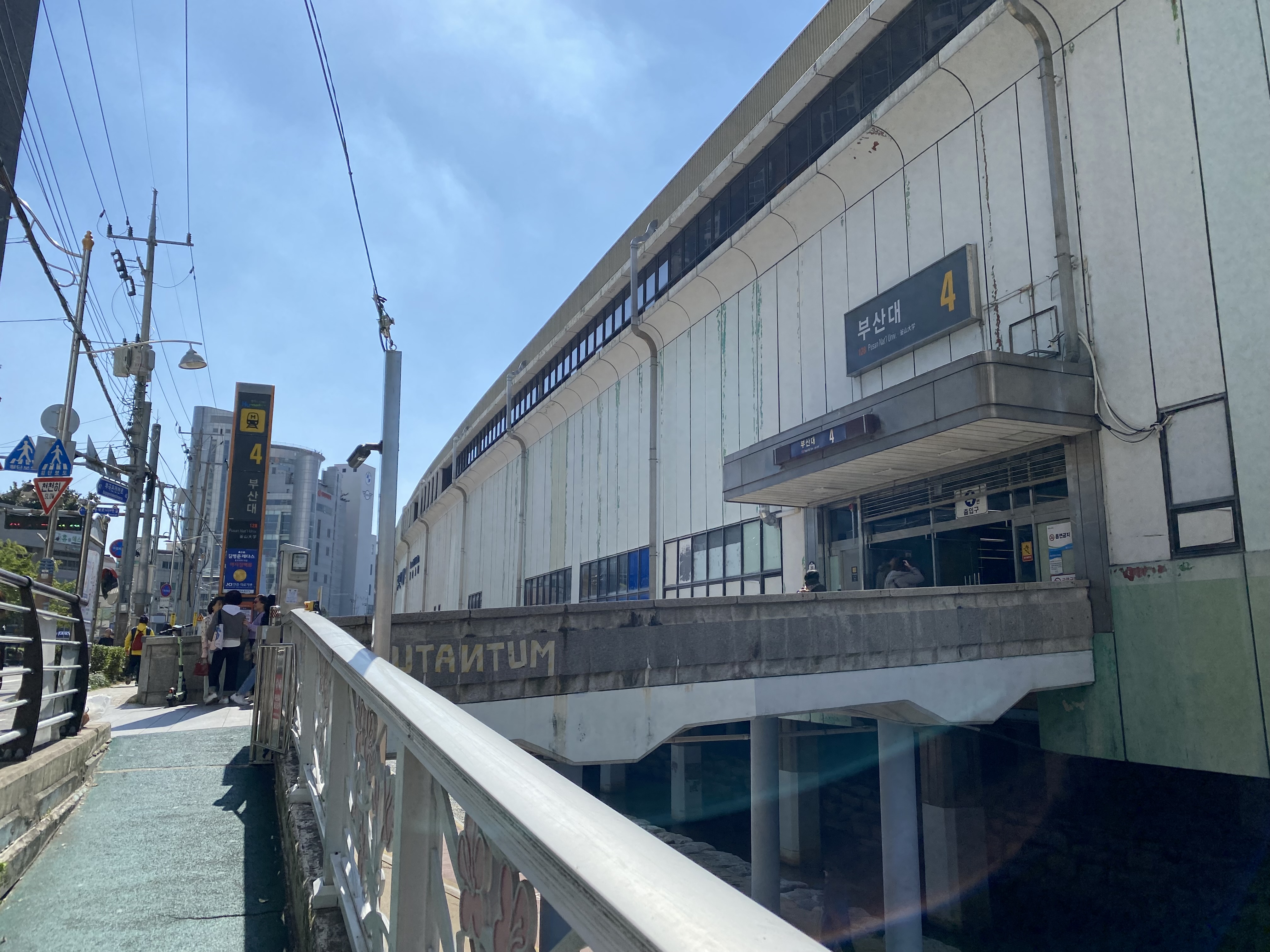 부산대역에서 잠시 화장실을... 온천천 걷다 보면 화장실이 나올 줄 알았는데 아니었네요. 화장실은 온천천 근처에는 없고 지하철역이나 차가 다니는 도로 위까지 올라가야 있습니다.