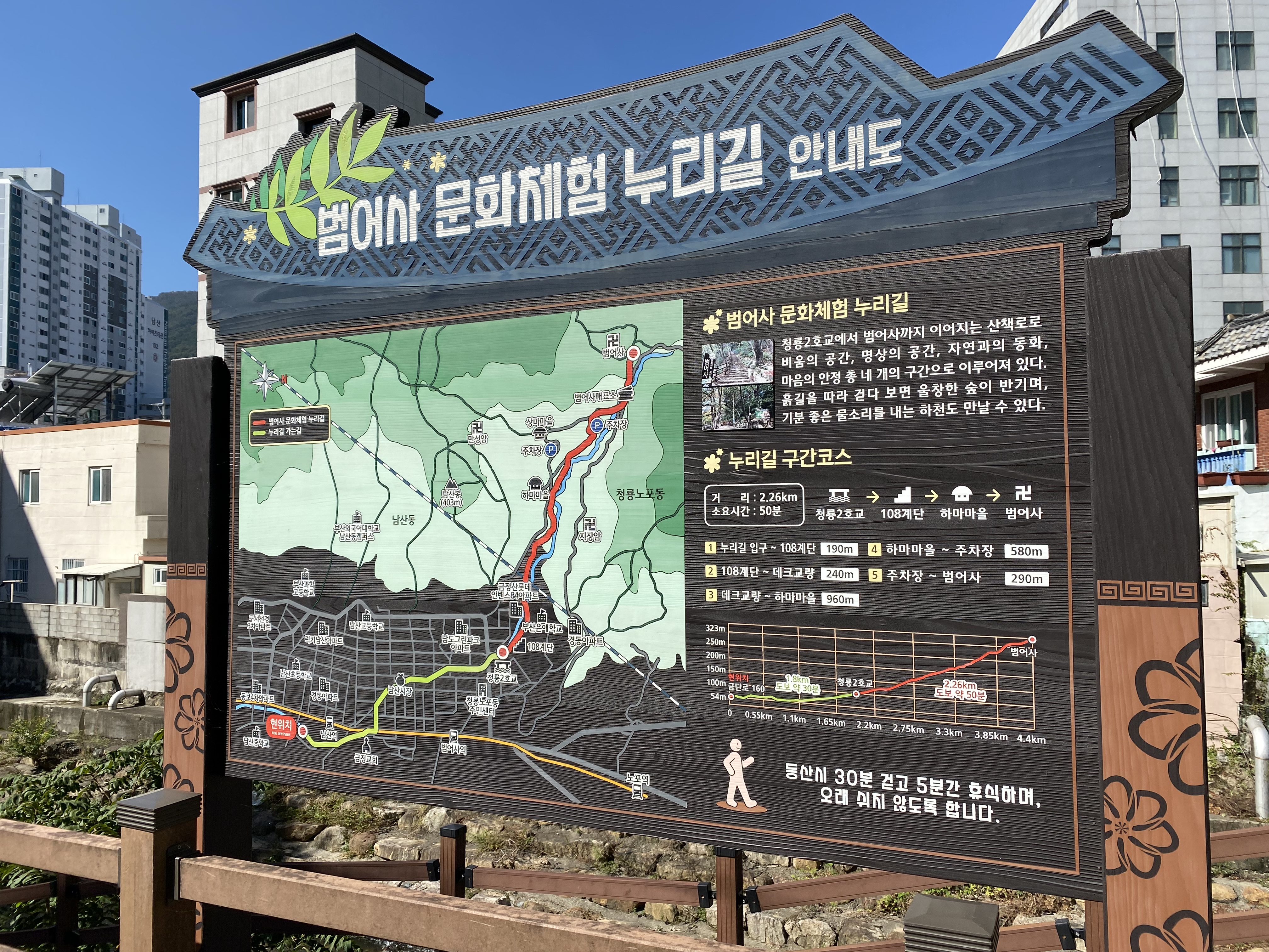 오호라... 범어사 문화체험 누리길 안내도입니다. 누리길 코스도 다음에 한번 도전해보는걸로. 차가 있는 사람들은 남산역 공영주차장에 주차를 하고 걸어가면 될 것 같습니다.