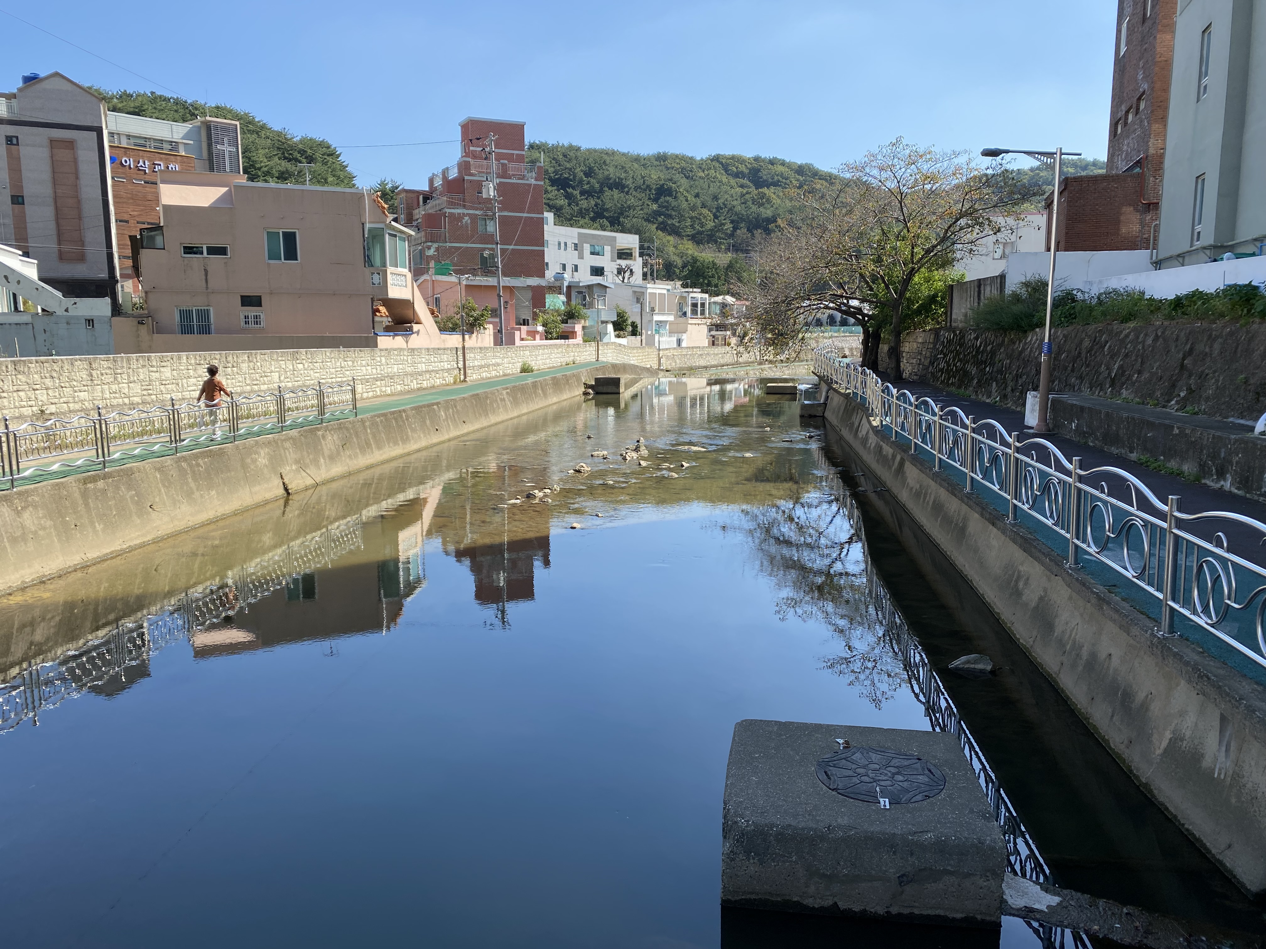 하천 수질이 안 좋은 것 같은데 물고기가 있는 것을 보니 신기하네요. 동천보다는 깨끗하지만 온천천도 좀 더 수질이 좋아져야 할 것 같습니다.