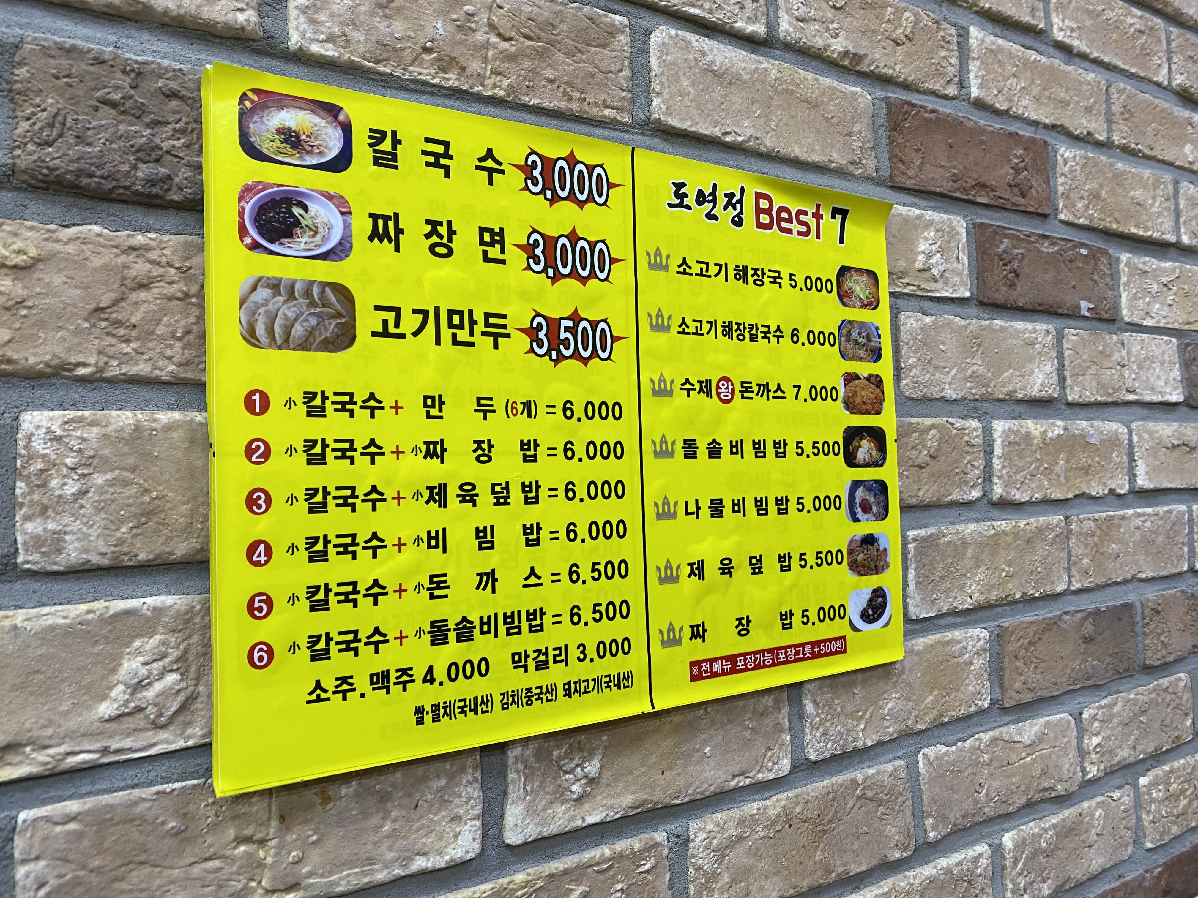 요즘 밥값이 너무 많이 올랐습니다. 인플레이션 시대 저렴한 식당을 찾기 어려운데 여기 서면역, 부전시장 근처에는 아직까지 가격이 괜찮은 식당을 찾아볼 수 있습니다. 이번에 찾아간 곳이 아니라 지나가다 그냥 들어가게 된 식당이 바로 여기 도연정입니다. 칼국수, 짜장면 3000원, 소고기 해장국이 5000원 간판을 보고 바로 들어갔습니다.