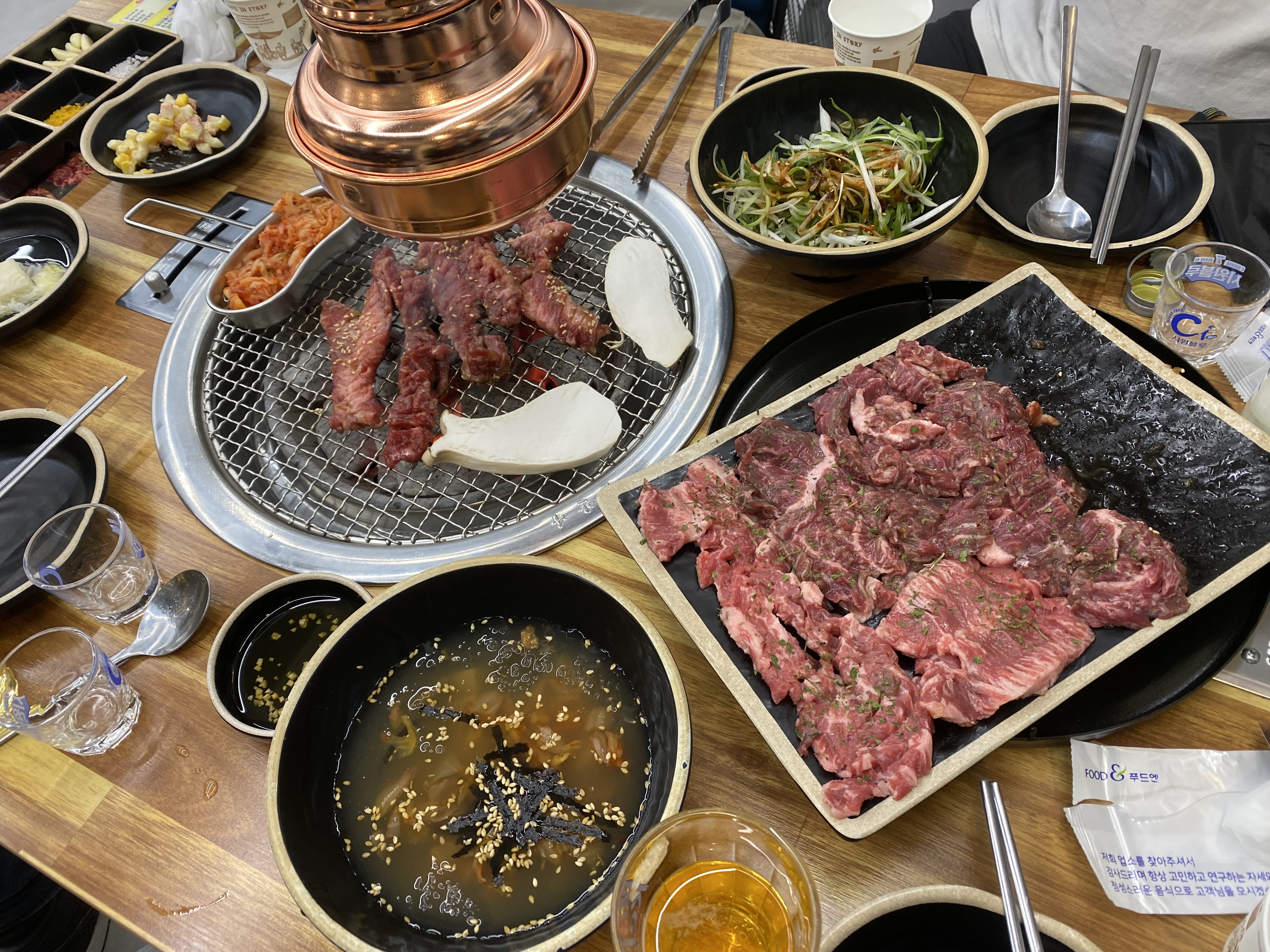 42000원하는 동방축산 우세트 모습입니다. 제가 생각하는 소고기 가격보다 저렴해서 시켰는데 왜 저렴한지 이유는 알 것 같네요. 살살 녹는 A급 한우 같은 느낌은 아니니 알고 시키시기 바랍니다. 맛이 나쁘진 않아요. 하지만 개인적으로 동방축산은 돼지고기가 맛있는 것 같습니다. 다음부터는 돼지만 시키는 걸로.