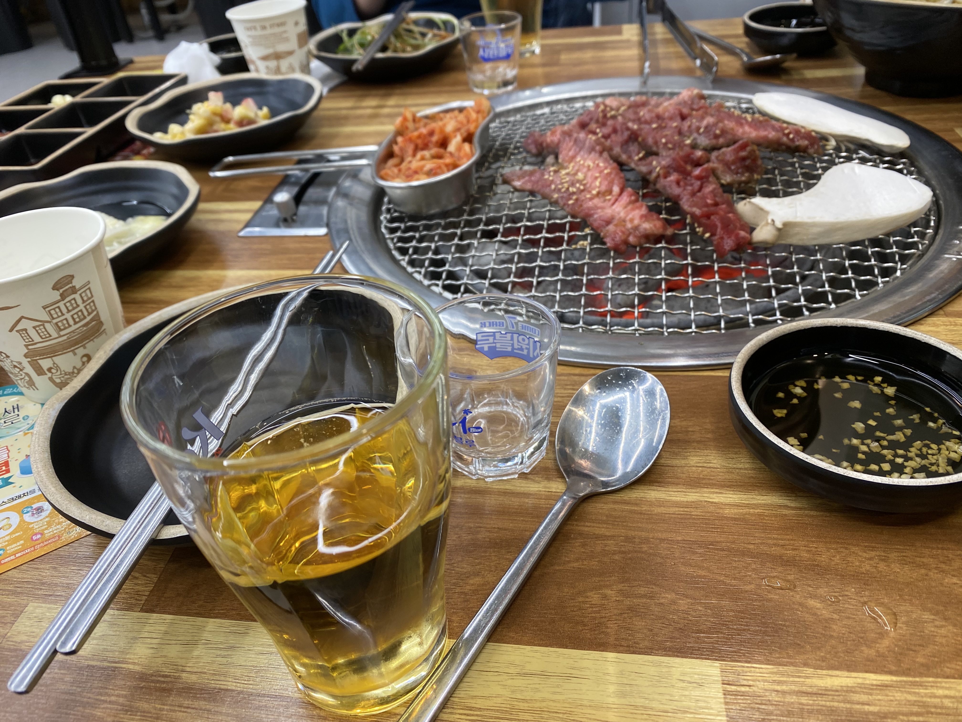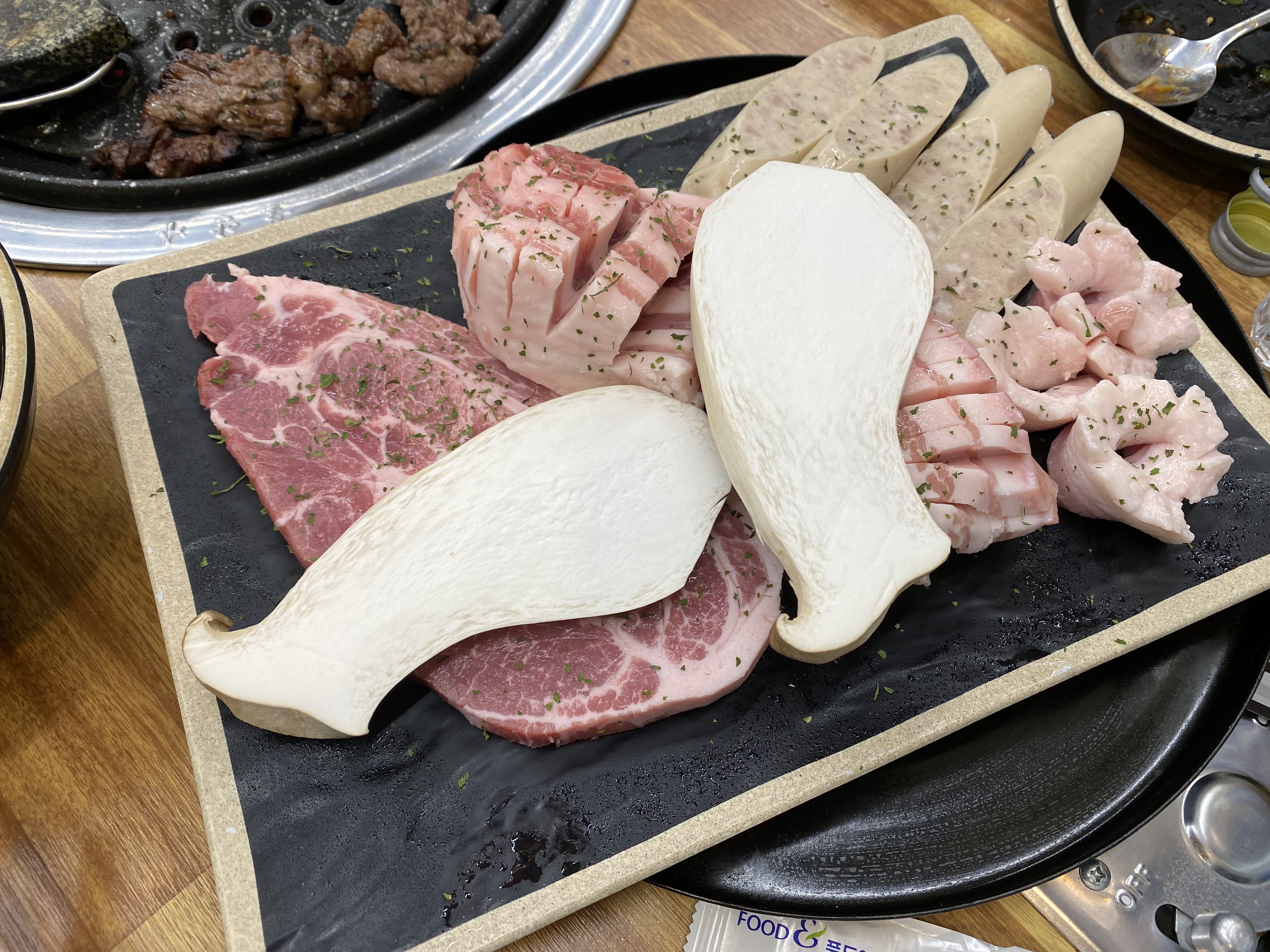 42000원하는 동방축산 우세트 모습입니다. 제가 생각하는 소고기 가격보다 저렴해서 시켰는데 왜 저렴한지 이유는 알 것 같네요. 살살 녹는 A급 한우 같은 느낌은 아니니 알고 시키시기 바랍니다. 맛이 나쁘진 않아요. 하지만 개인적으로 동방축산은 돼지고기가 맛있는 것 같습니다. 다음부터는 돼지만 시키는 걸로.