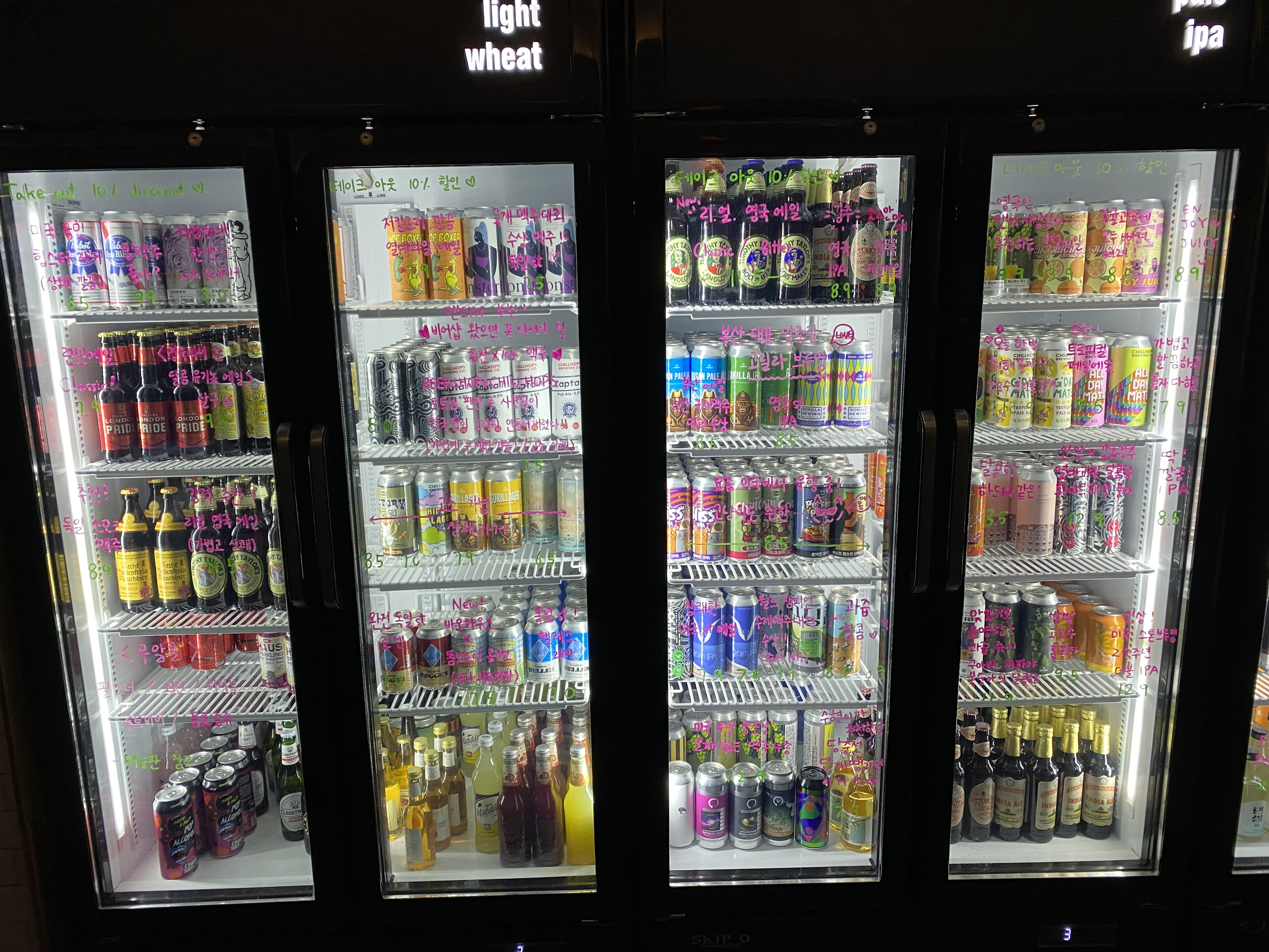 맥주를 좋아하는 친구가 냉장고를 보고 와서는 캔맥, 병맥도 신기한 맥주가 많다고 하네요. 저는 생맥주 파는 곳에서는 거의 생맥만 마시는 스타일이라 그냥 패스~